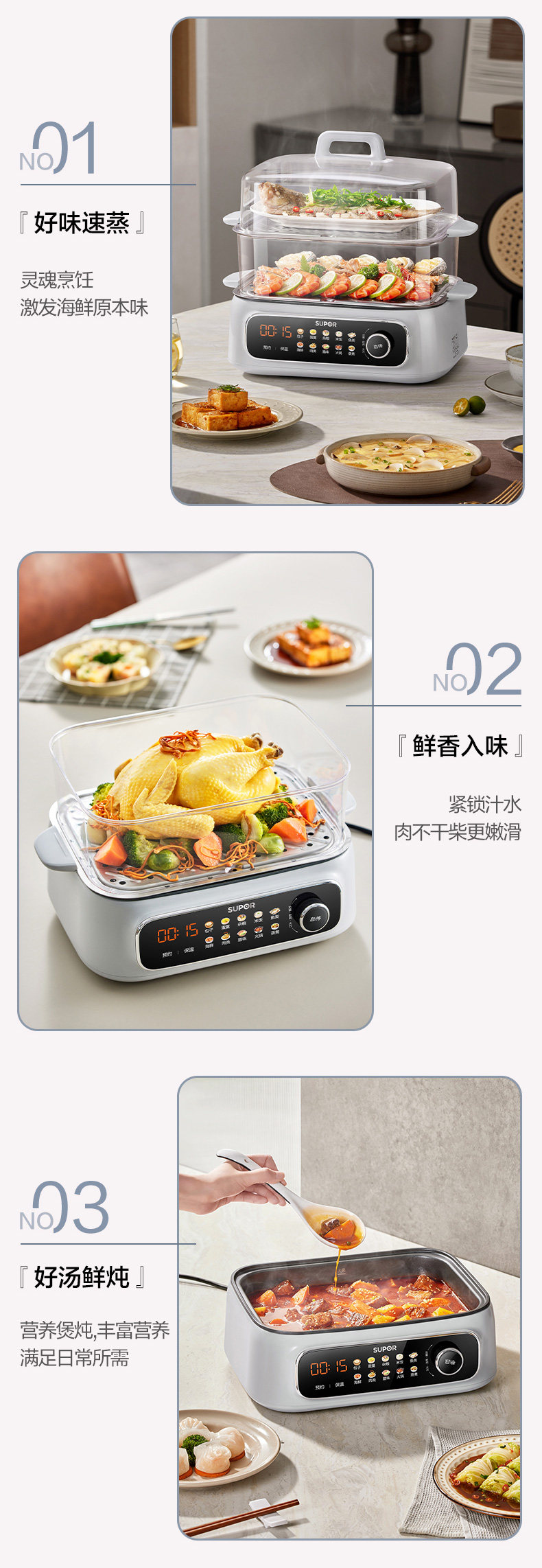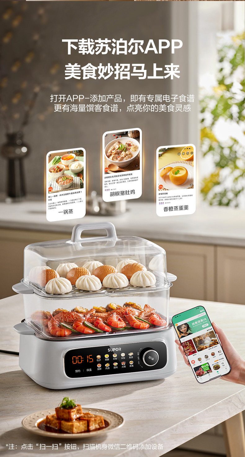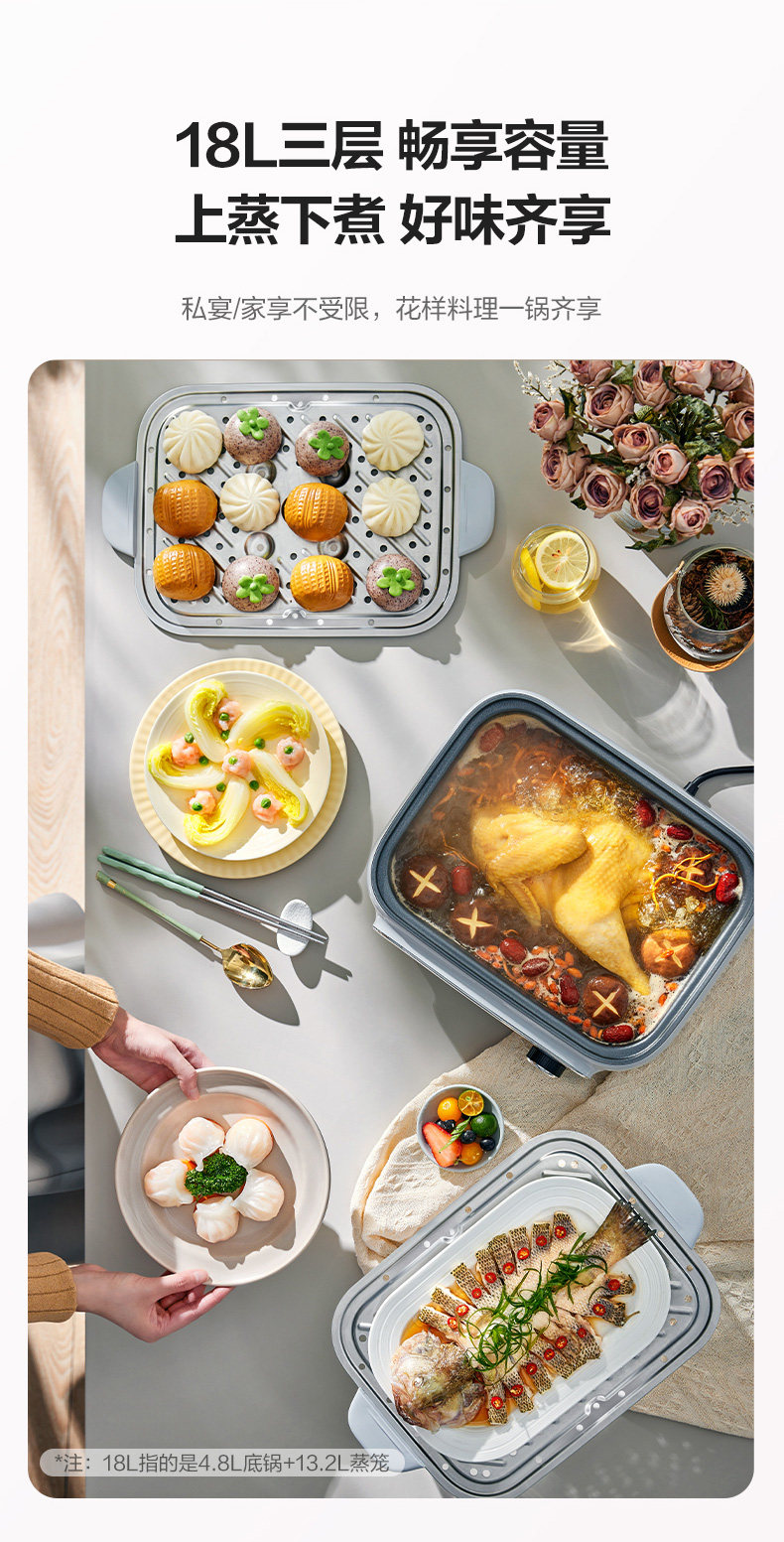 Supor Electric Steamer Multifunctional Household Three-Layer 2024 New Model Steaming Basket for Cooking and Stewing Multifunctional All-In-One Pot Genuine Product