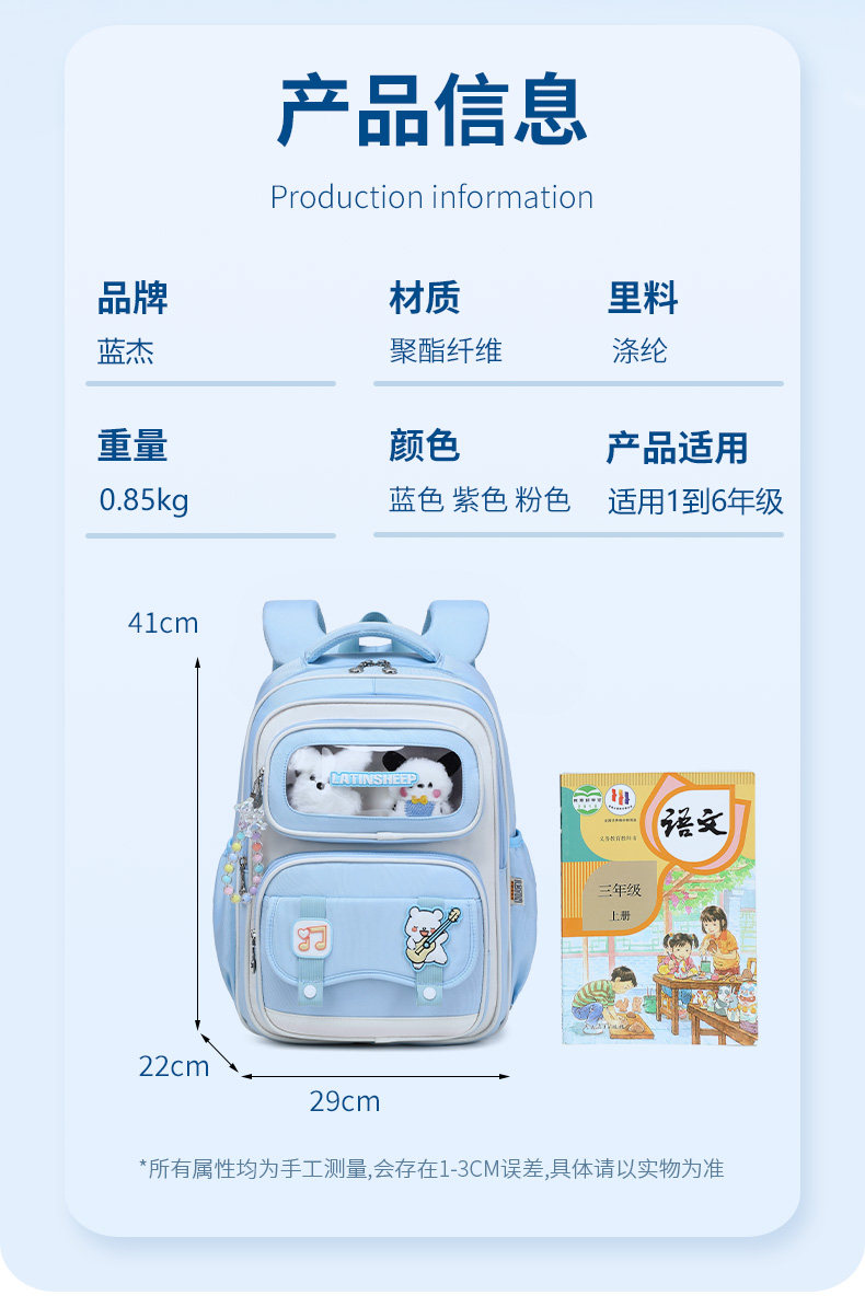 Elementary School Students' Schoolbags for Girls in Grades 1, 2, 3 to 6, Spine Protection and Burden Reduction, Large Capacity, Ultra-Light Kidsren's Backpack