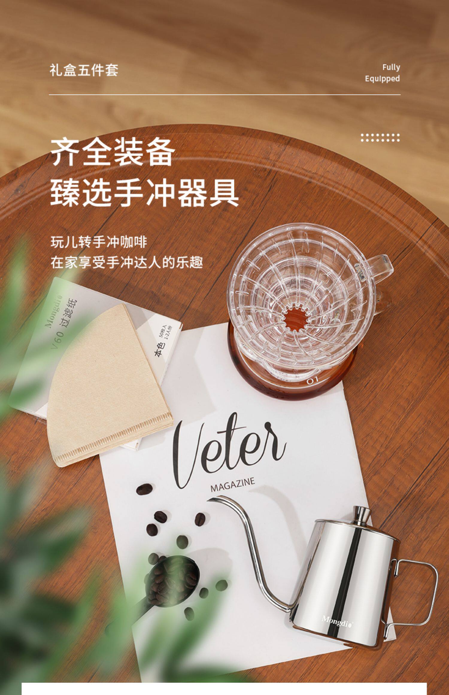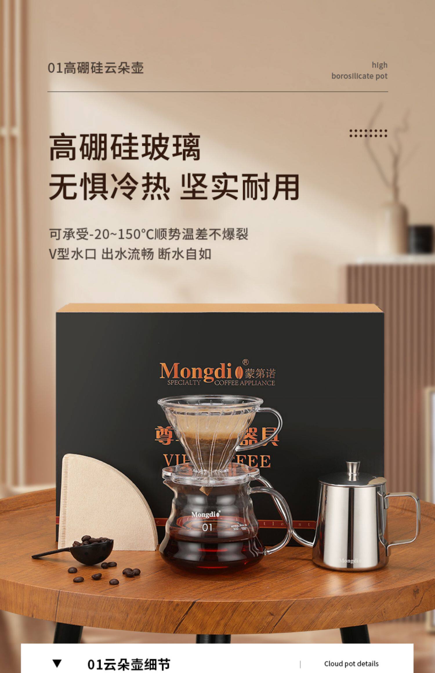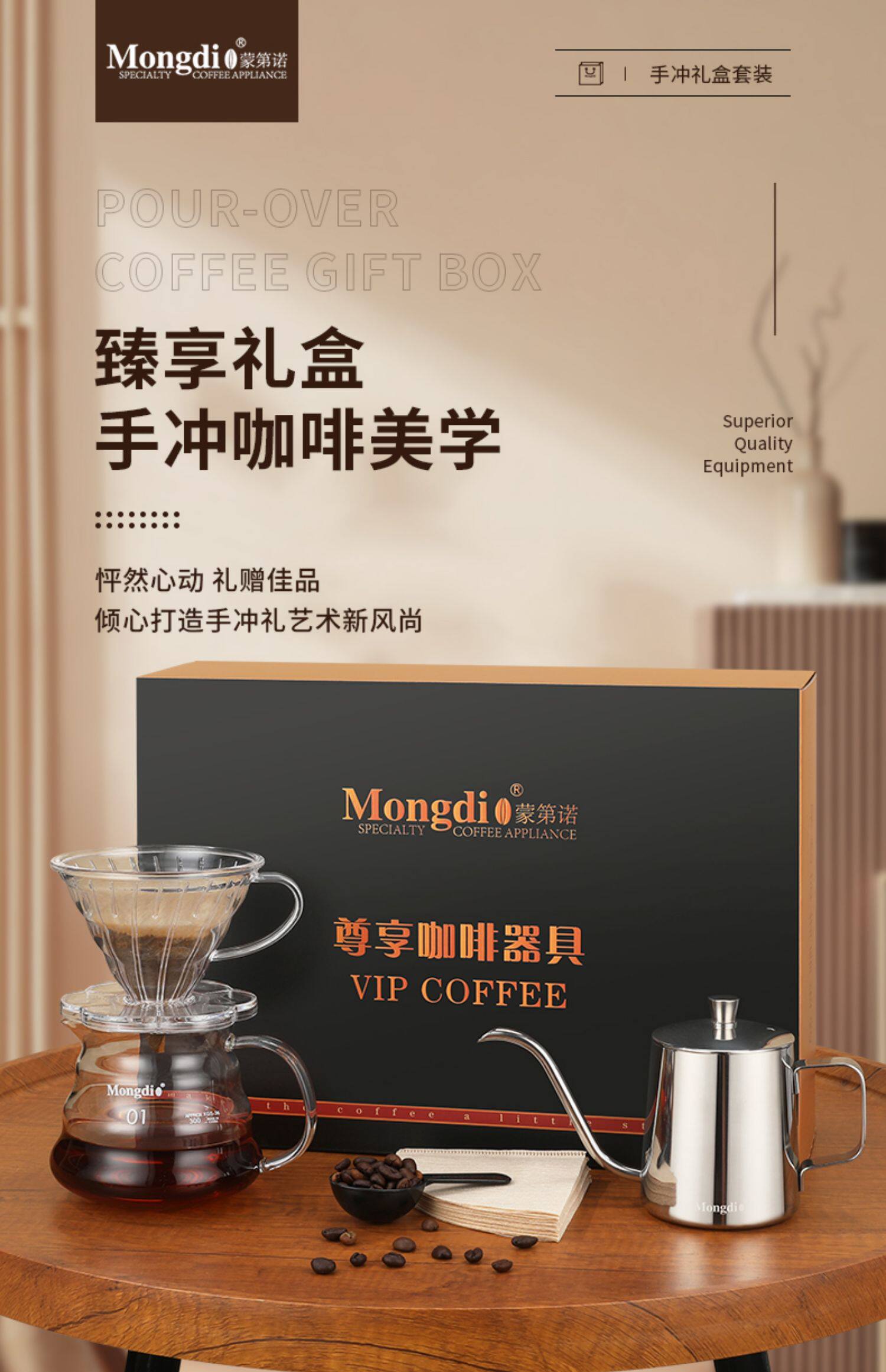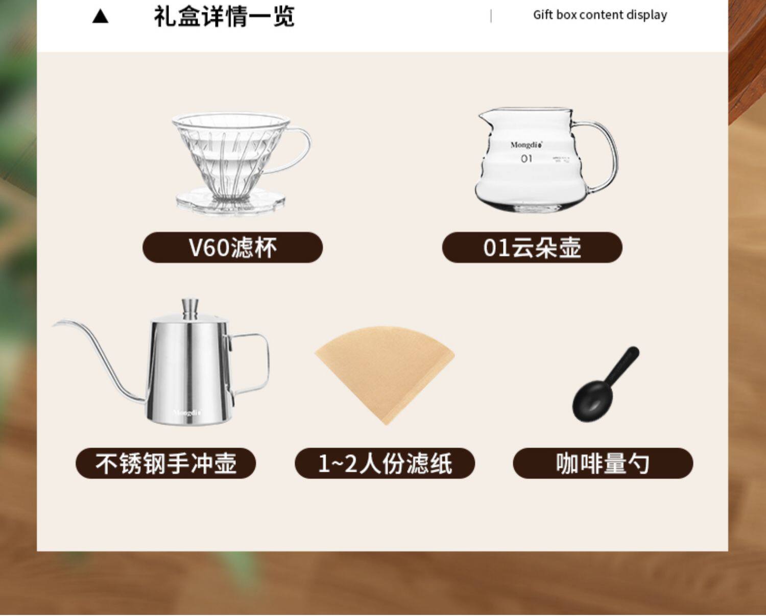 Mongdio Hand-Brewed Coffee Pot Set Gift Box Home Filter Cup Sharing Pot Hand Grinder Coffee Machine Hand-Cranked Coffee Grinder