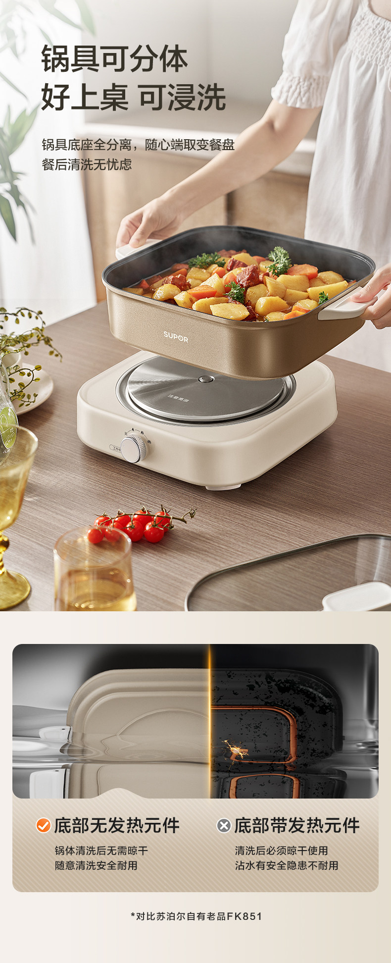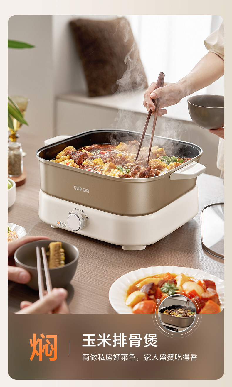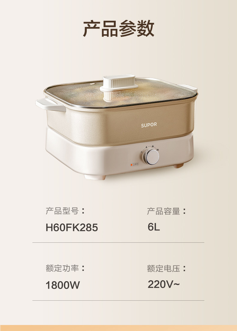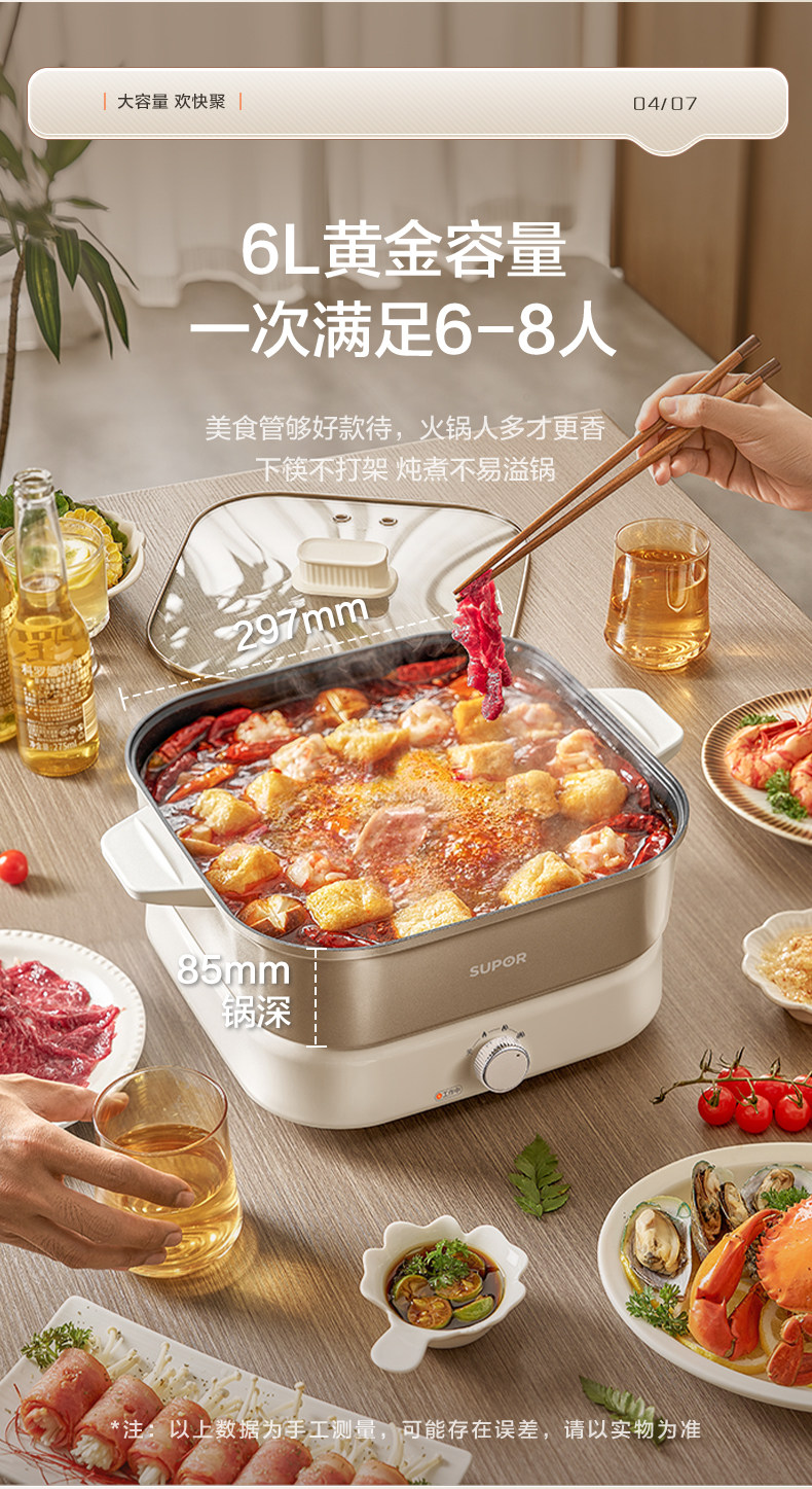 Supor Electric Hot Pot for Home Use, 6L Large Capacity, Detachable Multi-Functional Cooking Electric Pot, Frying Pan, New Product