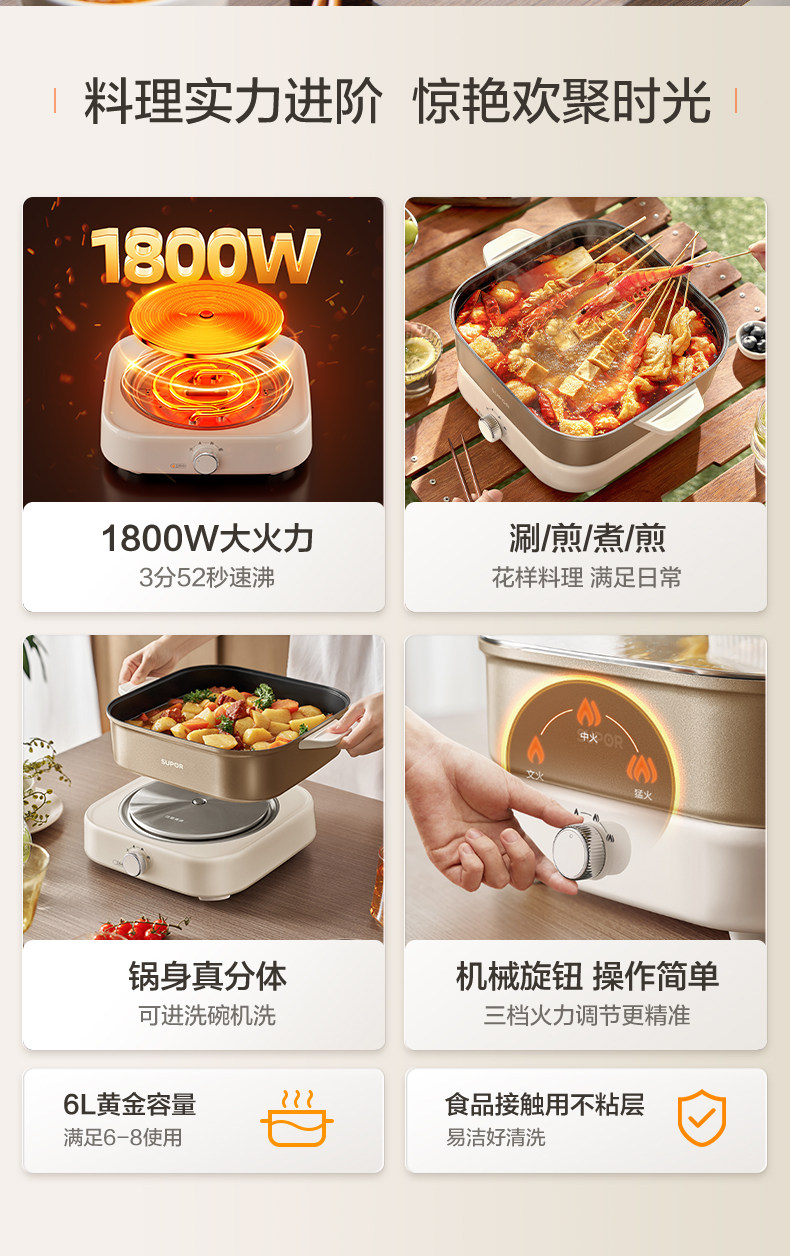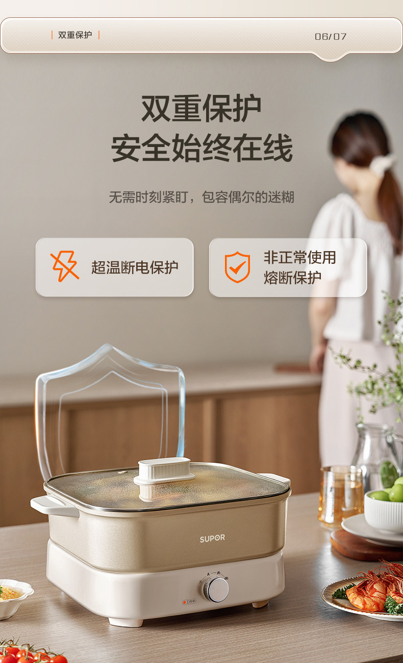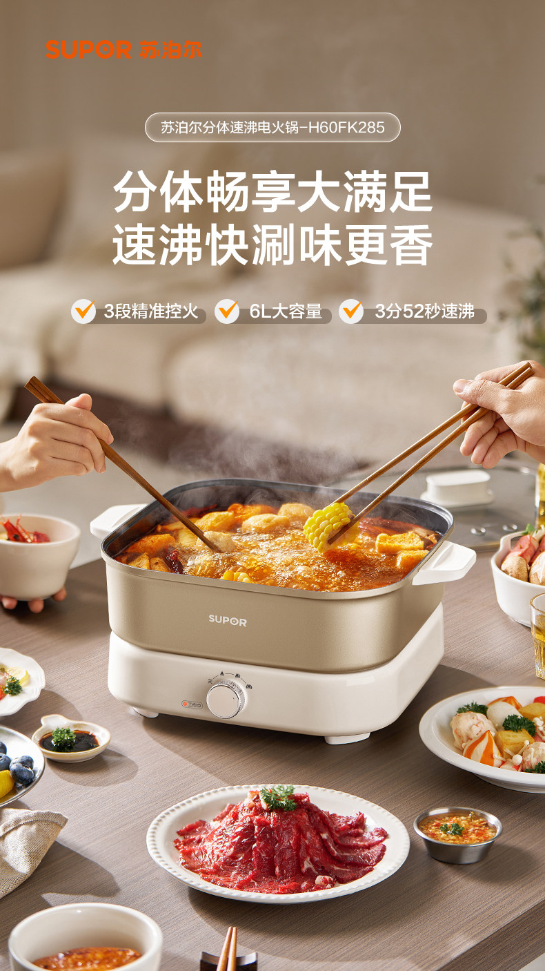 Supor Electric Hot Pot for Home Use, 6L Large Capacity, Detachable Multi-Functional Cooking Electric Pot, Frying Pan, New Product