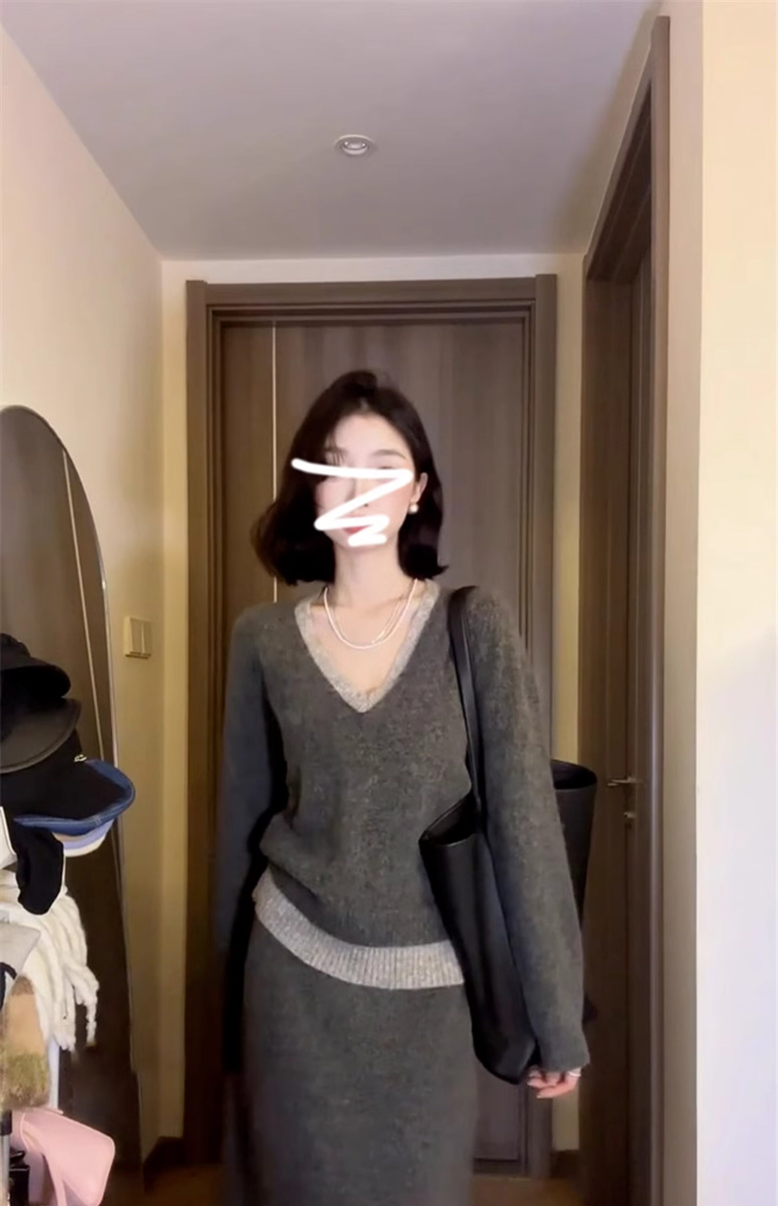 French sweater knitted dress for women in autumn and winter 2026 new winter temperament to wear with a complete set of long skirts