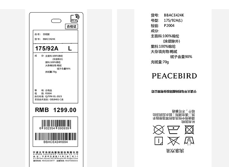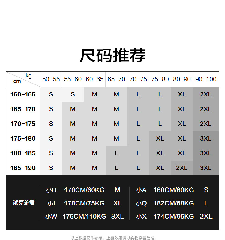 China (cm) 165 / 88-90 170 / 96-98 175 / 108-110 180 / 118-122 185 / 126-130