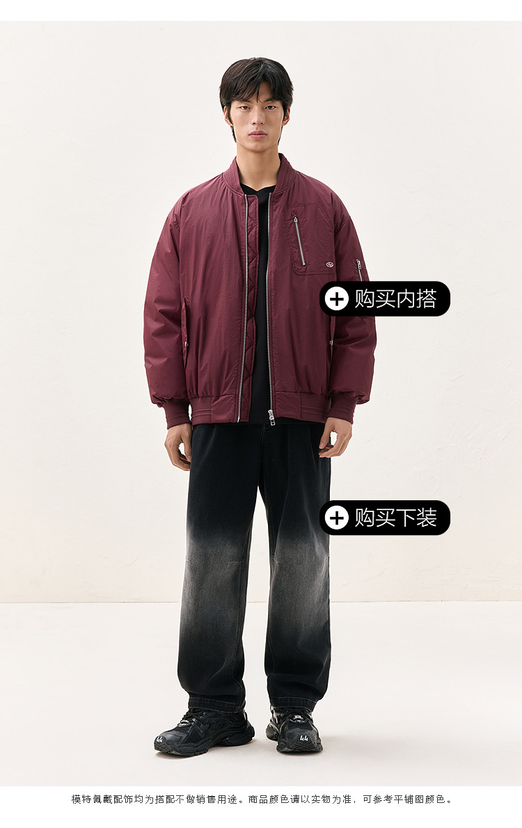 [American Retro] Peacebird Men's down Jacket 2024 Winter New Baseball Collar Cold-Proof Flight Jacket