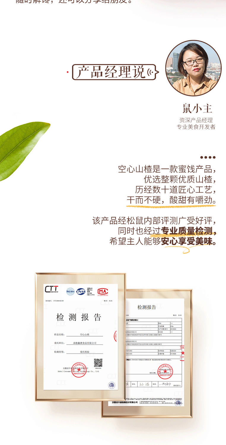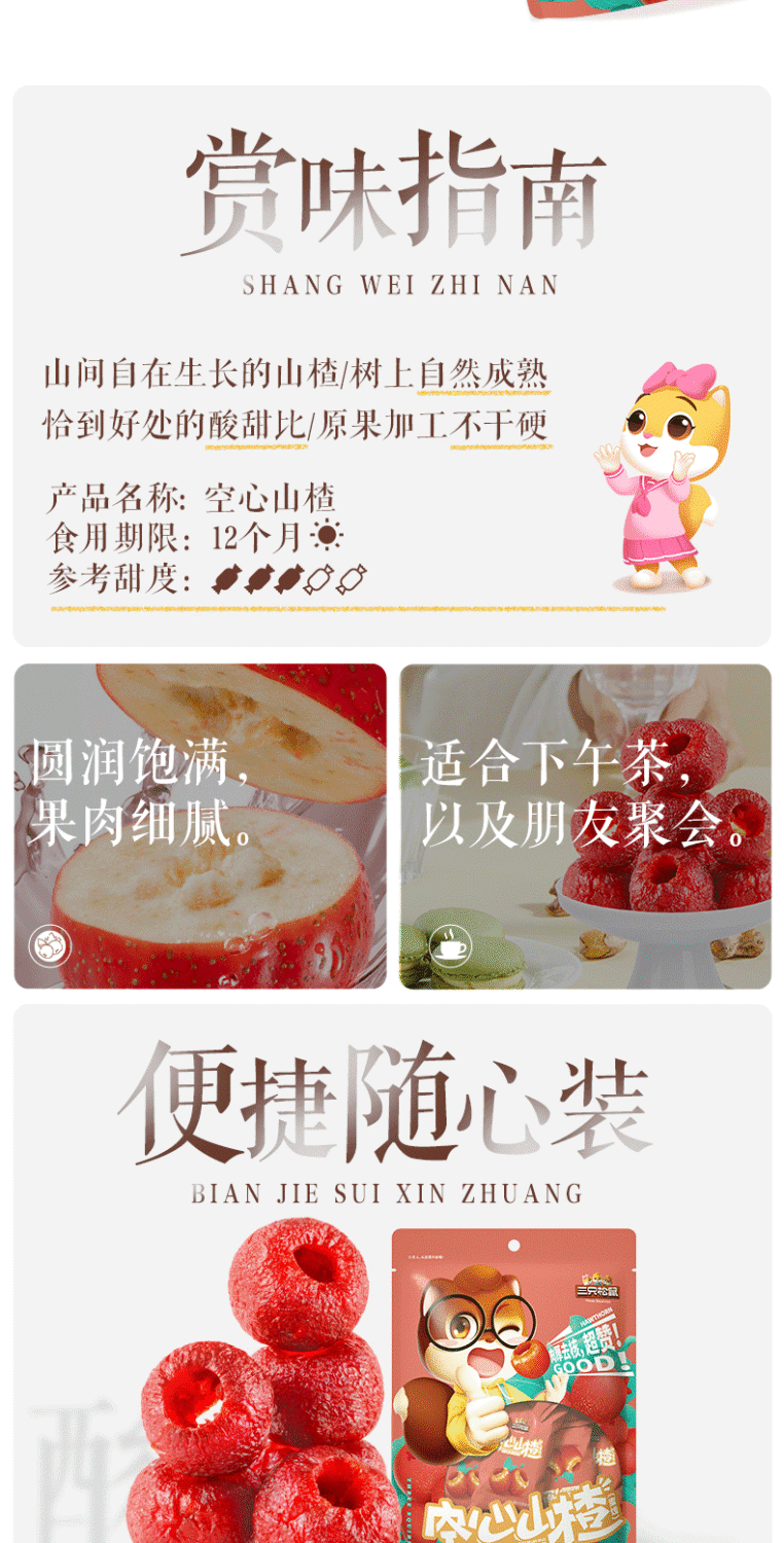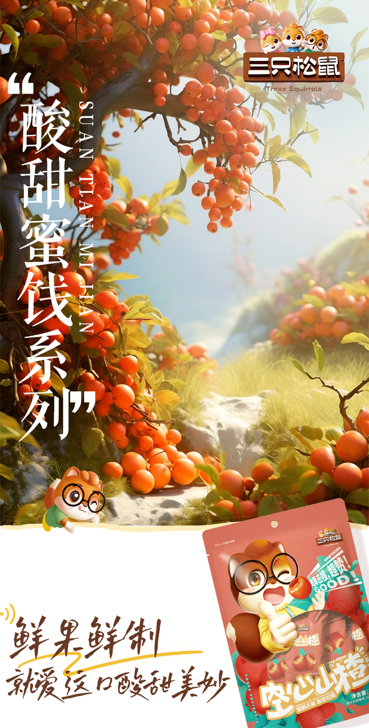 Three Squirrels Hollow Hawthorn Balls 100g Seedless Fruit Peel Instant Snack Preserved Fruit Leisure Nostalgic Children's Snack