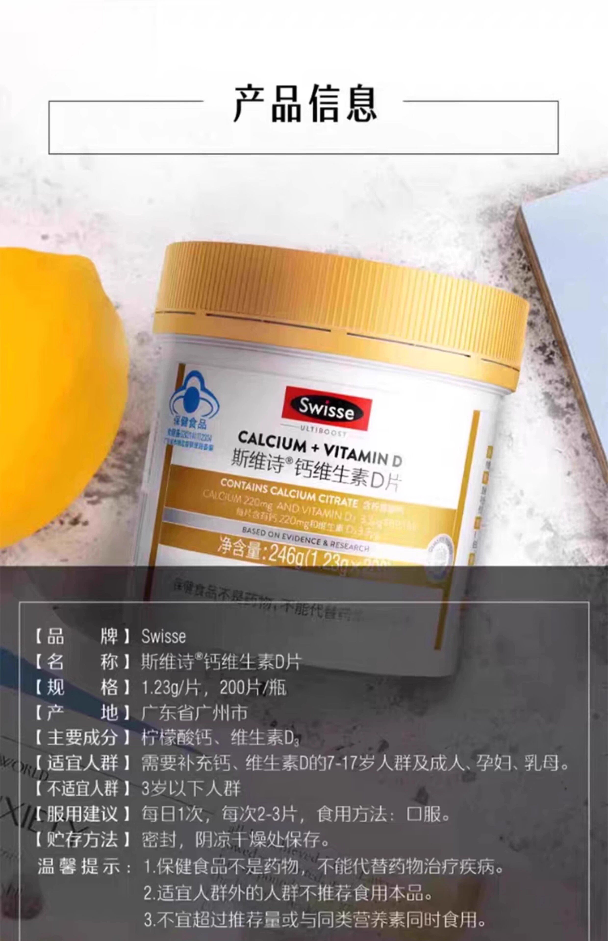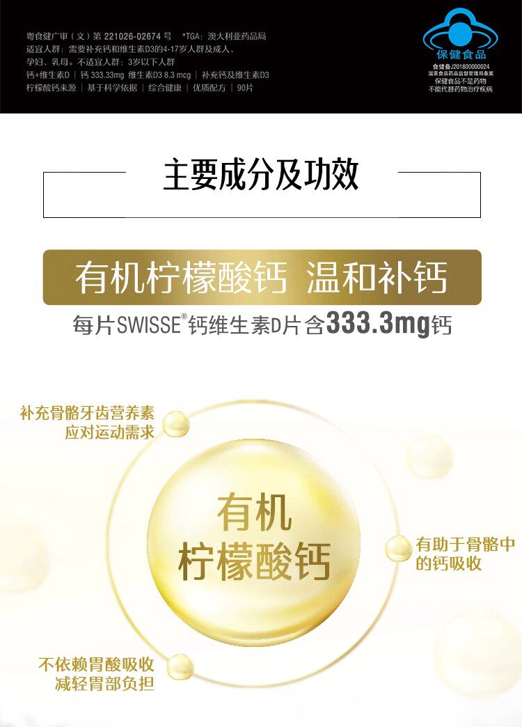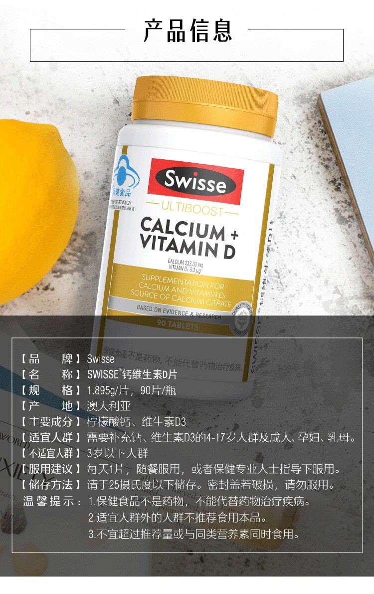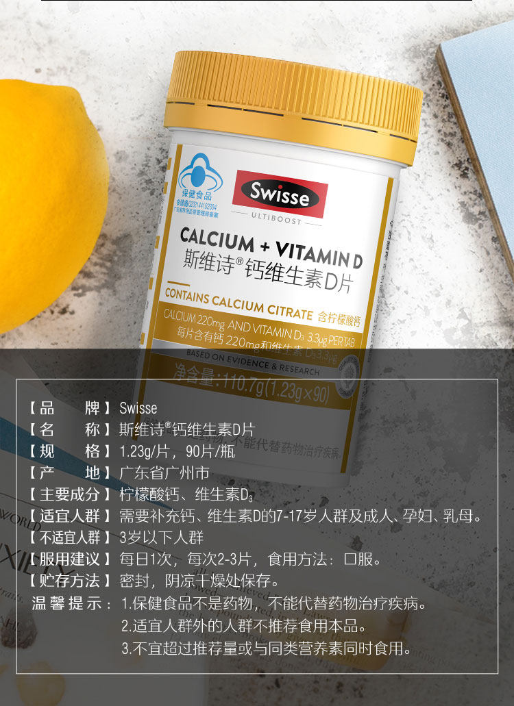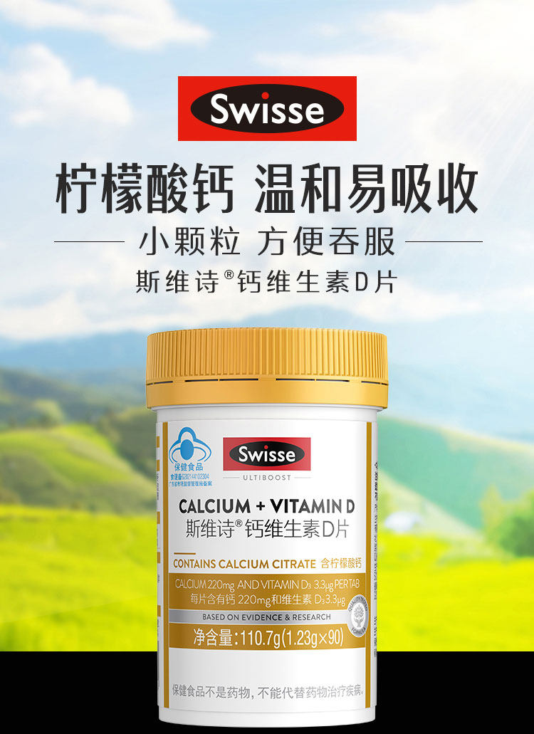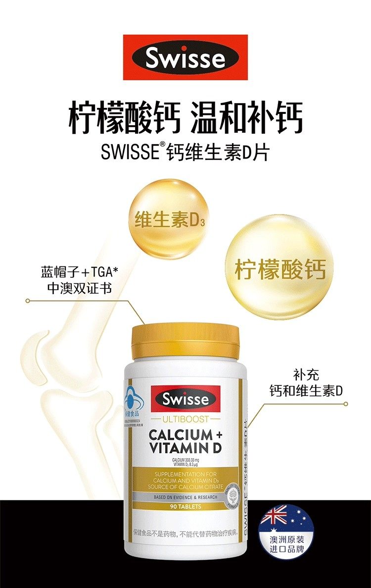 Swisse Calcium Tablets with Calcium Citrate for Teenagers, Middle-Aged and Elderly People, Vitamin D 200 Tablets, Genuine Product