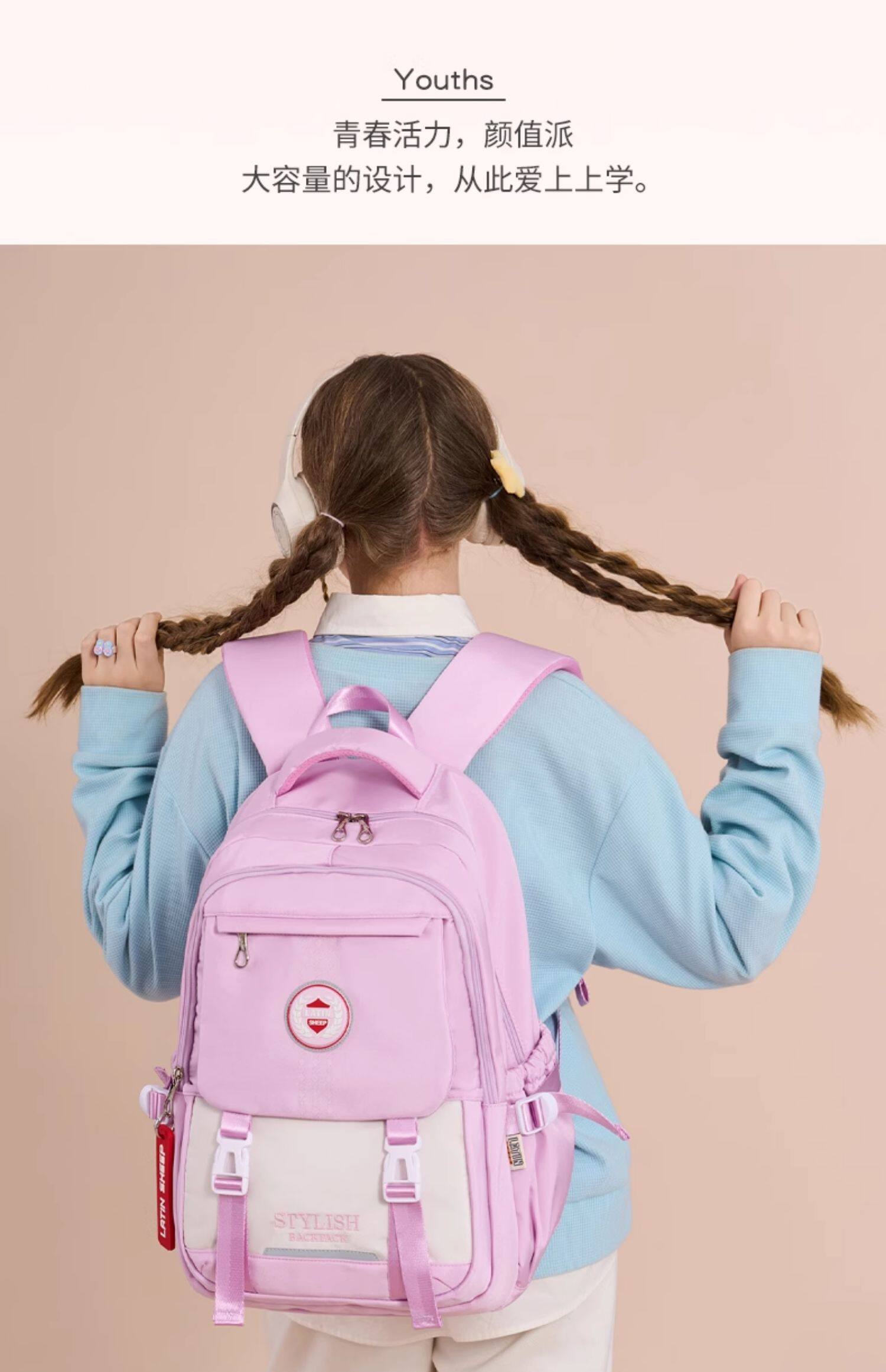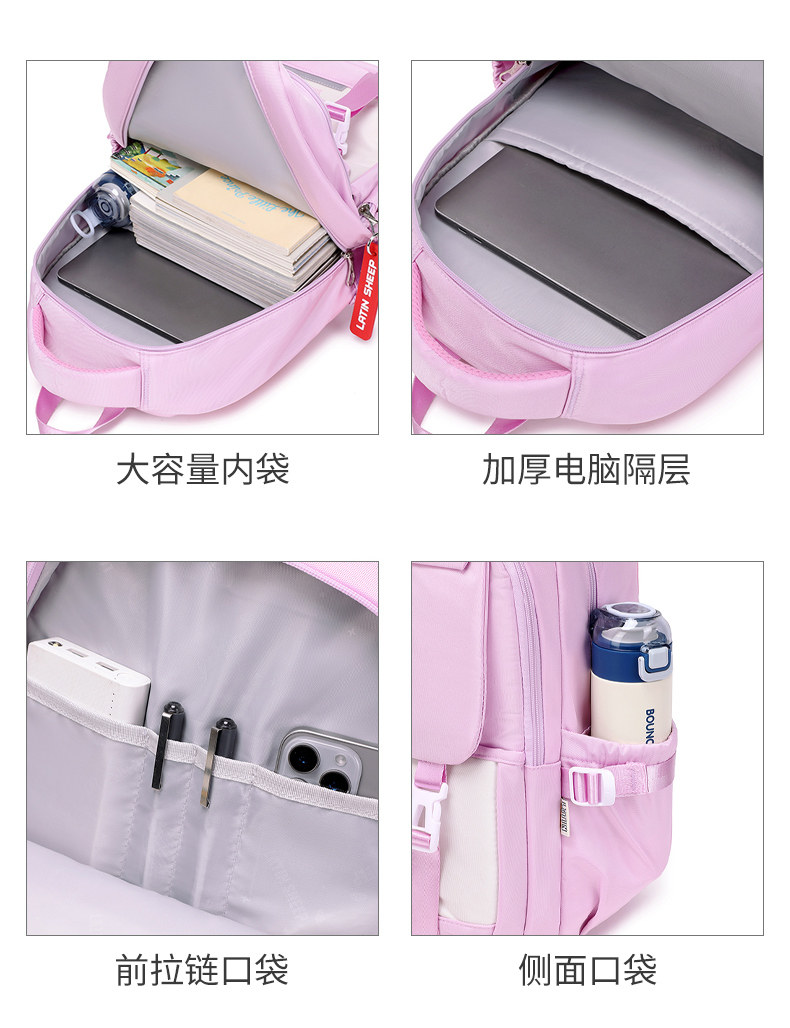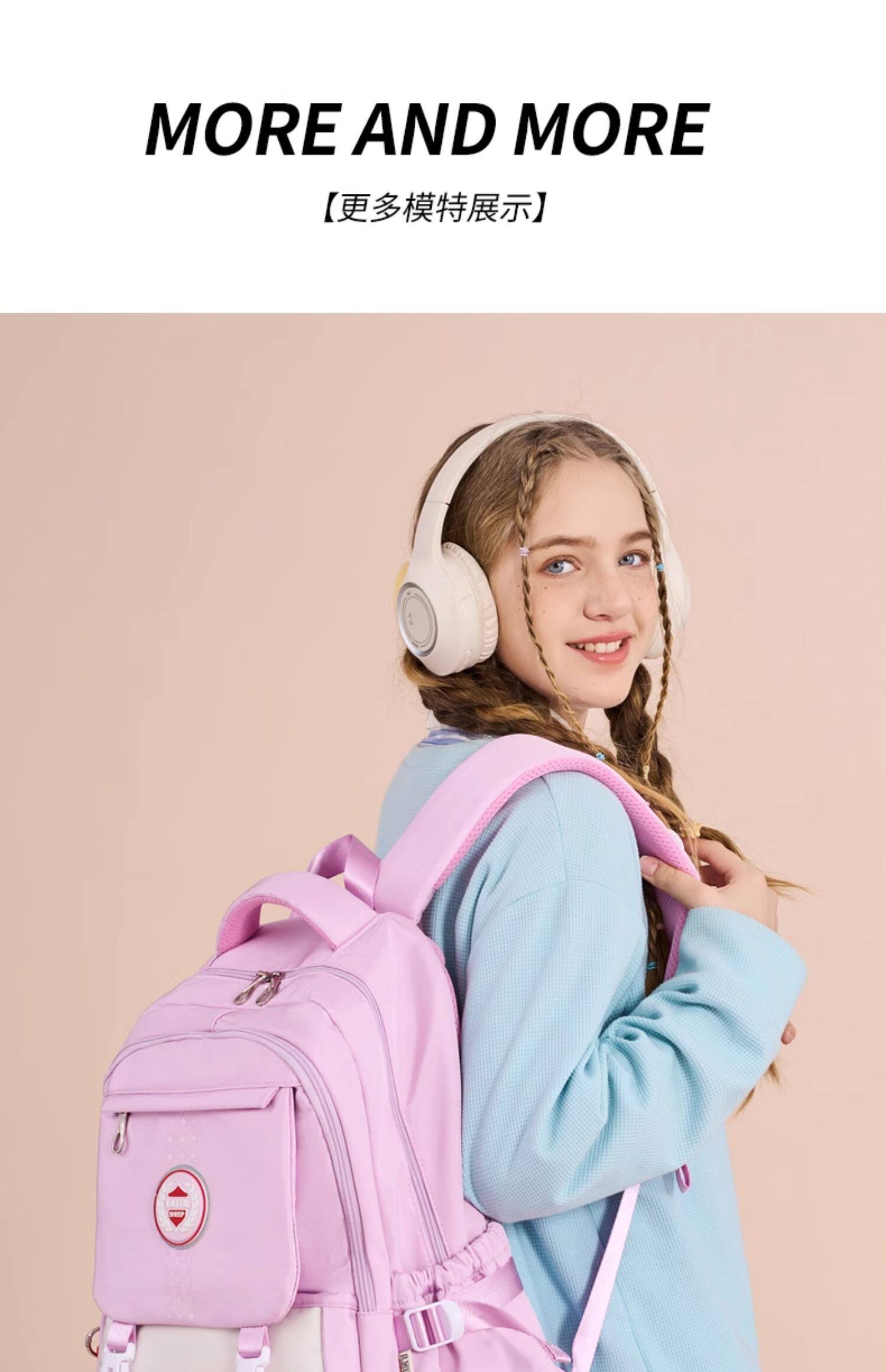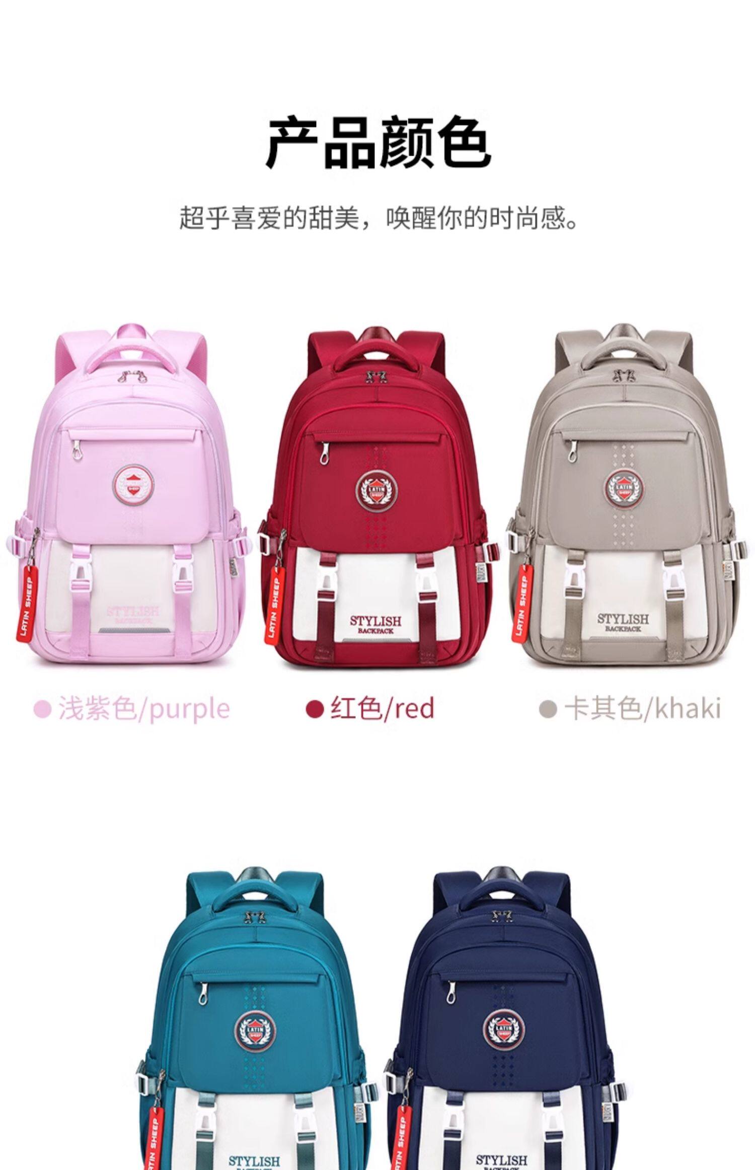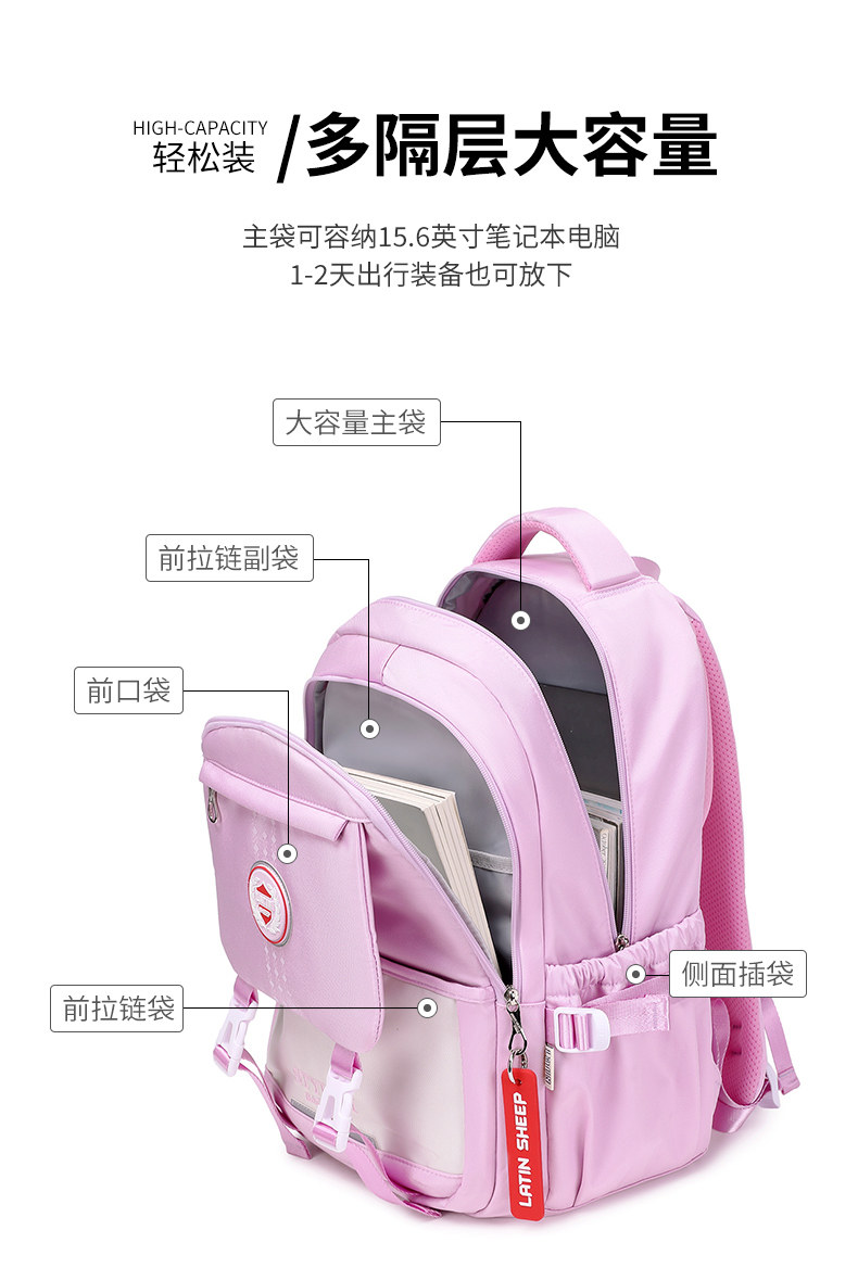 Lanjie Middle School Student Schoolbag for Girls, Large Capacity, Elementary School Students in Grades 4, 5, and 6, Burden-Reducing, Spine-Protecting, Junior High School Backpack