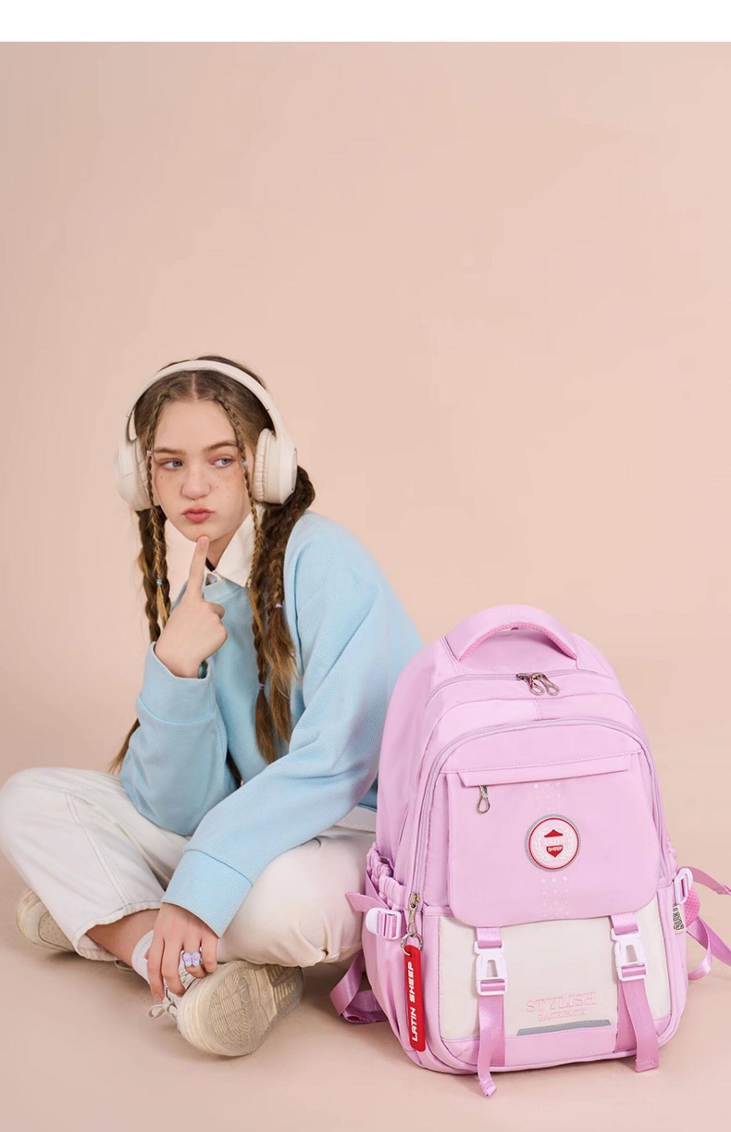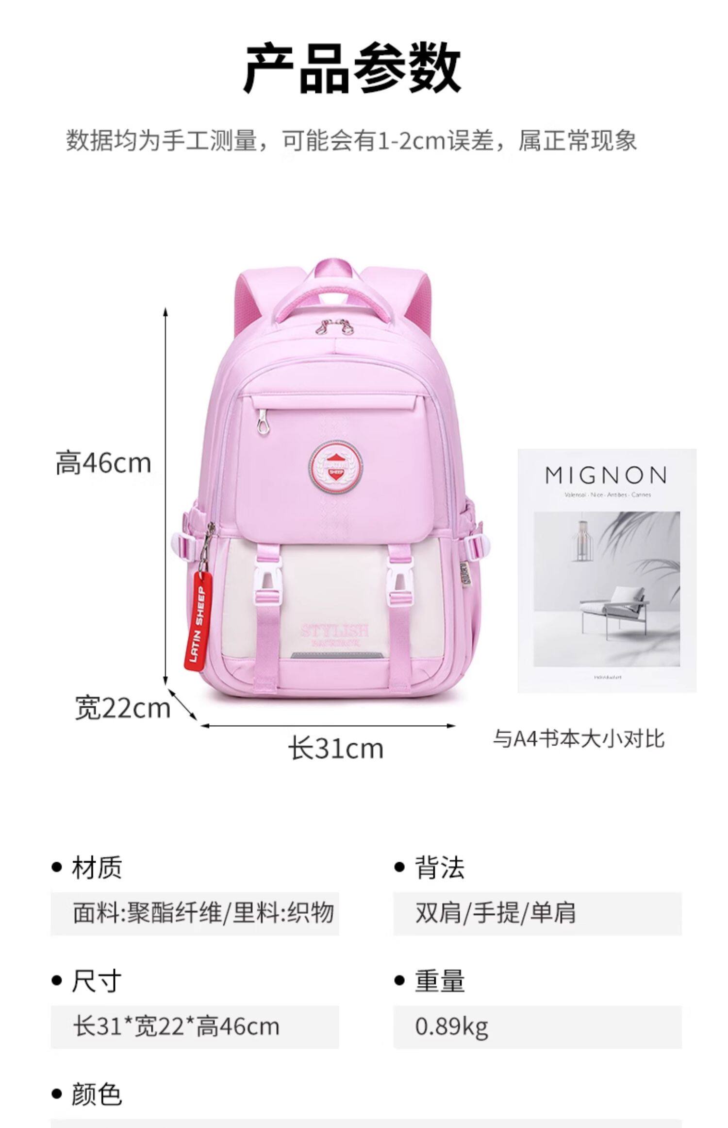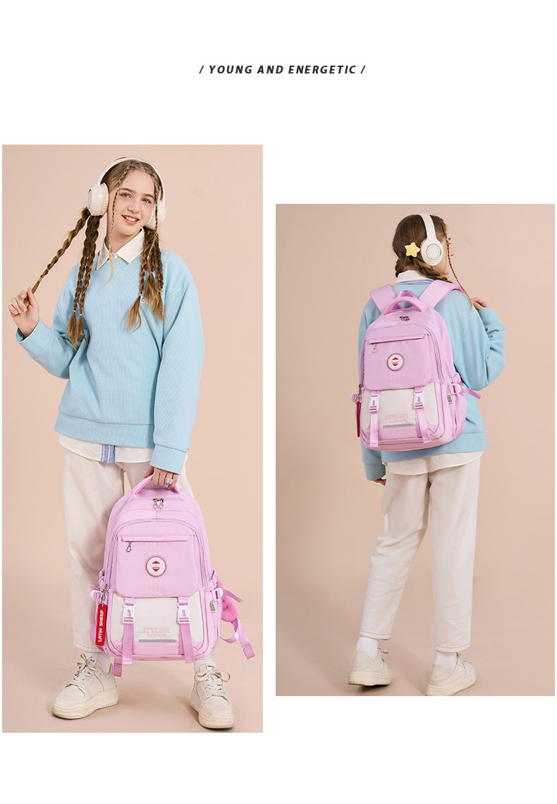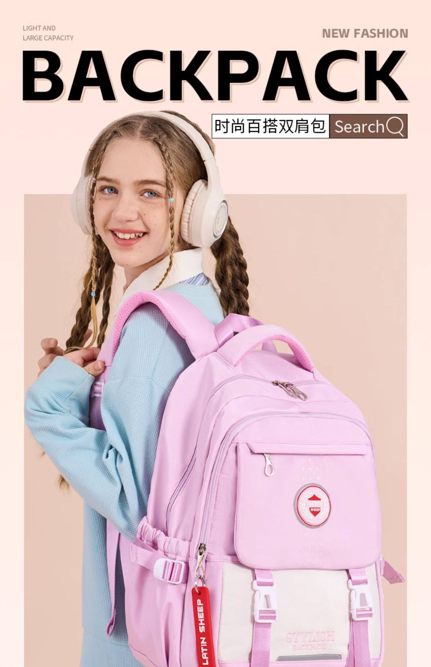 Lanjie Middle School Student Schoolbag for Girls, Large Capacity, Elementary School Students in Grades 4, 5, and 6, Burden-Reducing, Spine-Protecting, Junior High School Backpack