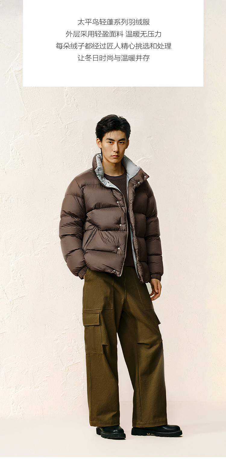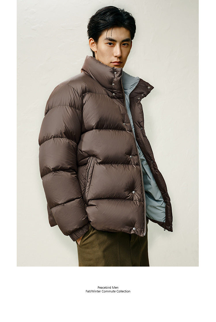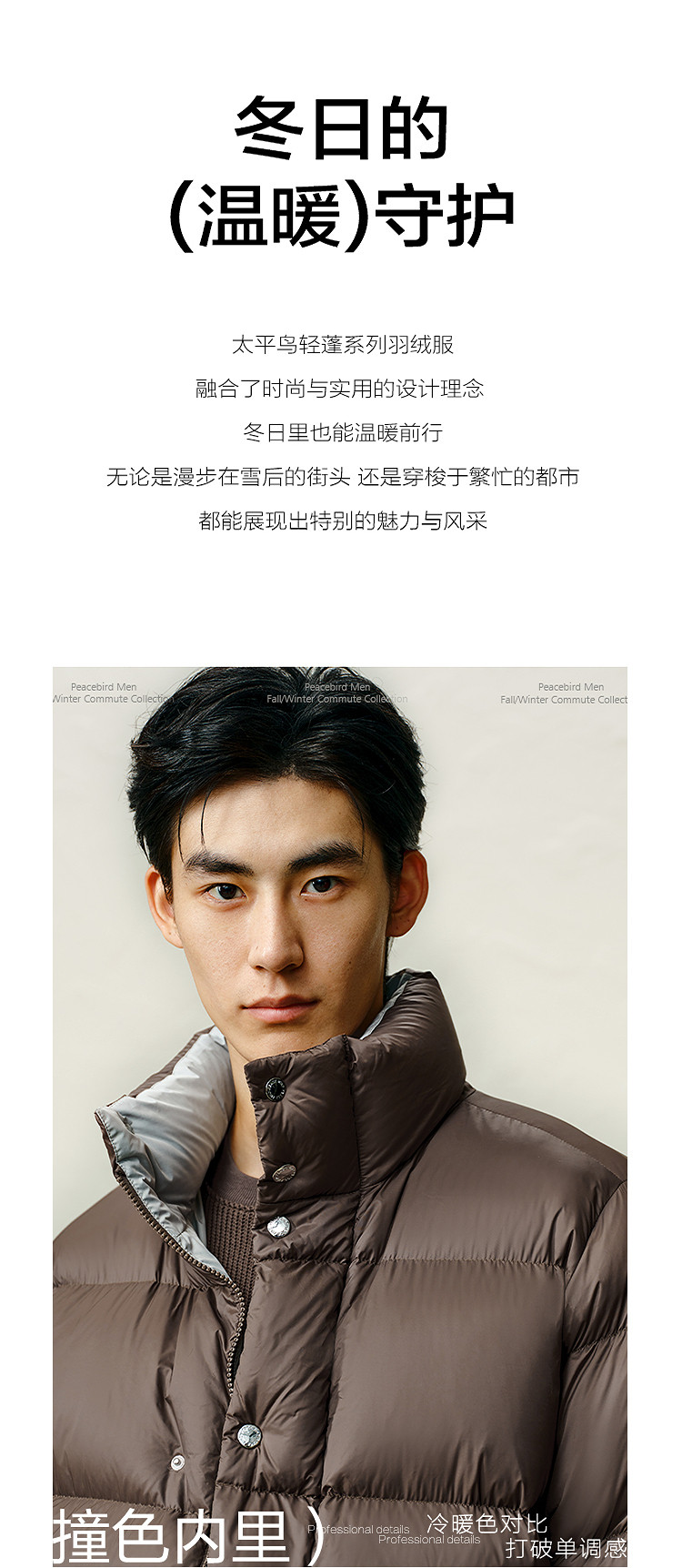 [High down Filling]Peacebird Men's Clothing 2024 Winter New Color-Block Cold-Resistant down Jacket