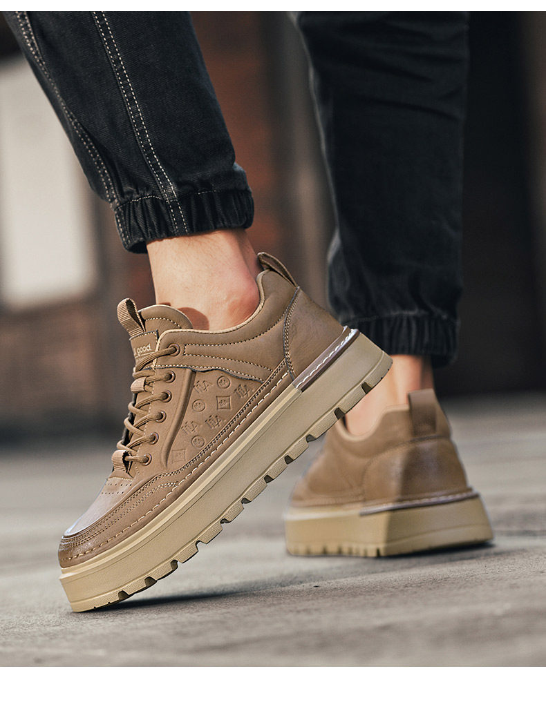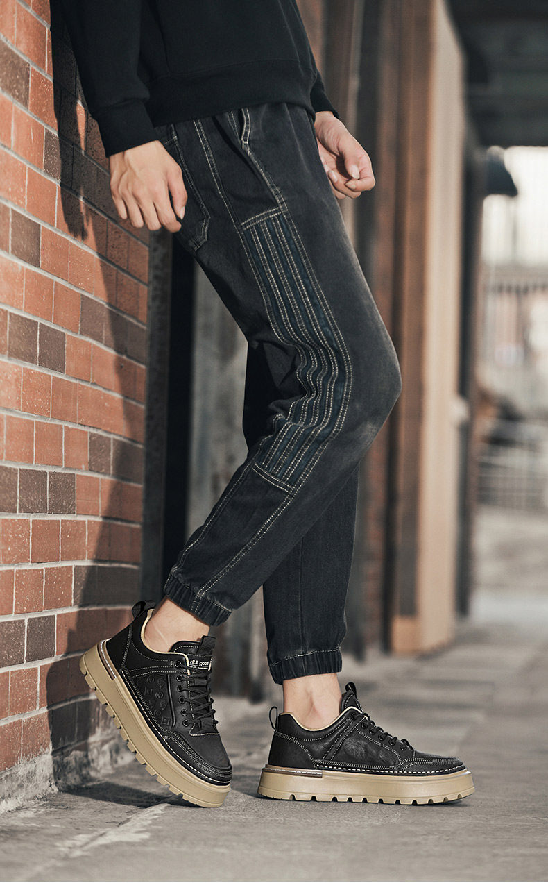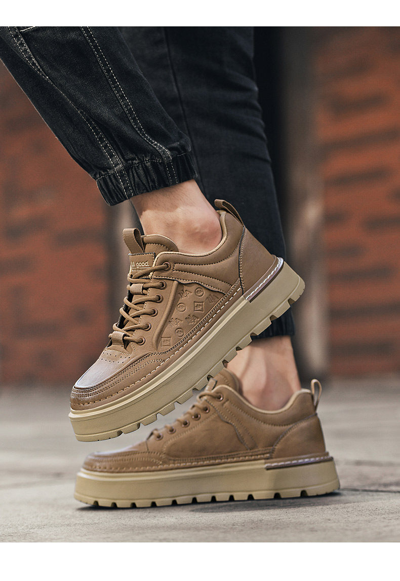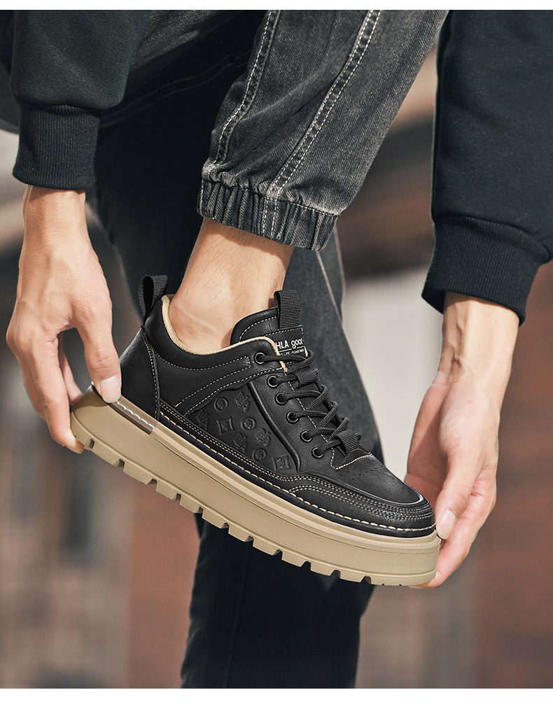 Heilan Home Men's Shoes Summer 2026 New Trendy Brand Thick-Soled Black Carved Casual Shoes Men's Sneakers Leather Shoes