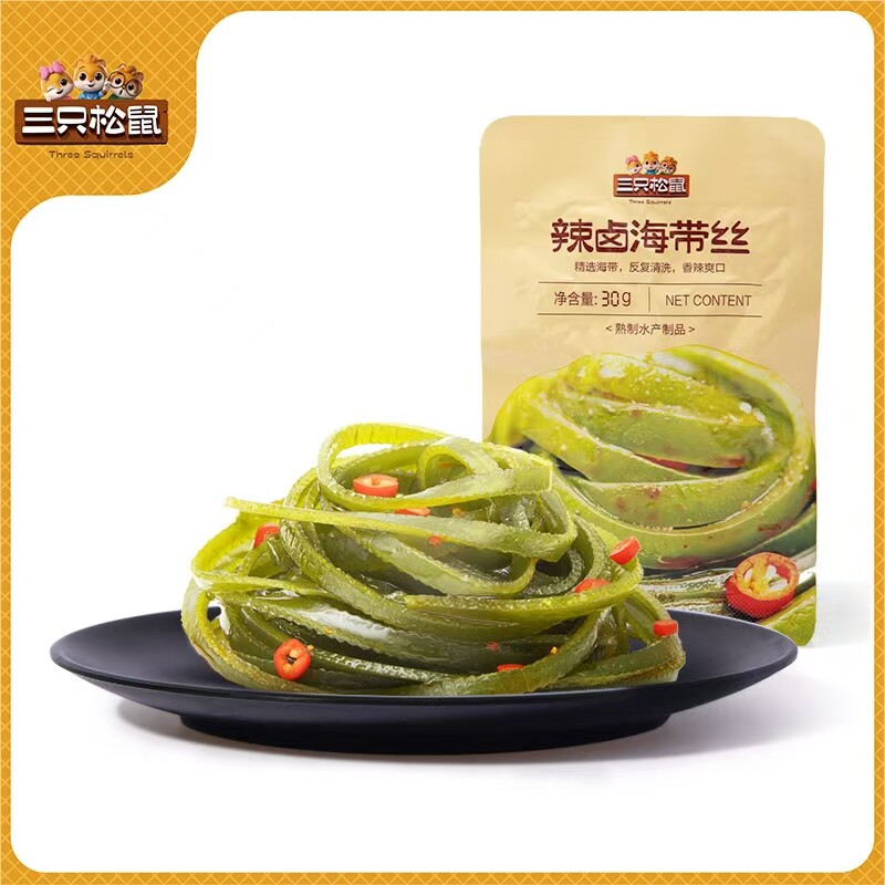 Three Squirrels Spicy Braised Seaweed Strips 30g Bag Small Packaged Ready-To-Eat No-Cook Snack