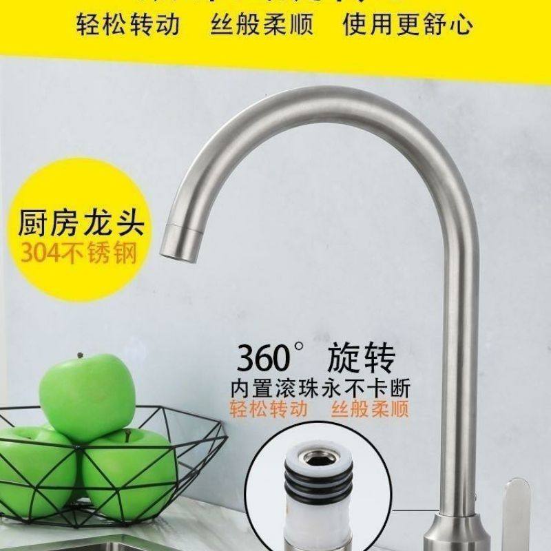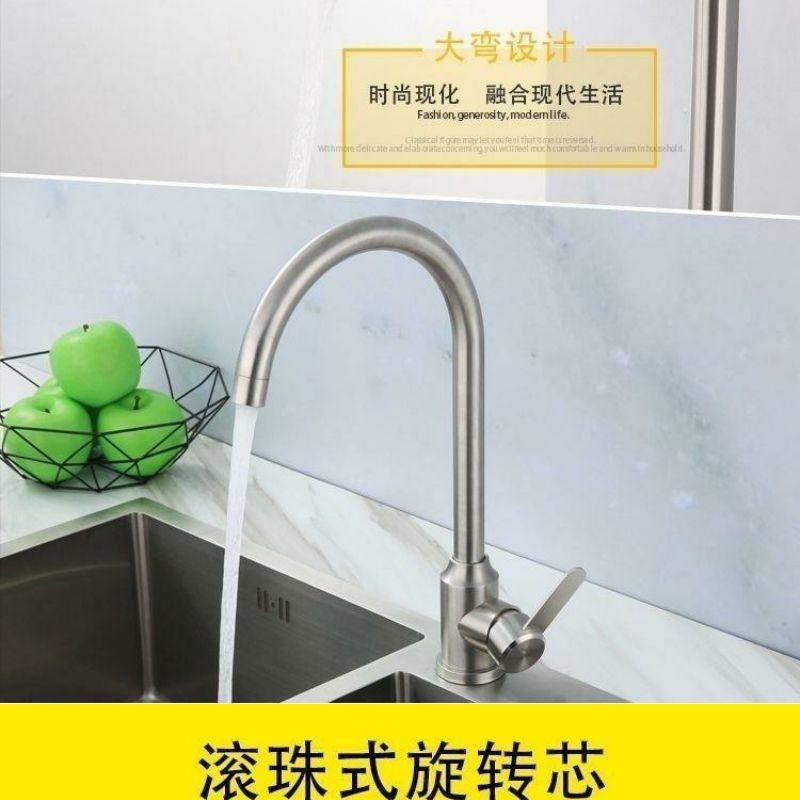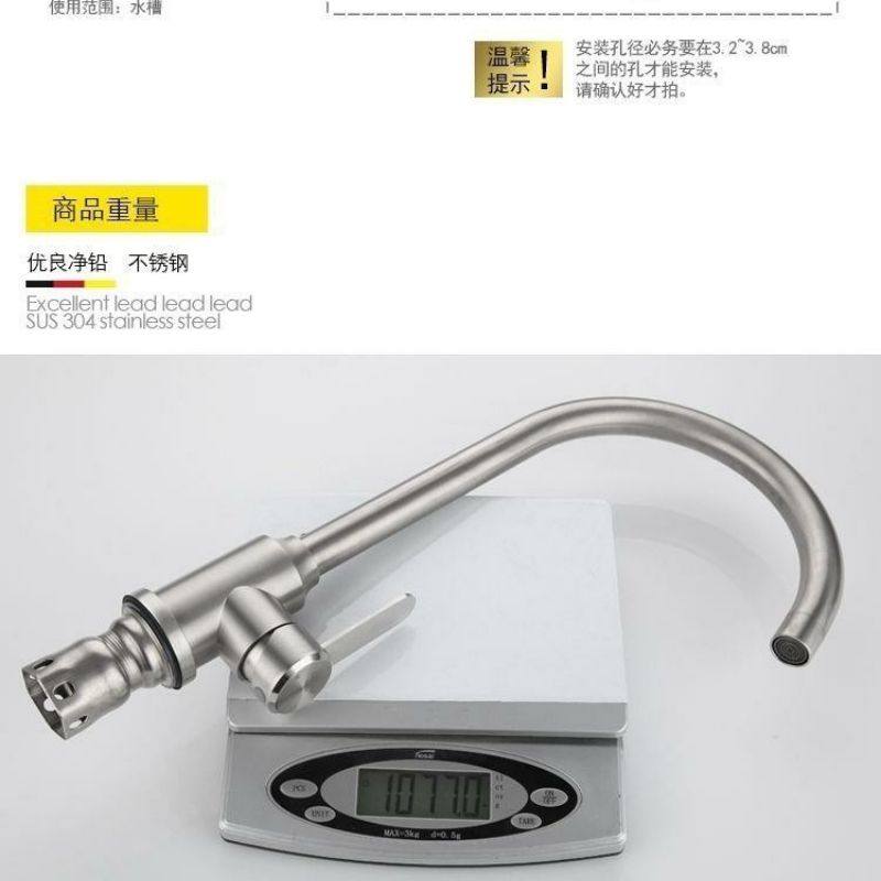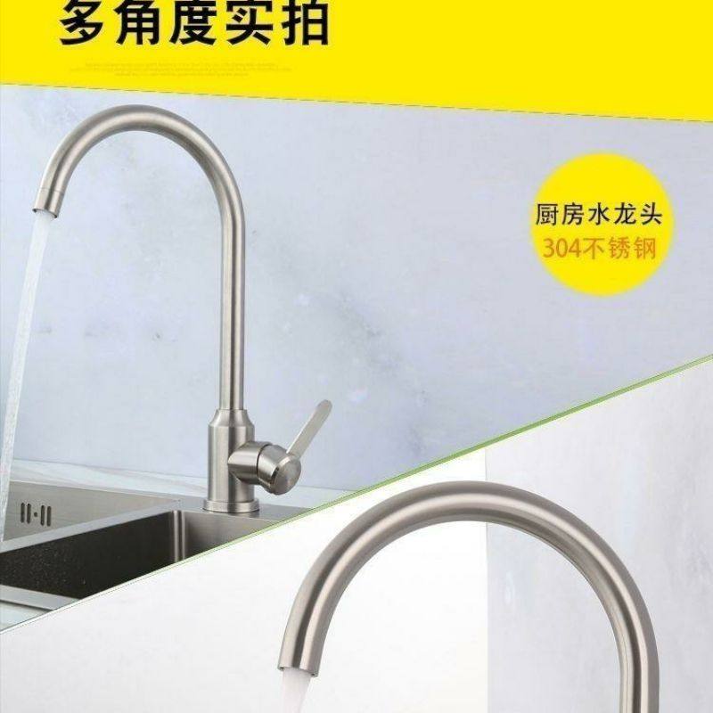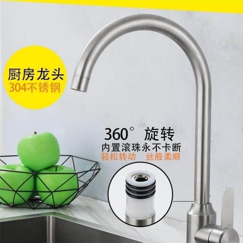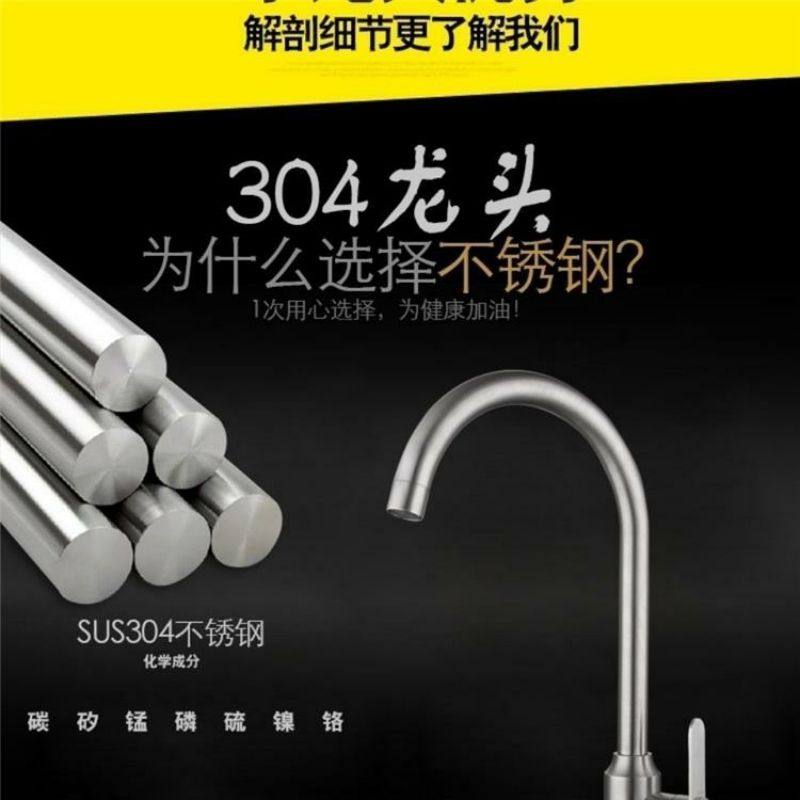 German Kitchen Faucet Hot and Cold Household 304 Stainless Steel Sink Faucet Splash-Proof Single Cold Faucet