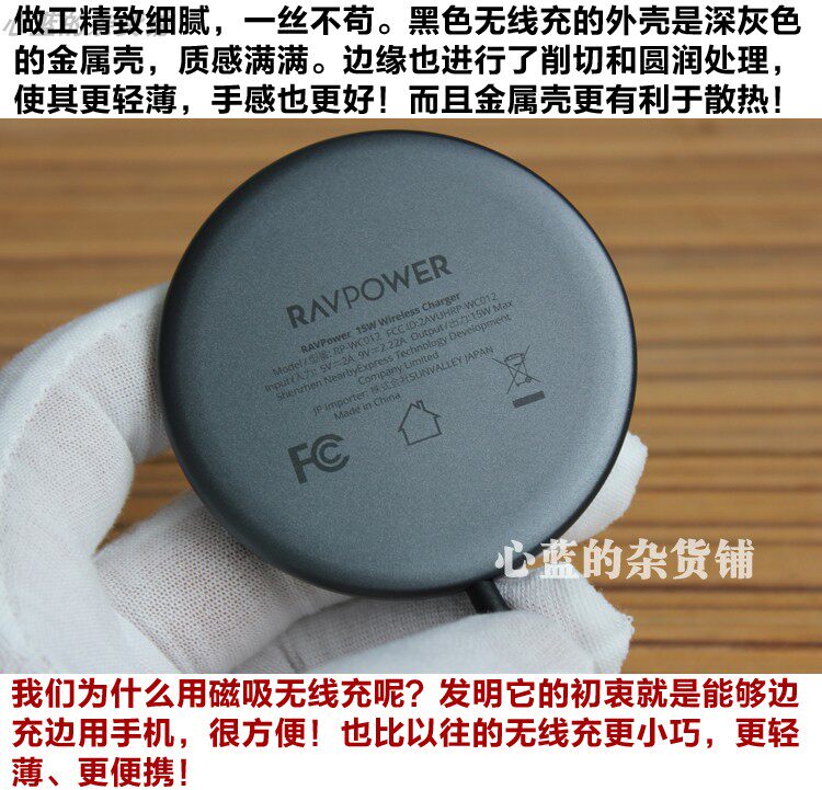 Ravpower 15-Watt Metal Magnetic Qi Wireless Charger Suitable for iPhone 12 13 14 15 16 Mobile Phones and Earphones, Single Wireless Charging Without Charging Head