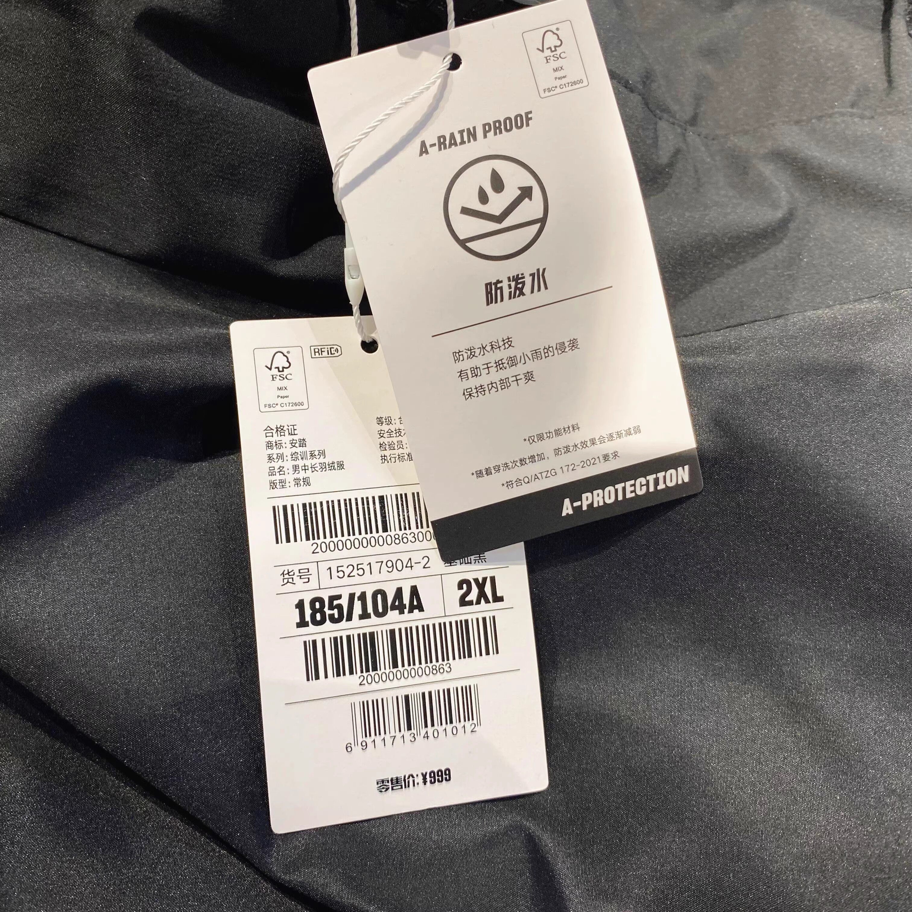 Anta Mid-Length down Jacket for Men 2024 Winter New Style Water-Repellent Comfortable down Jacket for Men 152517904