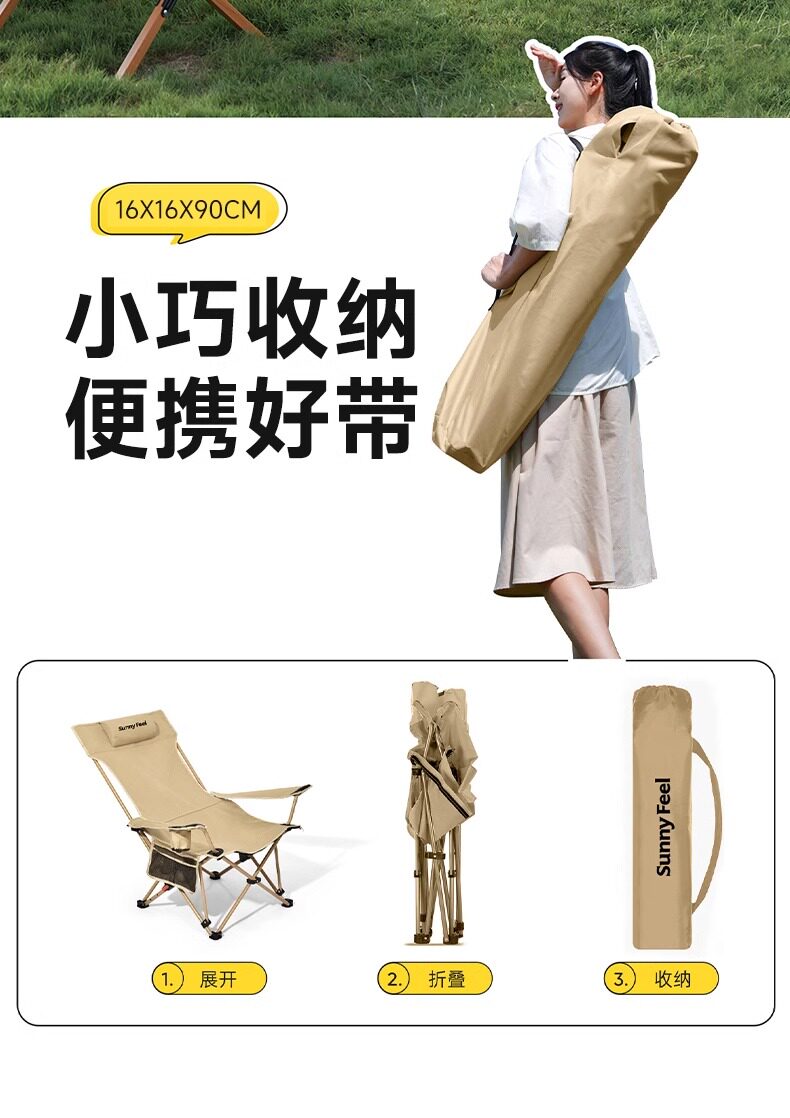 Sunnyfeel Outdoor Reclining Chair Foldable Portable Camping Chair Adjustable Office Lunch Break Beach Chair
