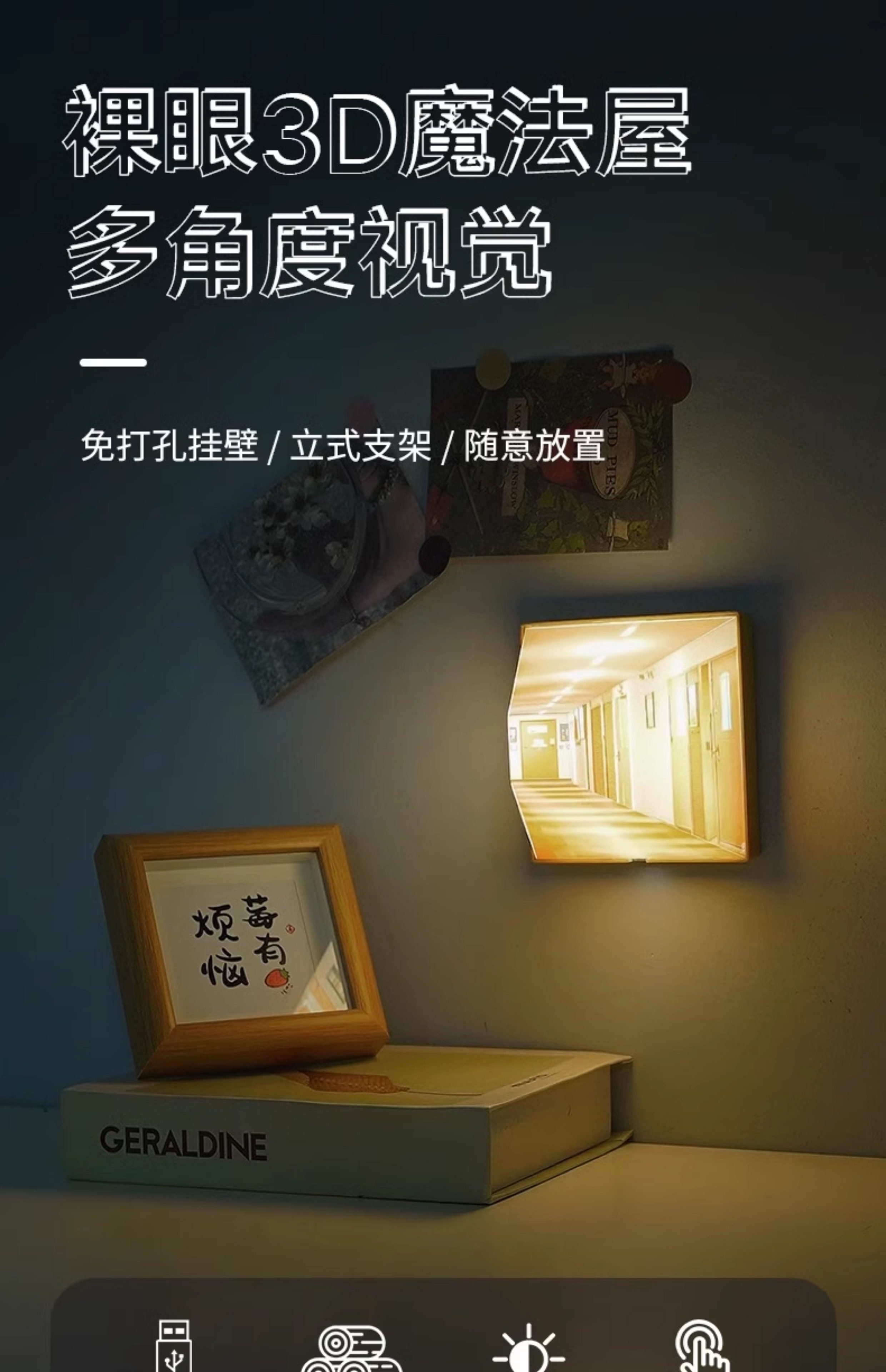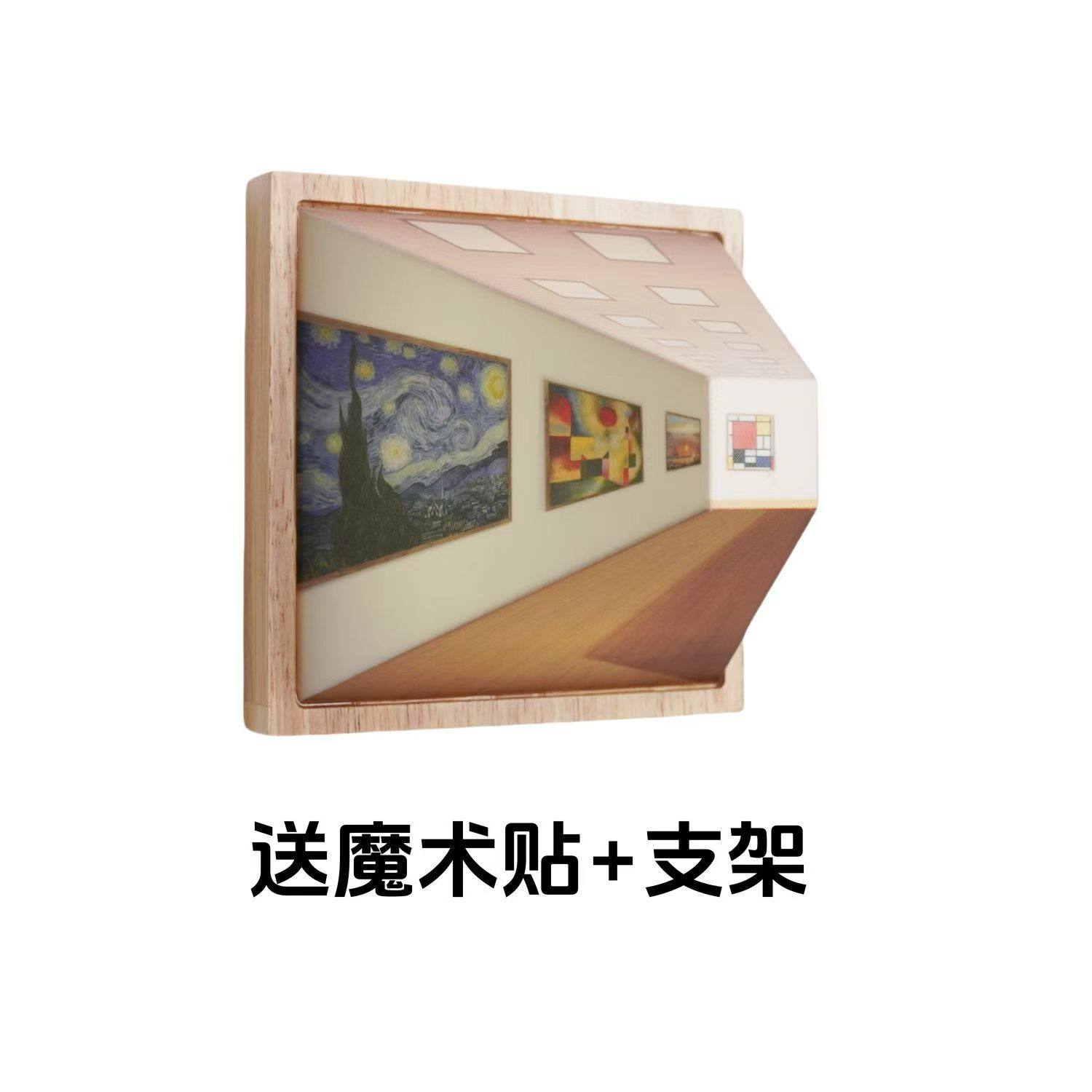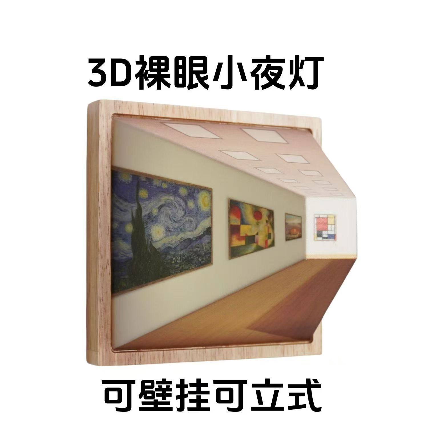 Naked-Eye 3D Stereo Atmosphere Lamp Gift Night Light with Wooden Base, Naked-Eye Vision, No Drilling Required, Home Bedroom Wall Lamp