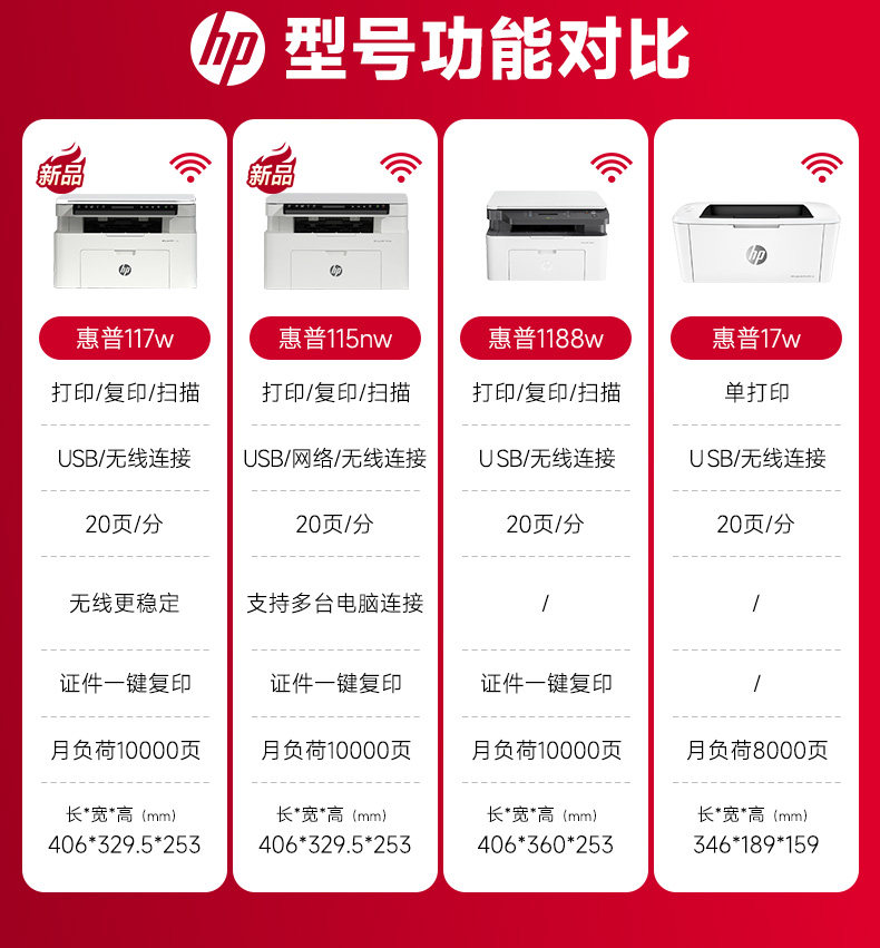 Hp M117W Black and White Laser Printer Small Multifunctional All-In-One Machine Wireless Mobile Copy and Scan Three-In-One Office Dedicated for Students