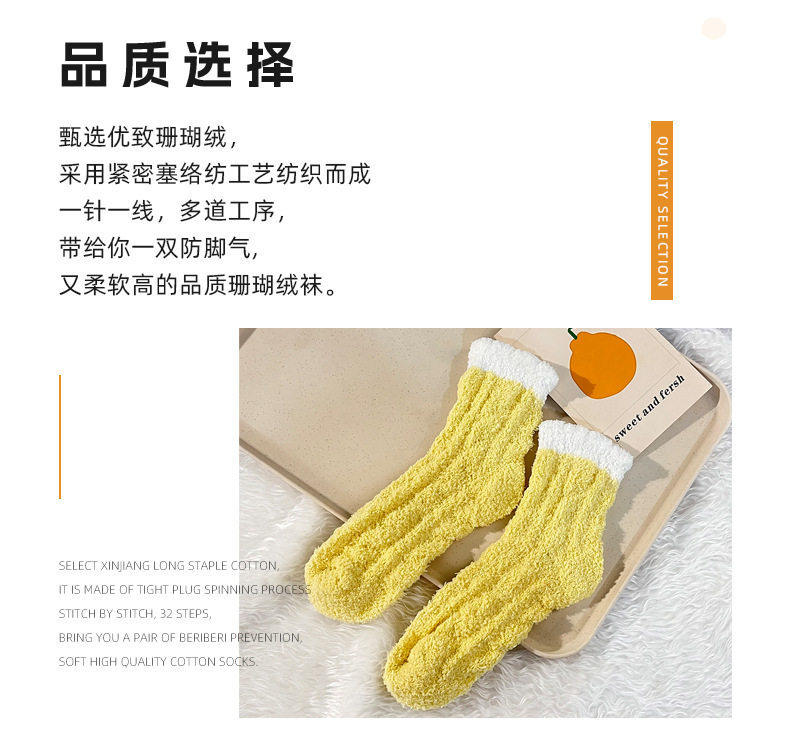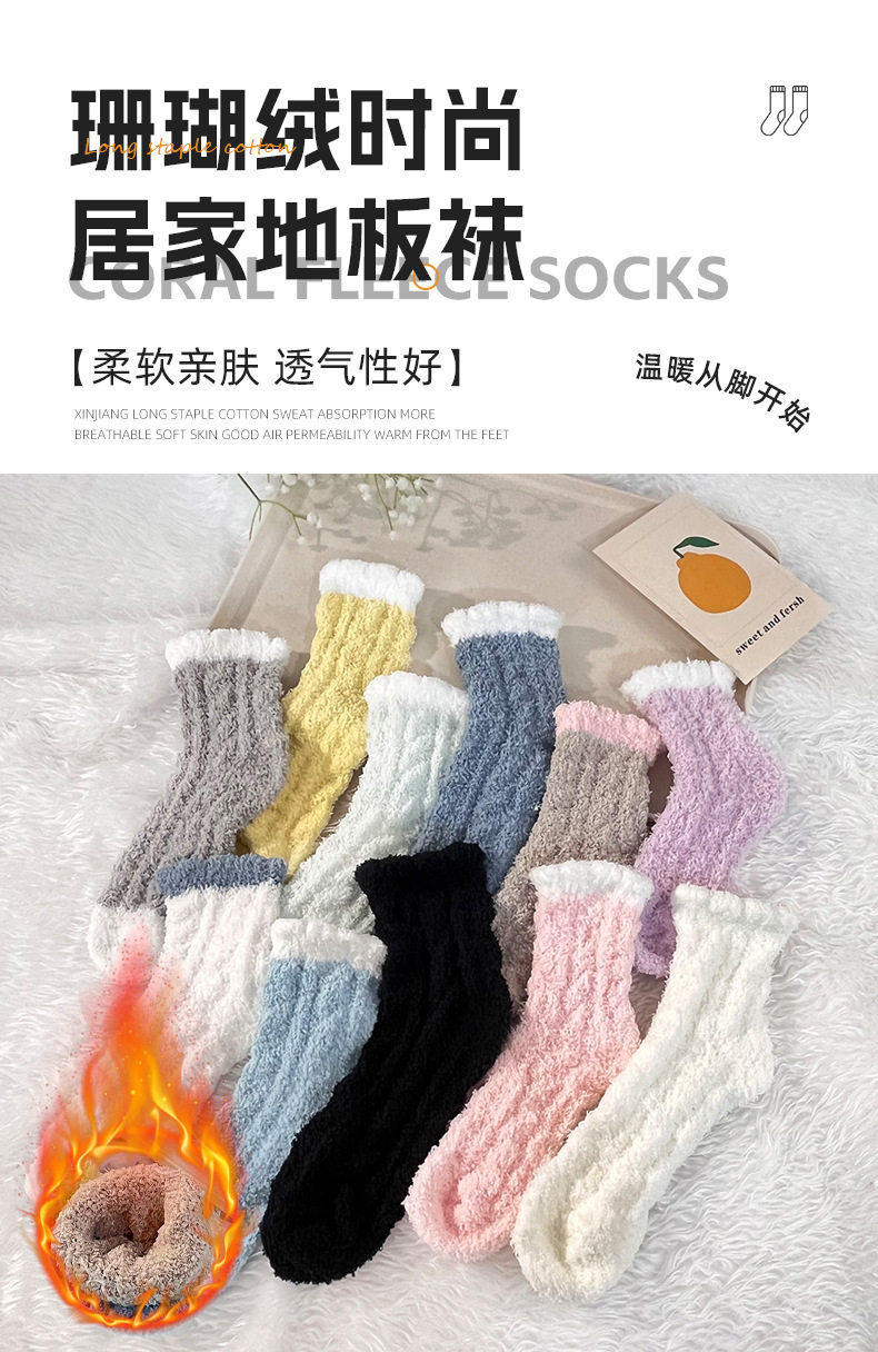 Coral Fleece Socks for Men and Women, Winter Mid-Calf, Fleece-Lined, Thickened, Warm Winter Home Socks, Sleep Floor Socks