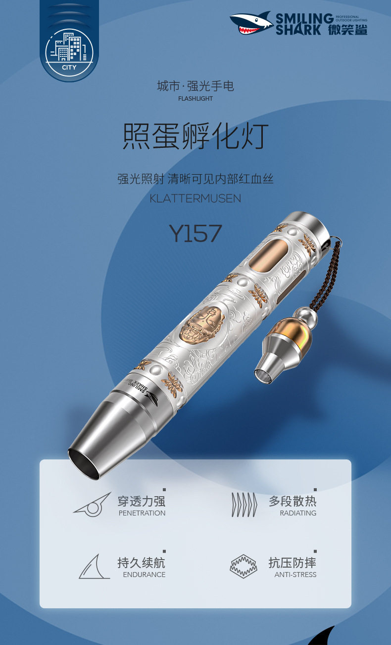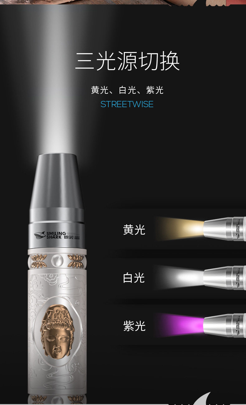 Smiling Shark In古巴领领tion-Specific Egg Inspection Flashlight Led Strong Penetration Cold Light Egg Inspection Multi-Functional Ultraviolet Light Money Detection Flashlight