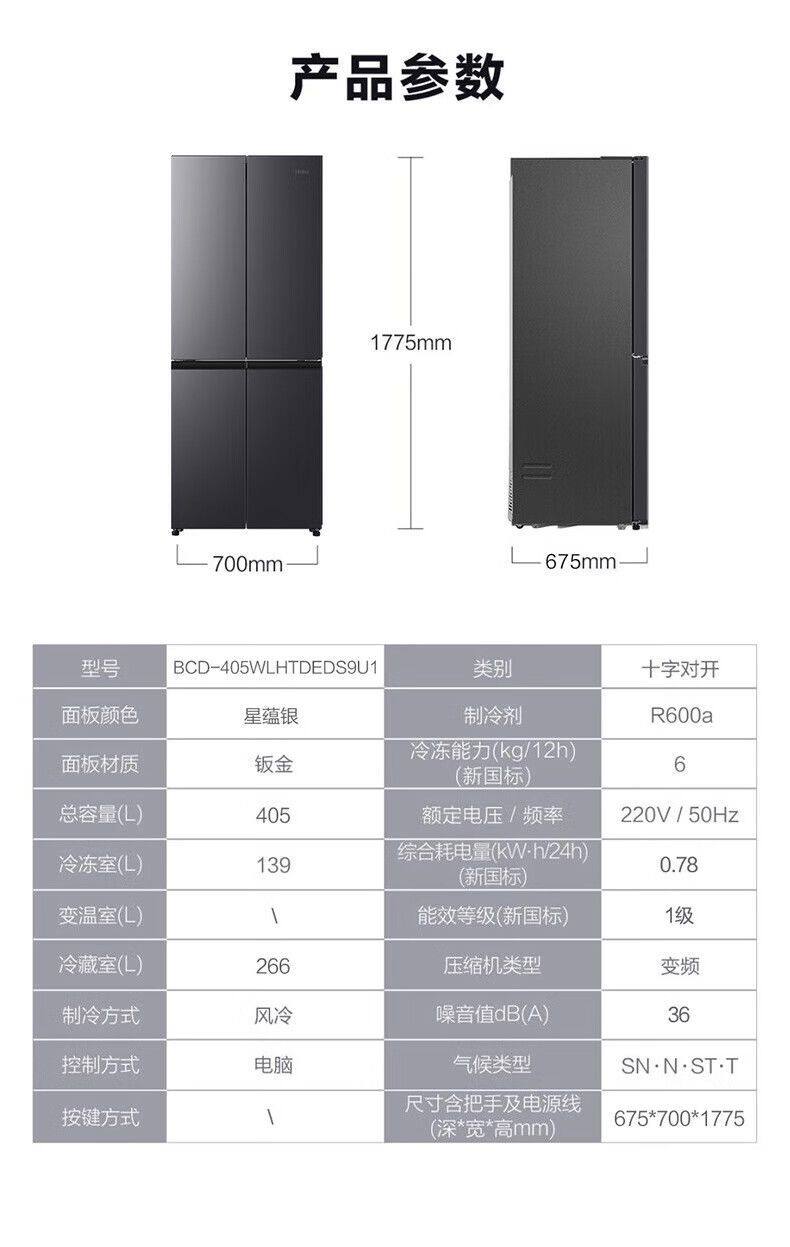 Haier Refrigerator Cross-Door Household First-Class Dual-Inverter Frost-Free Bcd-405Wlhtdeds9U1