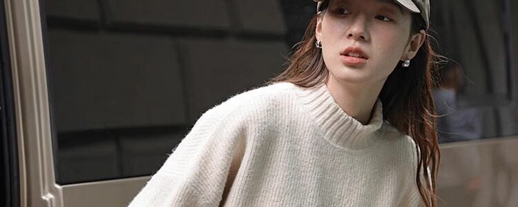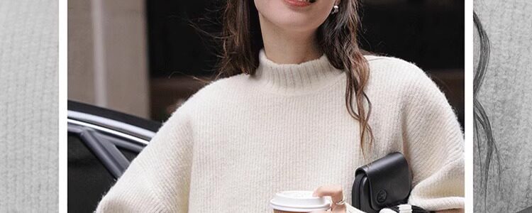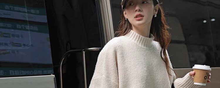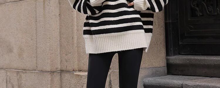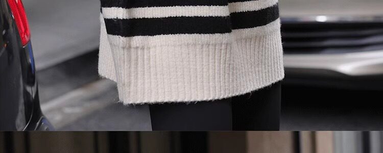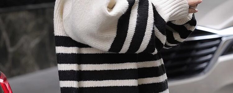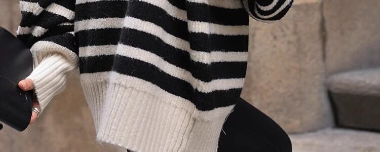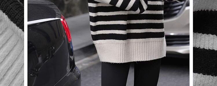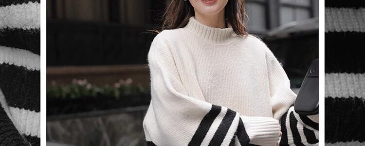 Lazy Style, High-End Feel, Half-High Collar, Mid-Length Striped Soft Sweater for Women, Autumn and Winter, Covers the Buttocks, Knitted Top