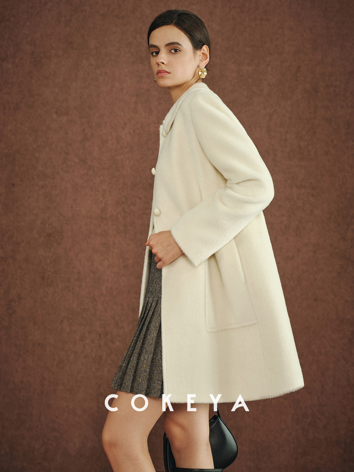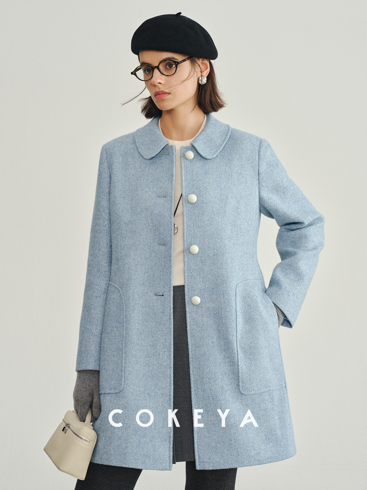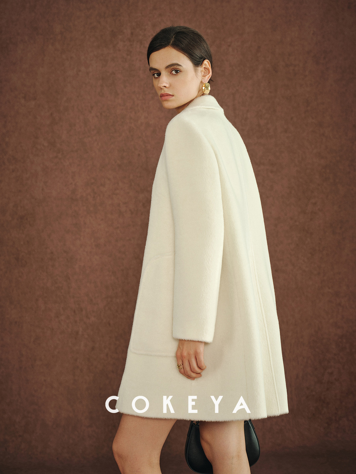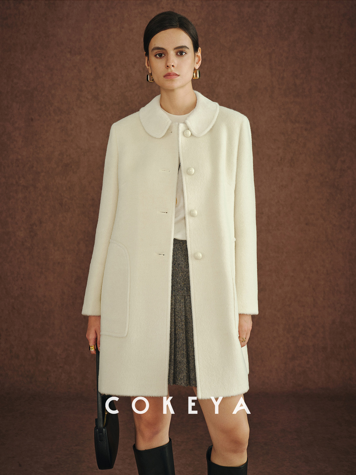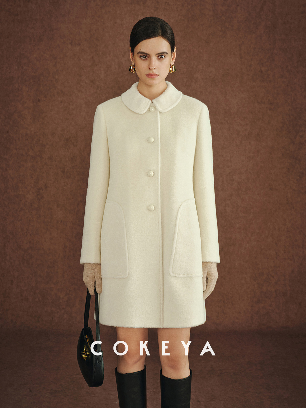 Cokeya/Ce4W+~ Llama Wool Round Neck Thick Straight Mid-Length Lapel Coat Woolen Jacket for Women Spring