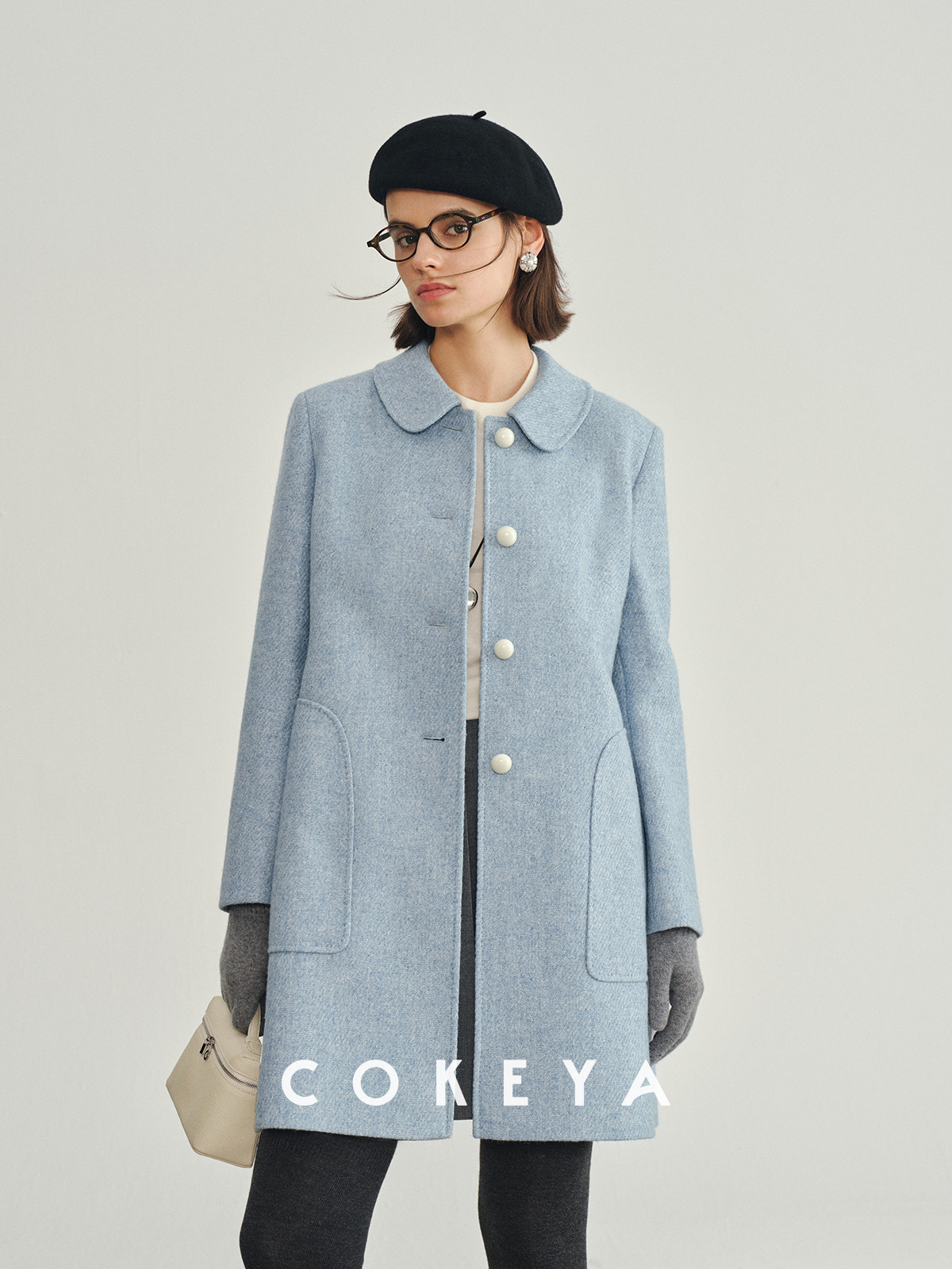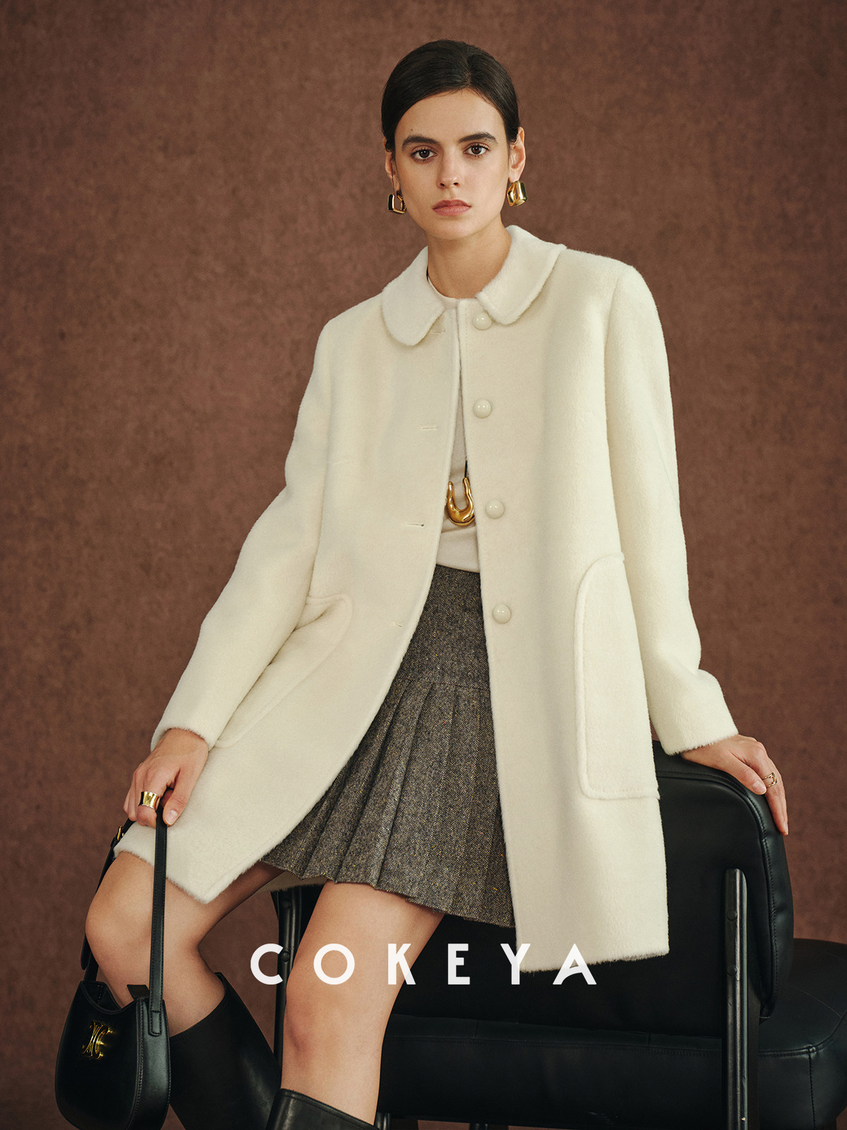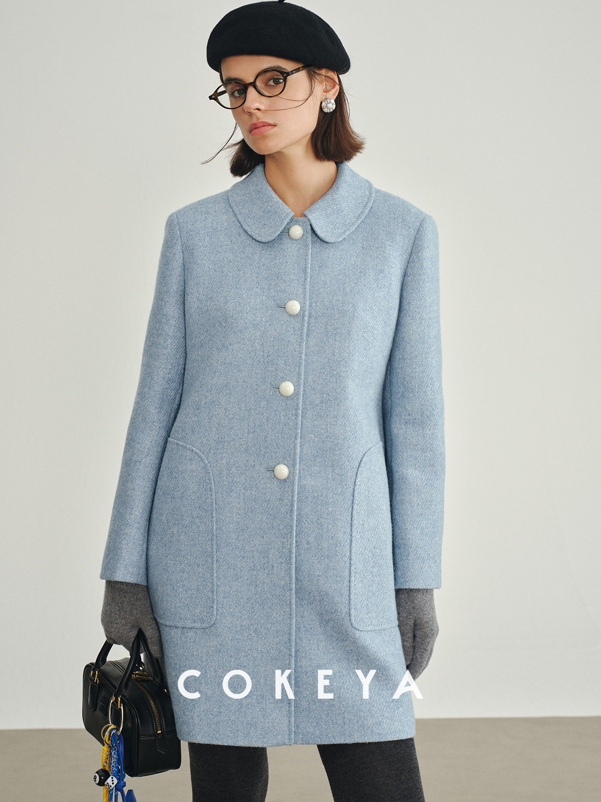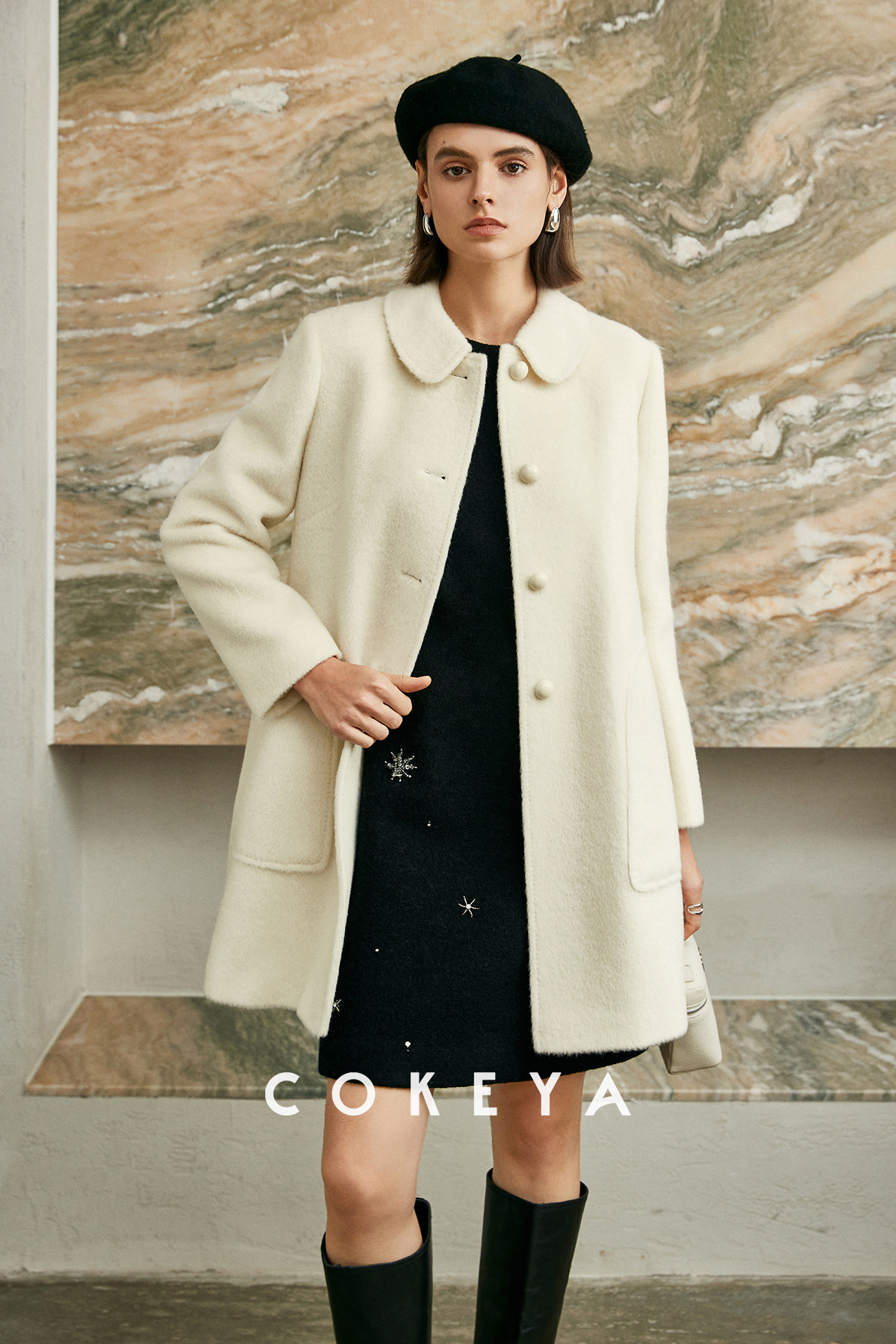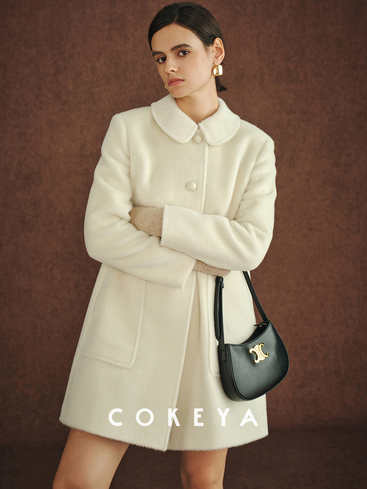 Cokeya/Ce4W+~ Llama Wool Round Neck Thick Straight Mid-Length Lapel Coat Woolen Jacket for Women Spring