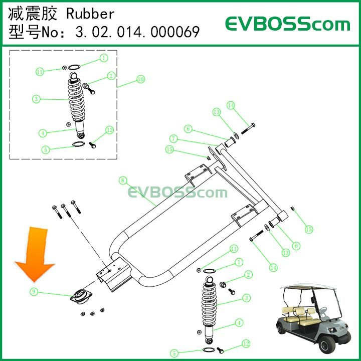 3.02.014.000069 Shock-Absorbing Rubber/Green Passage Lvtong Electric Vehicle Curved Tube Bushing Yamaha
