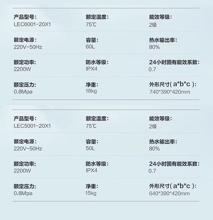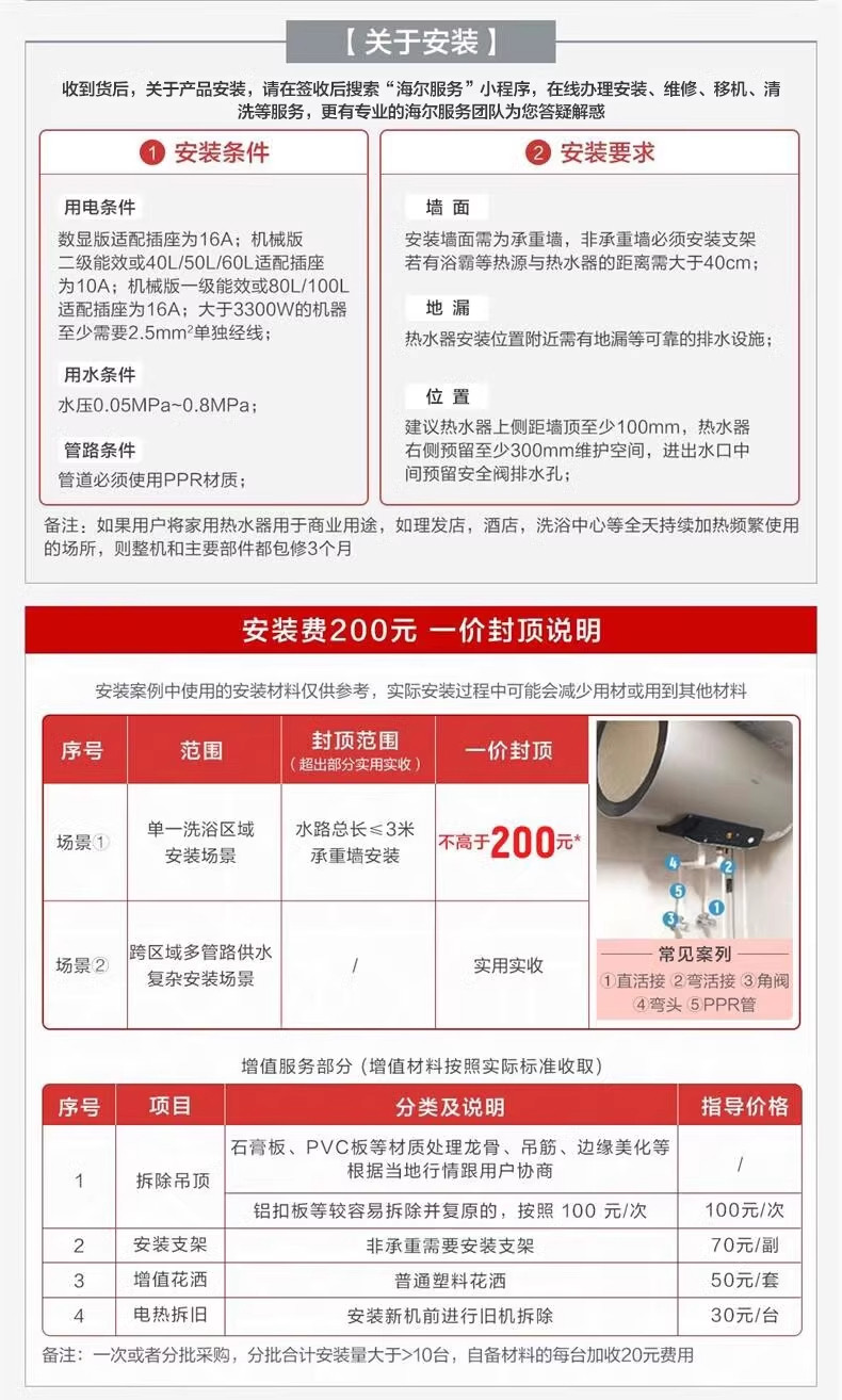 Haier Leader/Lec6001-20X1 Water Storage Anti-Electric Wall-Mounted Small Instant Heating 60-Liter Electric Water Heater