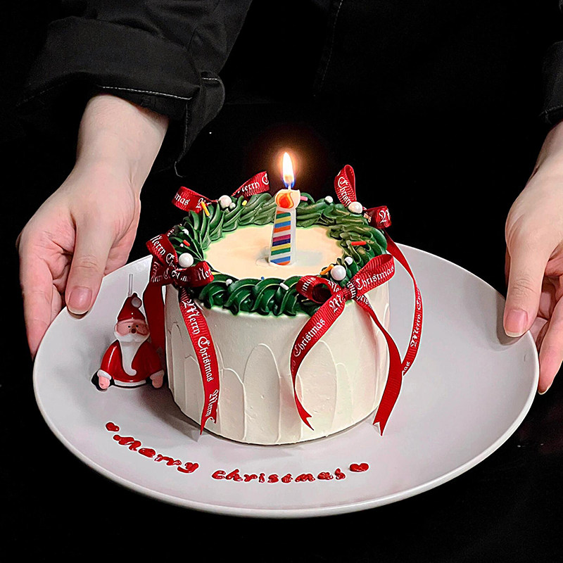 2025 Christmas Ballet-Style Cake Decoration with Red Bow Ribbon, Trendy Baking Christmas Topper