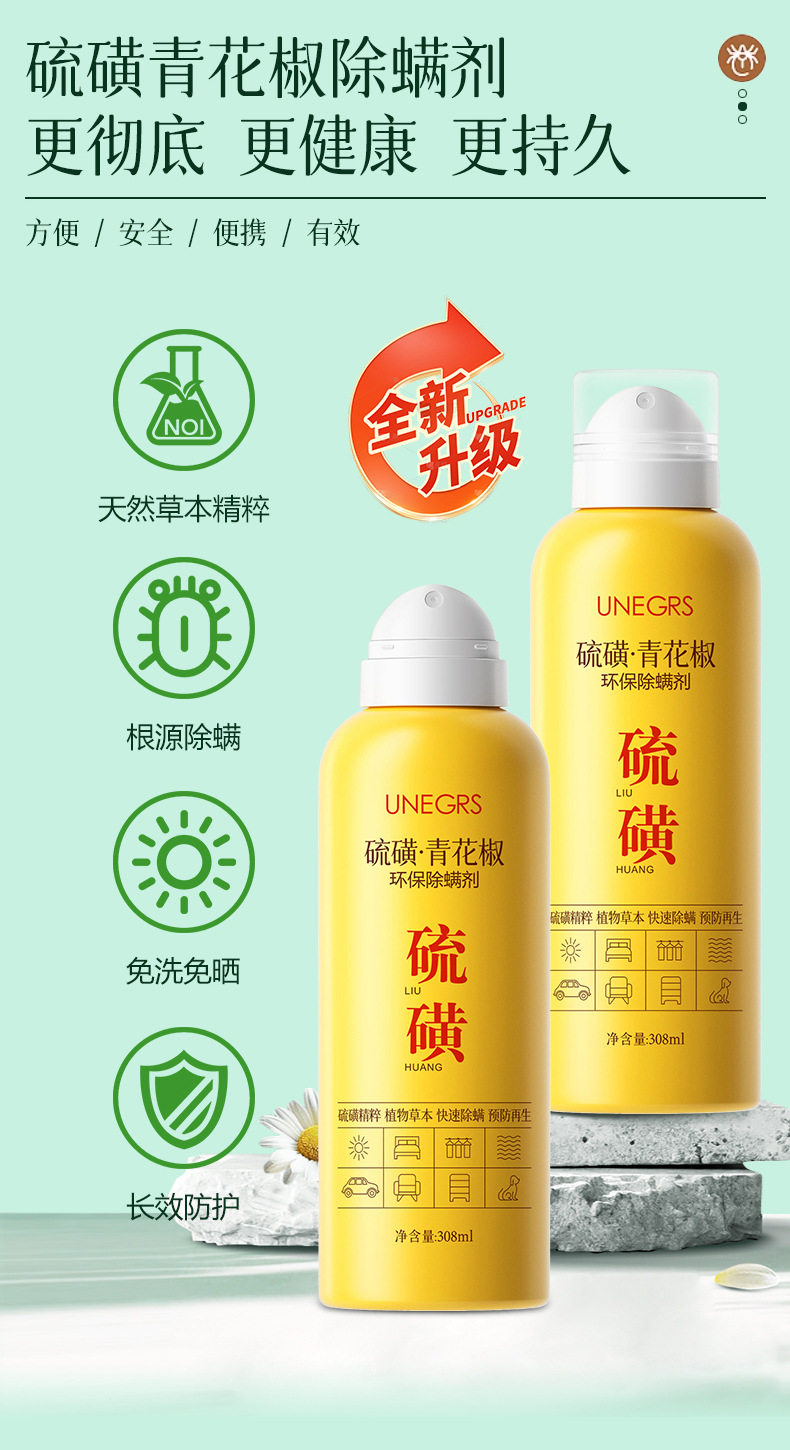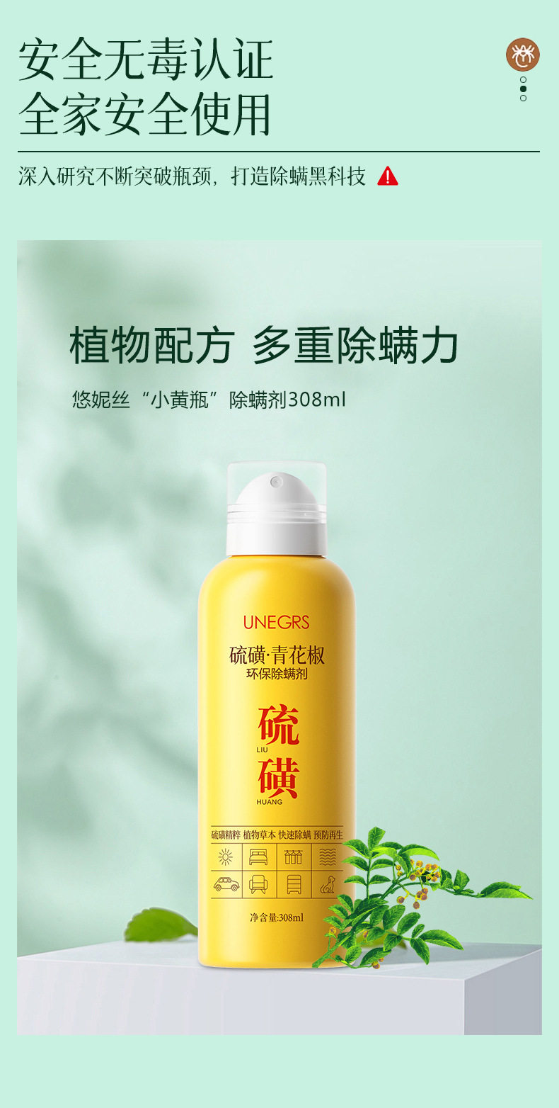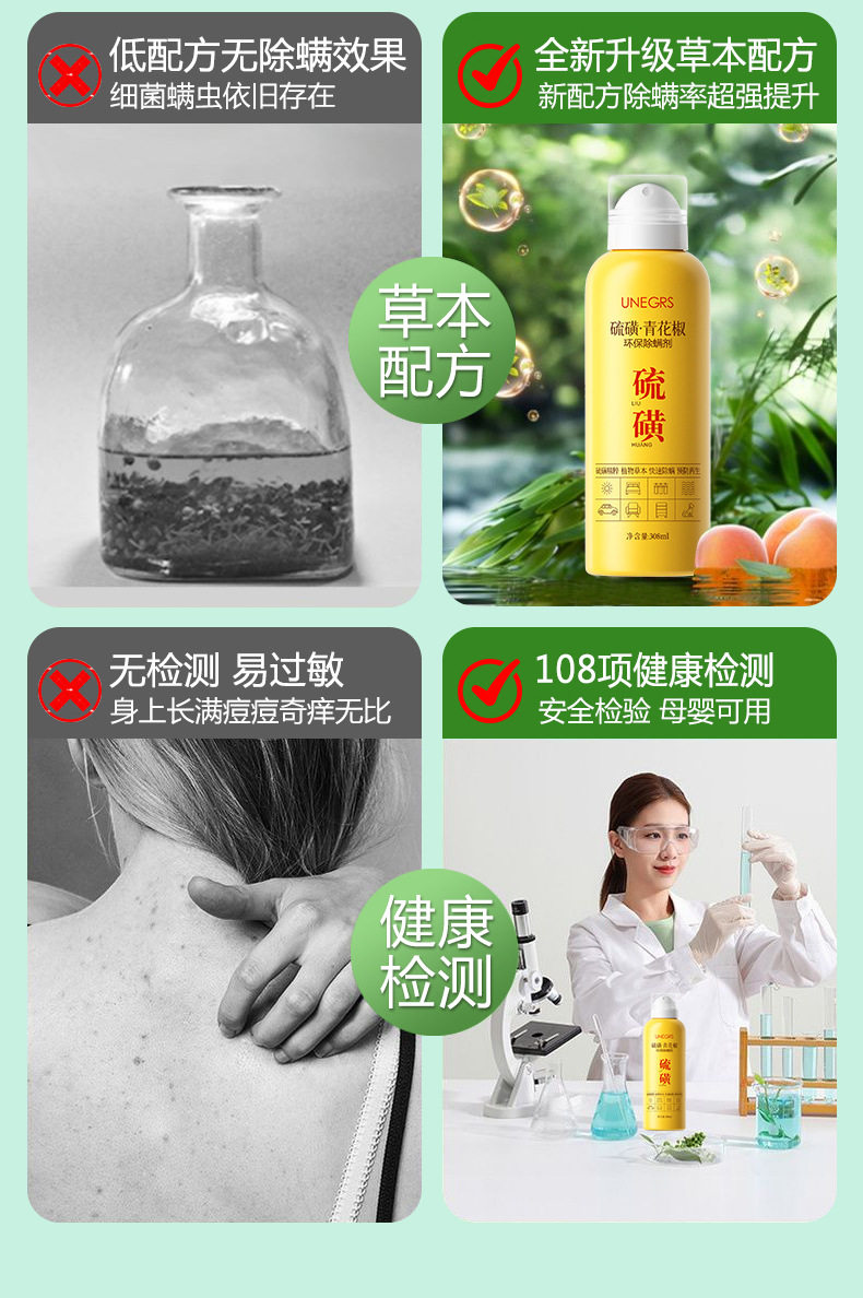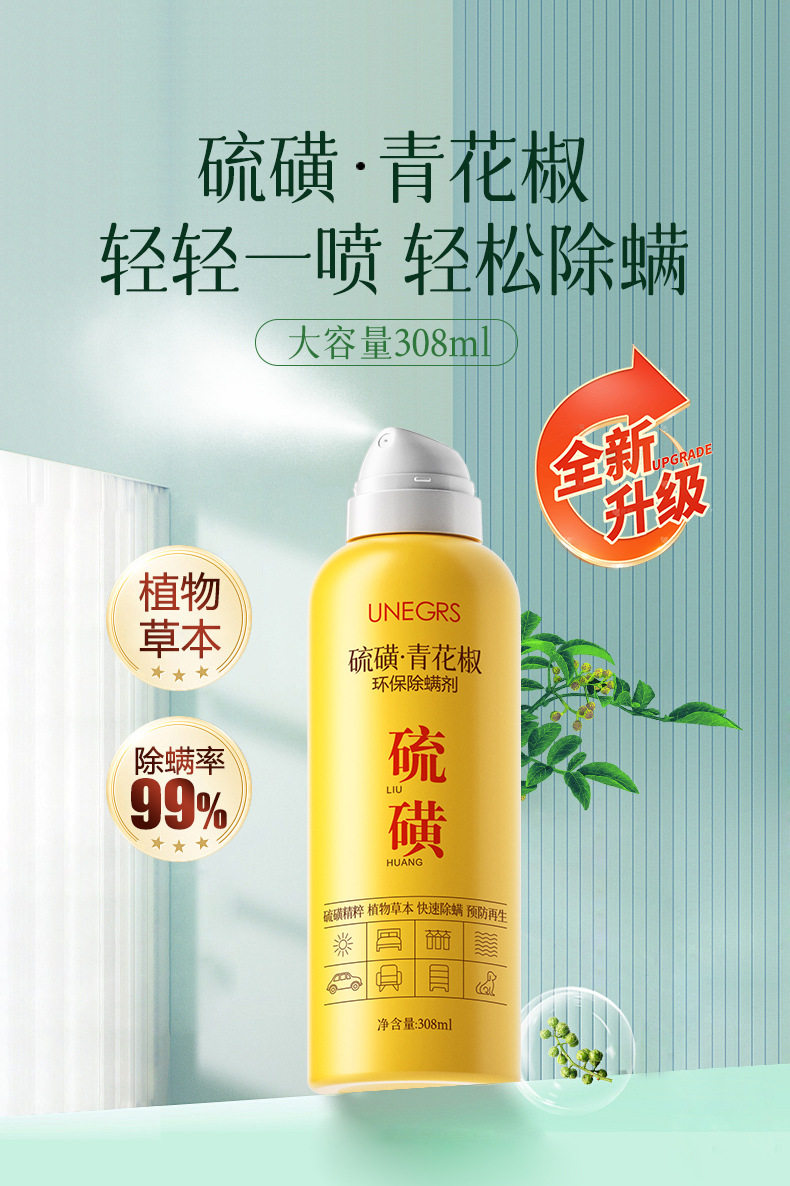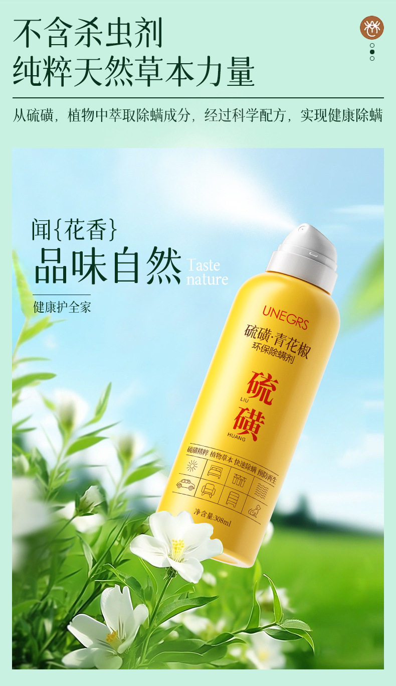 Sulfur mite removal spray blue pepper acaria mites on the bed without washing household sterilization and antibacterial mite removal artifacts available for mother and baby