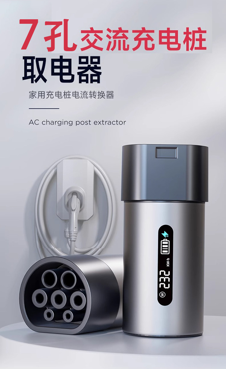 New Energy Charging Station Adapter 220V Ac 7-Hole Slow Charging Converter Plug for Rvs, Electric Vehicles, and Electric Motorcycles