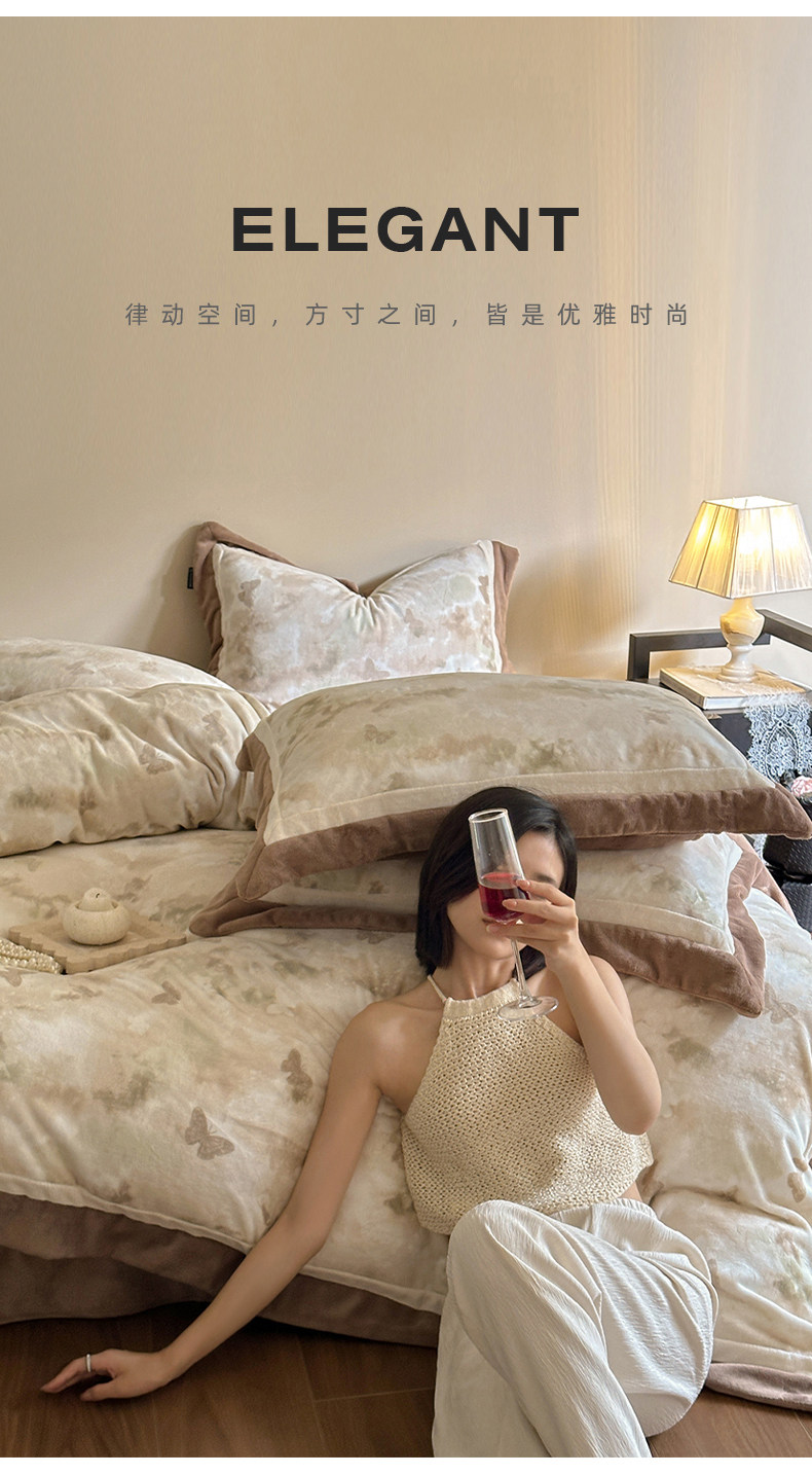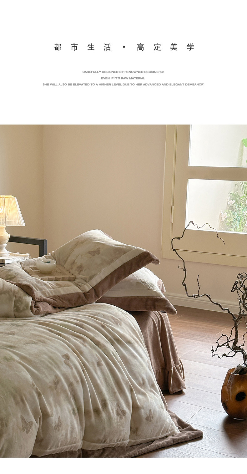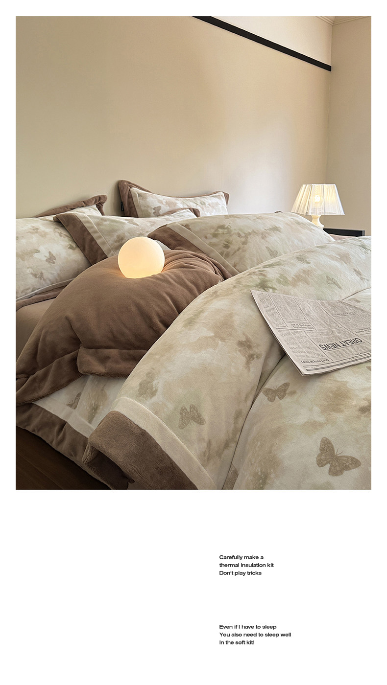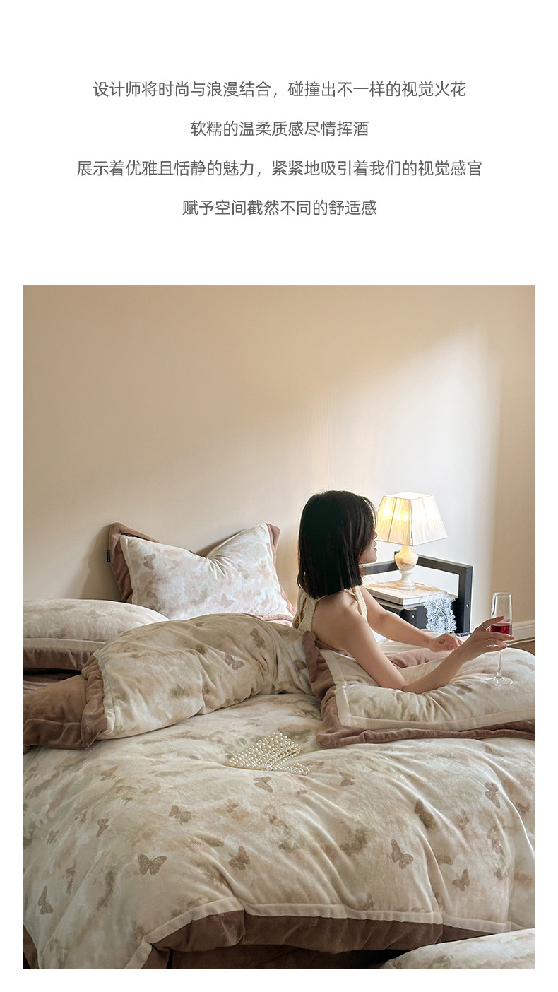 Yalu winter thickened mousse velvet four-piece set 2024 new plus velvet milk velvet quilt cover bed sheets three-piece bedding set