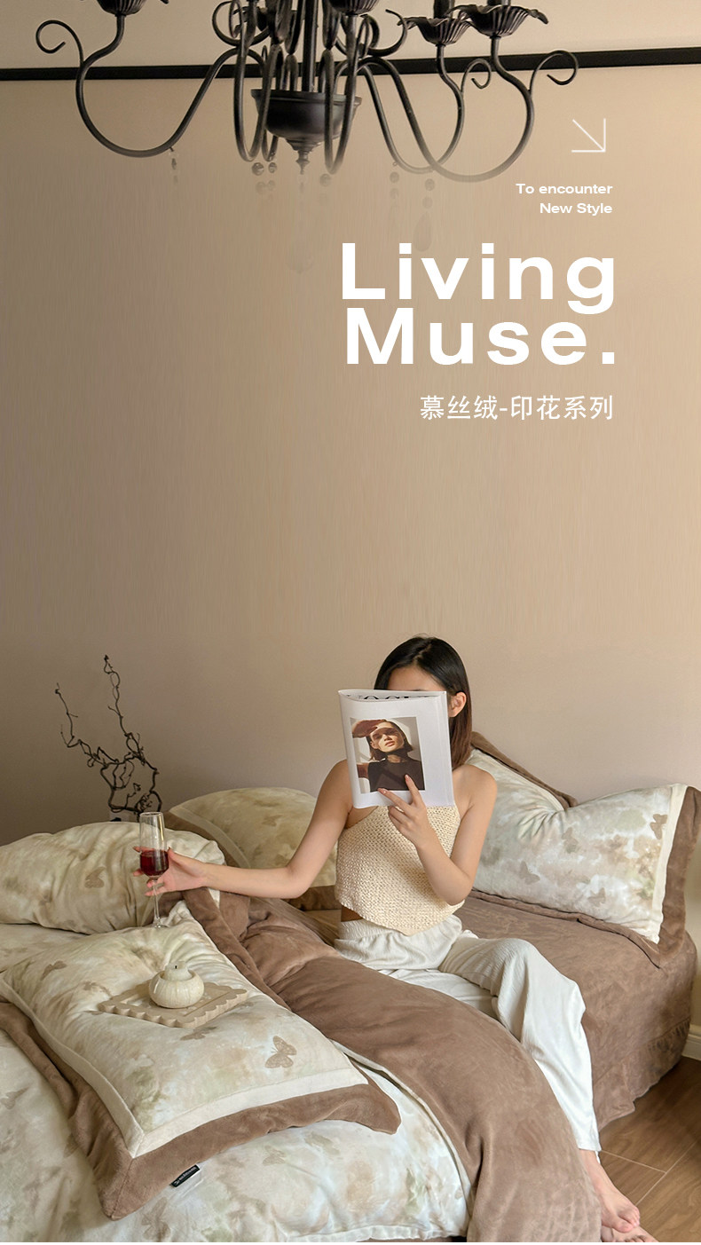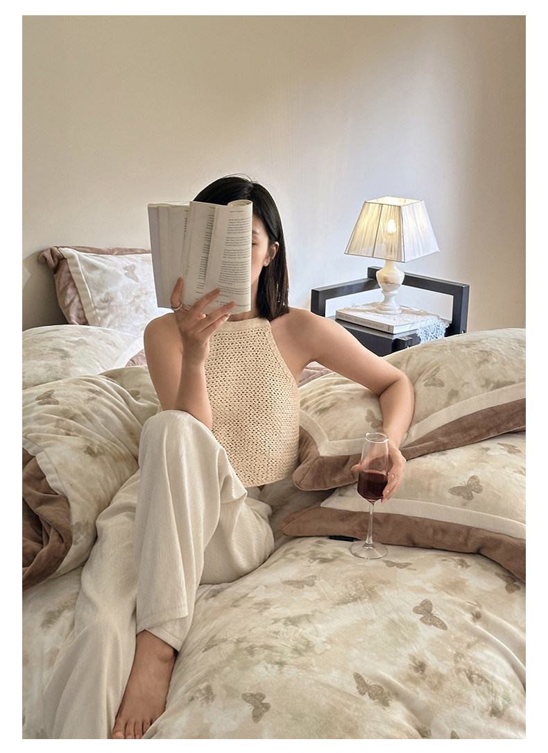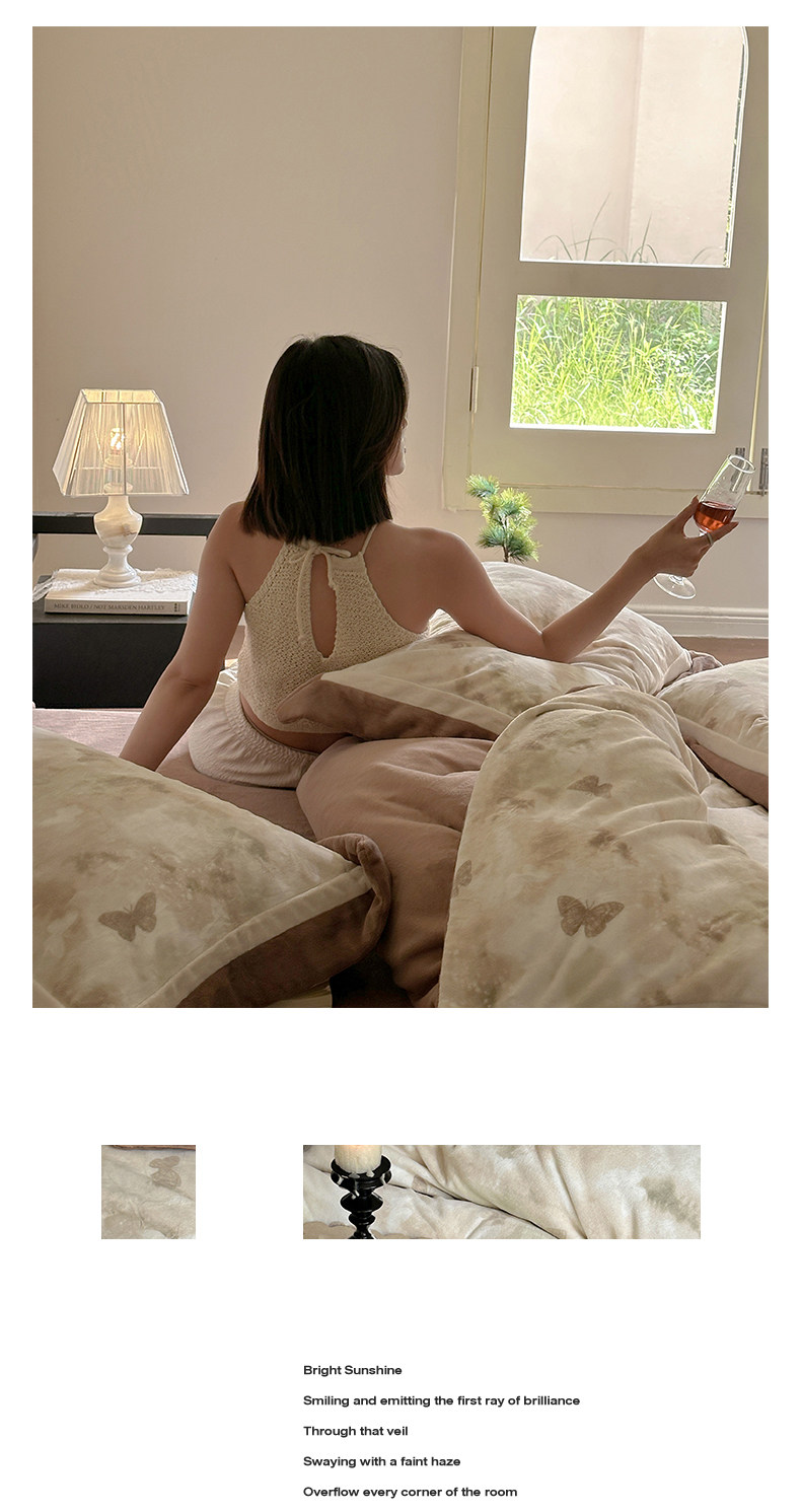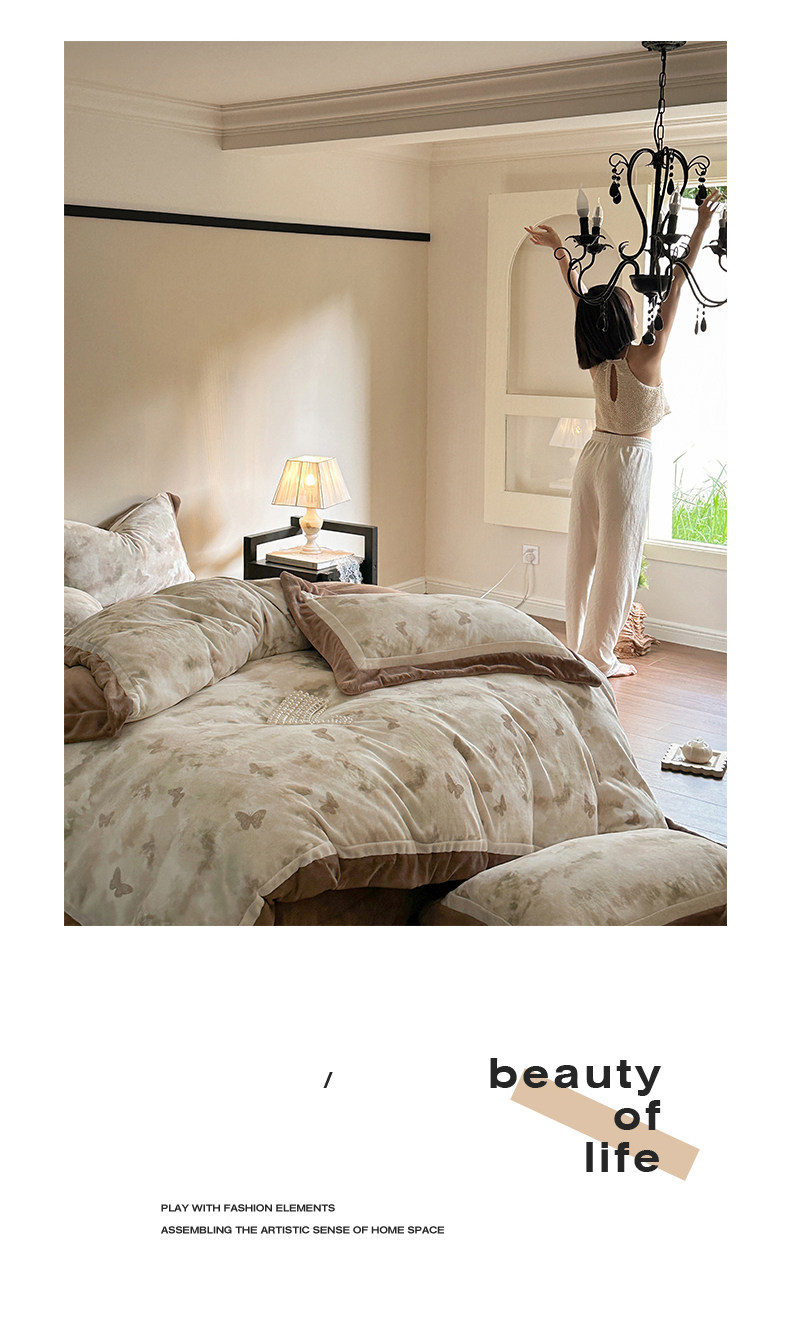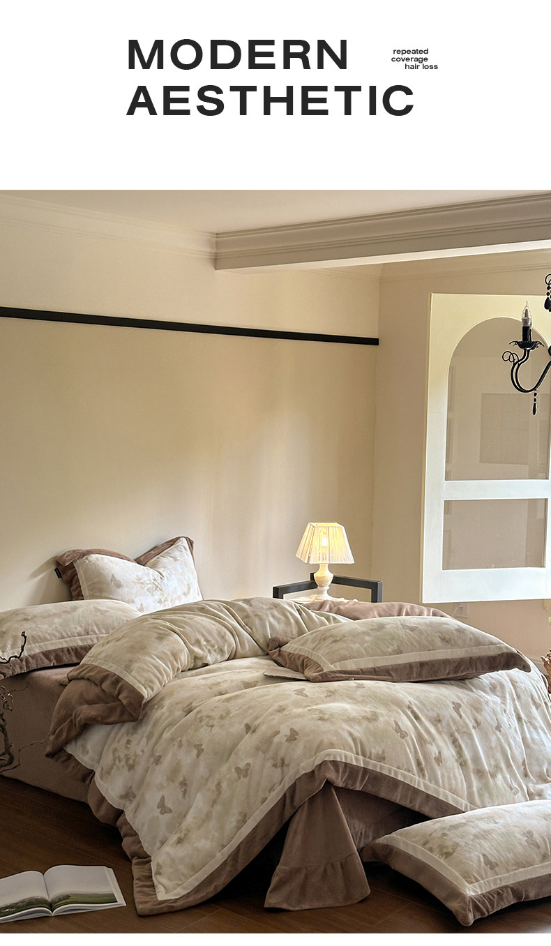 Yalu winter thickened mousse velvet four-piece set 2024 new plus velvet milk velvet quilt cover bed sheets three-piece bedding set