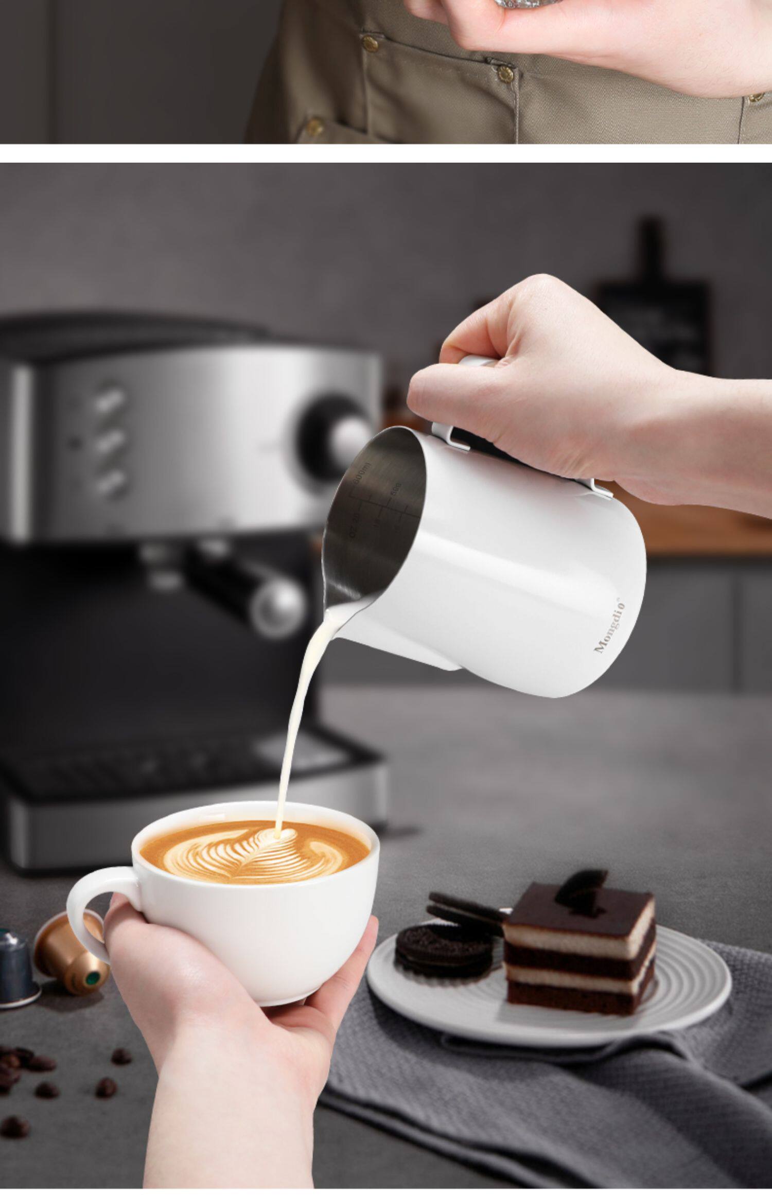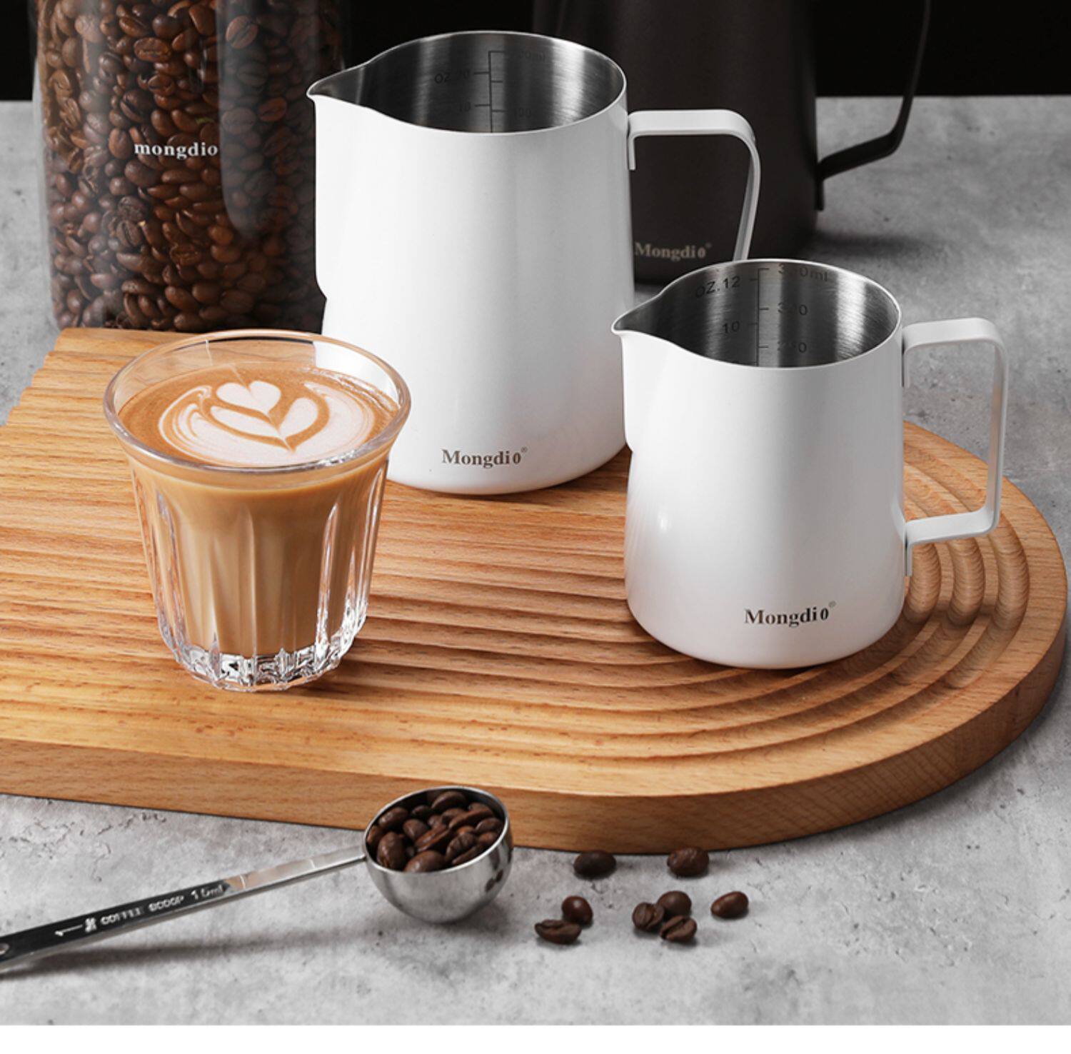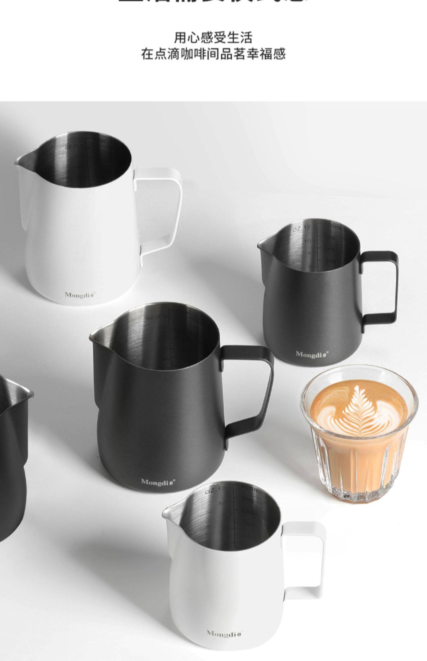 Mongdio Latte Art Pitcher, Coffee Latte Art Cup, Milk Frothing Cup, Stainless Steel Pointed Spout Large Belly Cup, Coffee Latte Art Tool