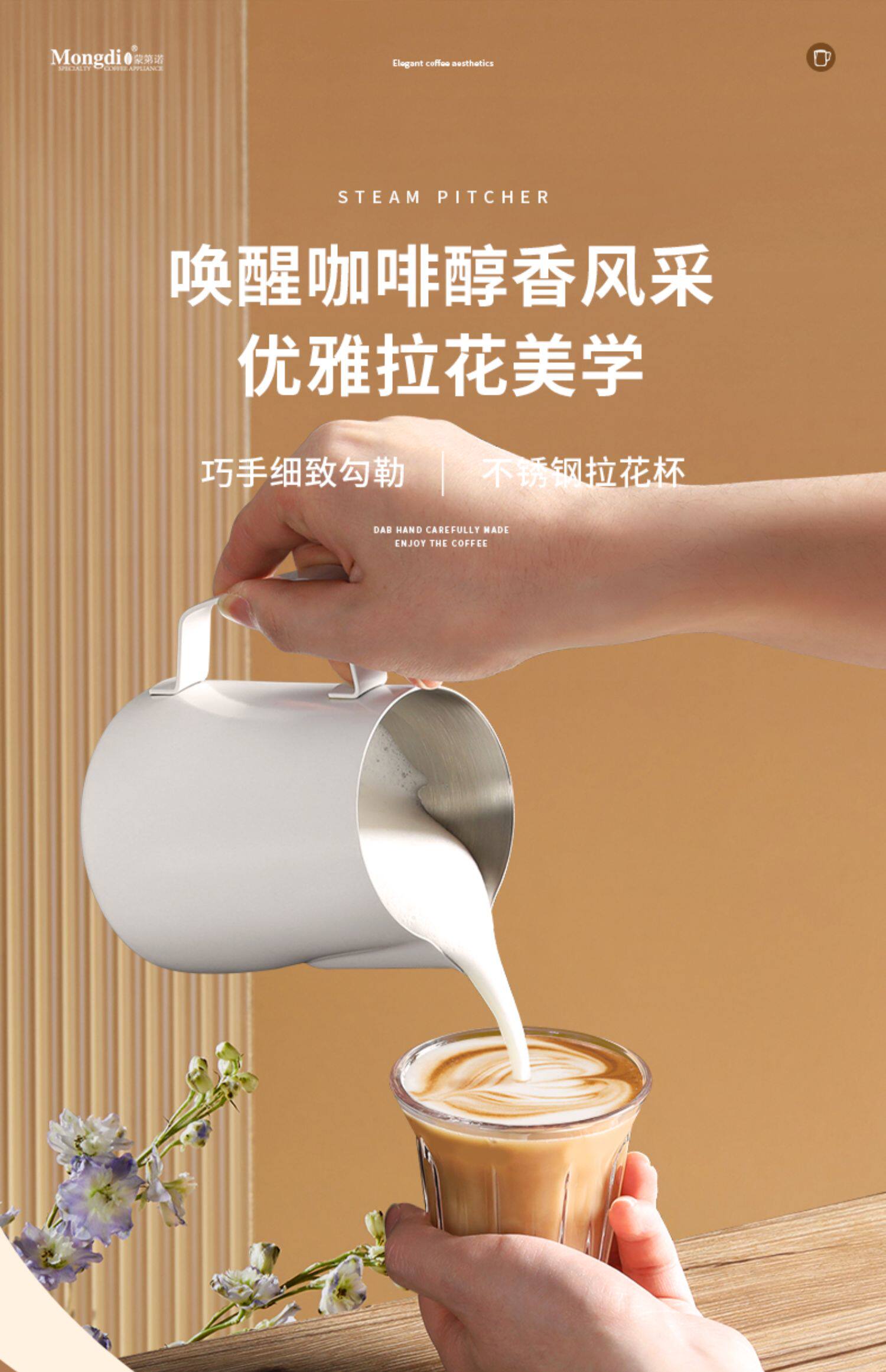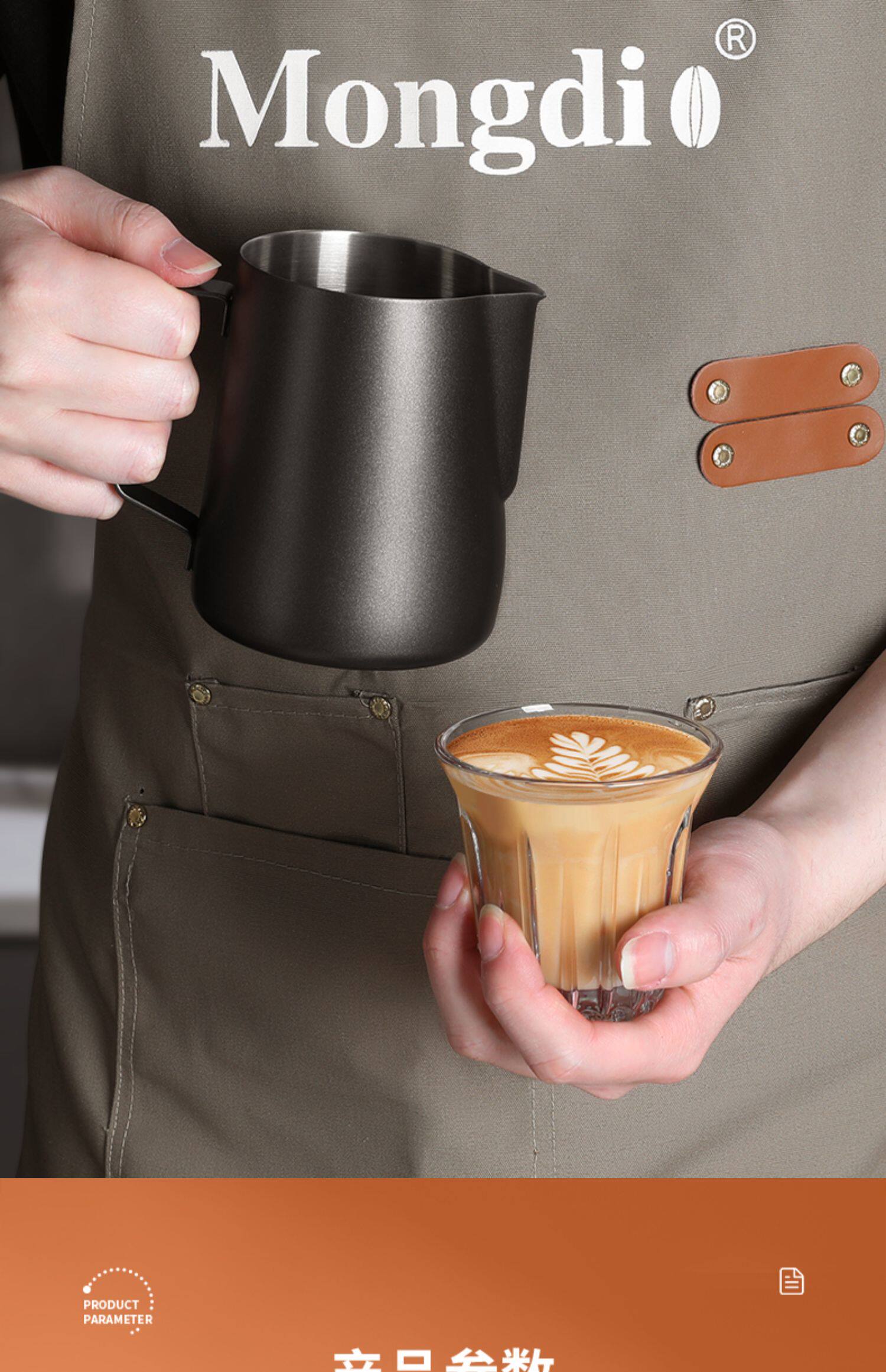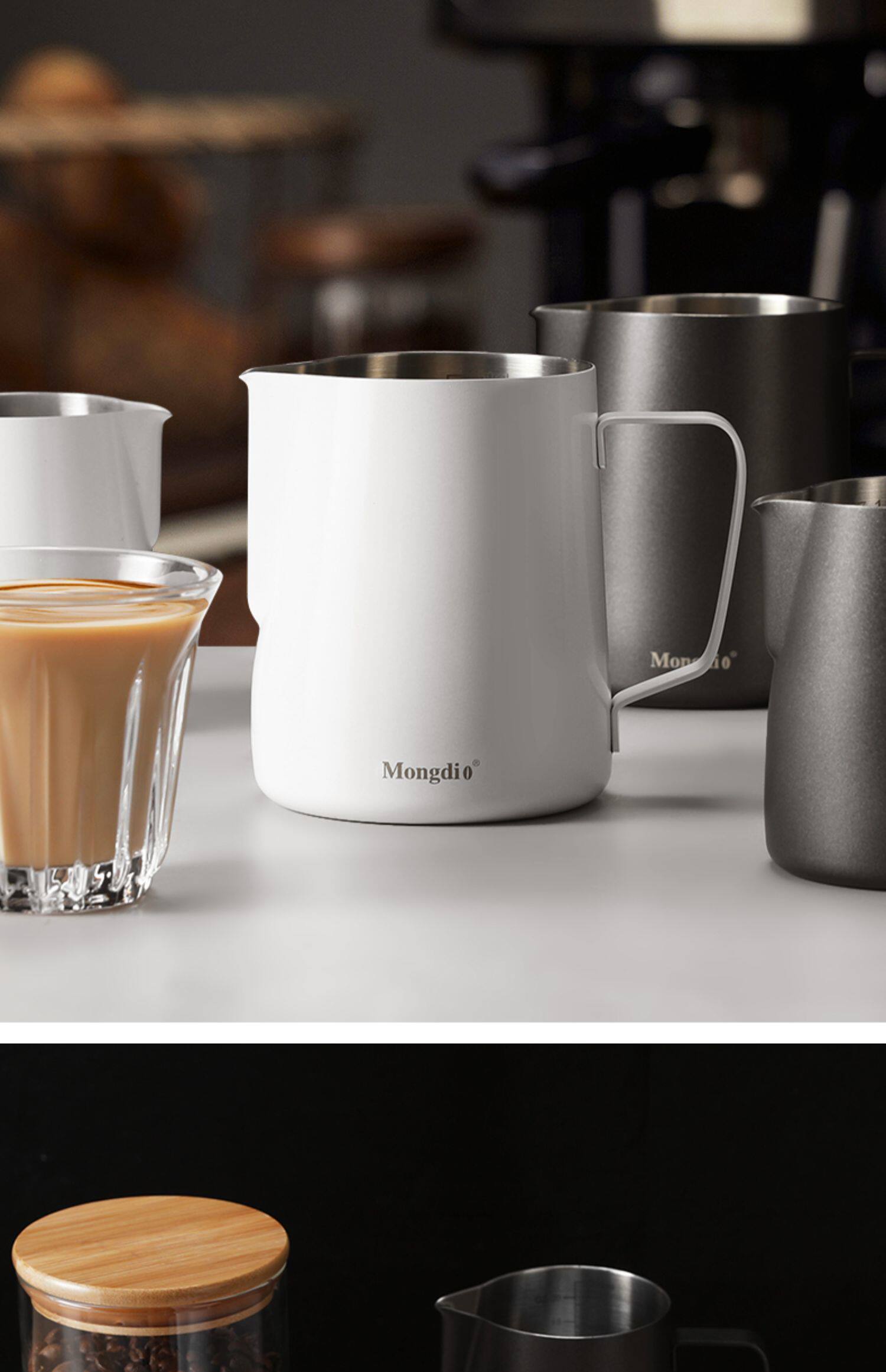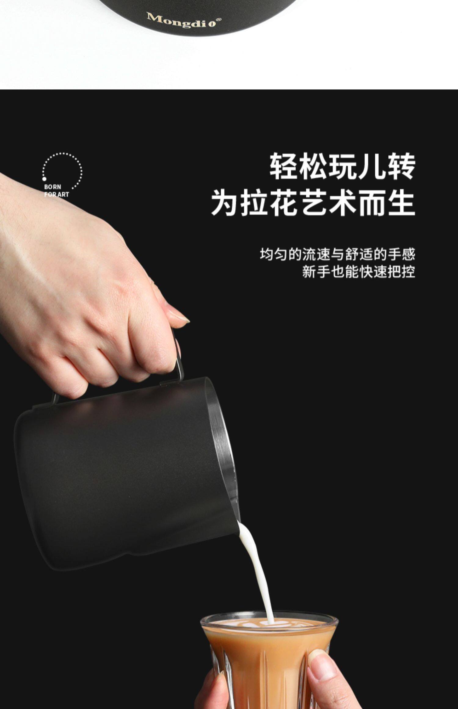 Mongdio Latte Art Pitcher, Coffee Latte Art Cup, Milk Frothing Cup, Stainless Steel Pointed Spout Large Belly Cup, Coffee Latte Art Tool