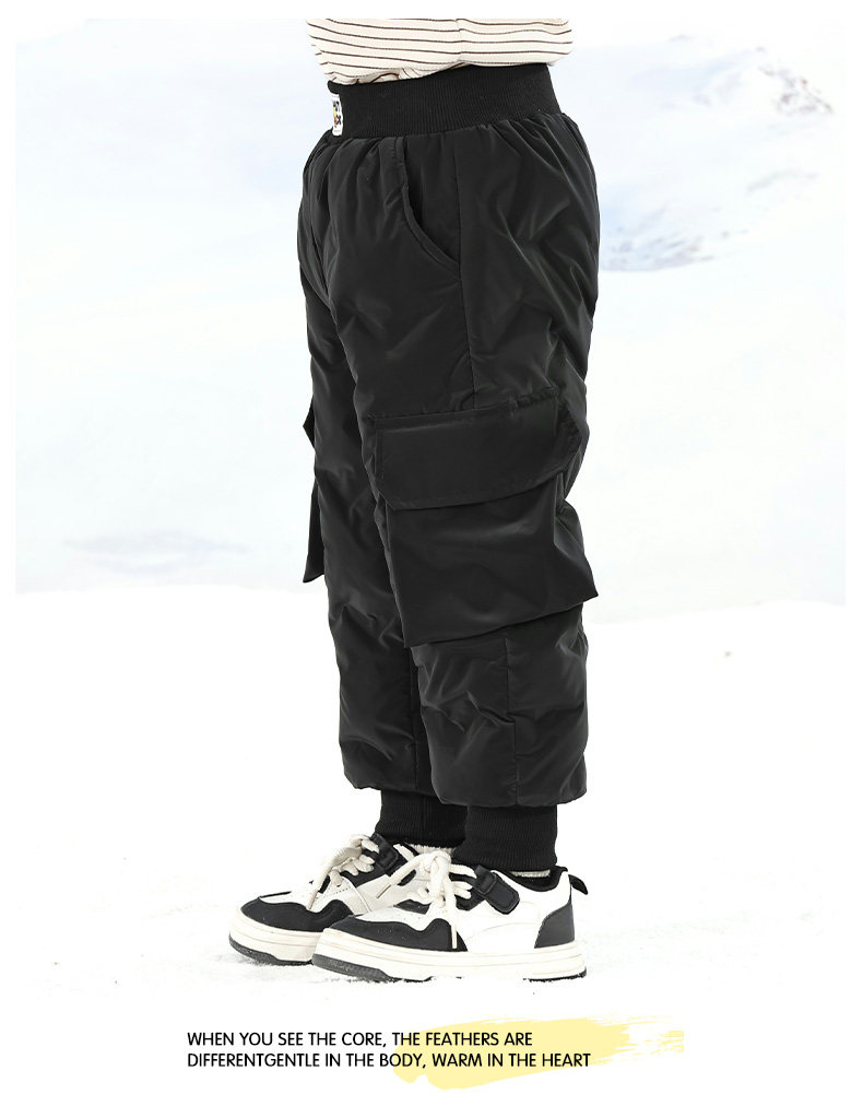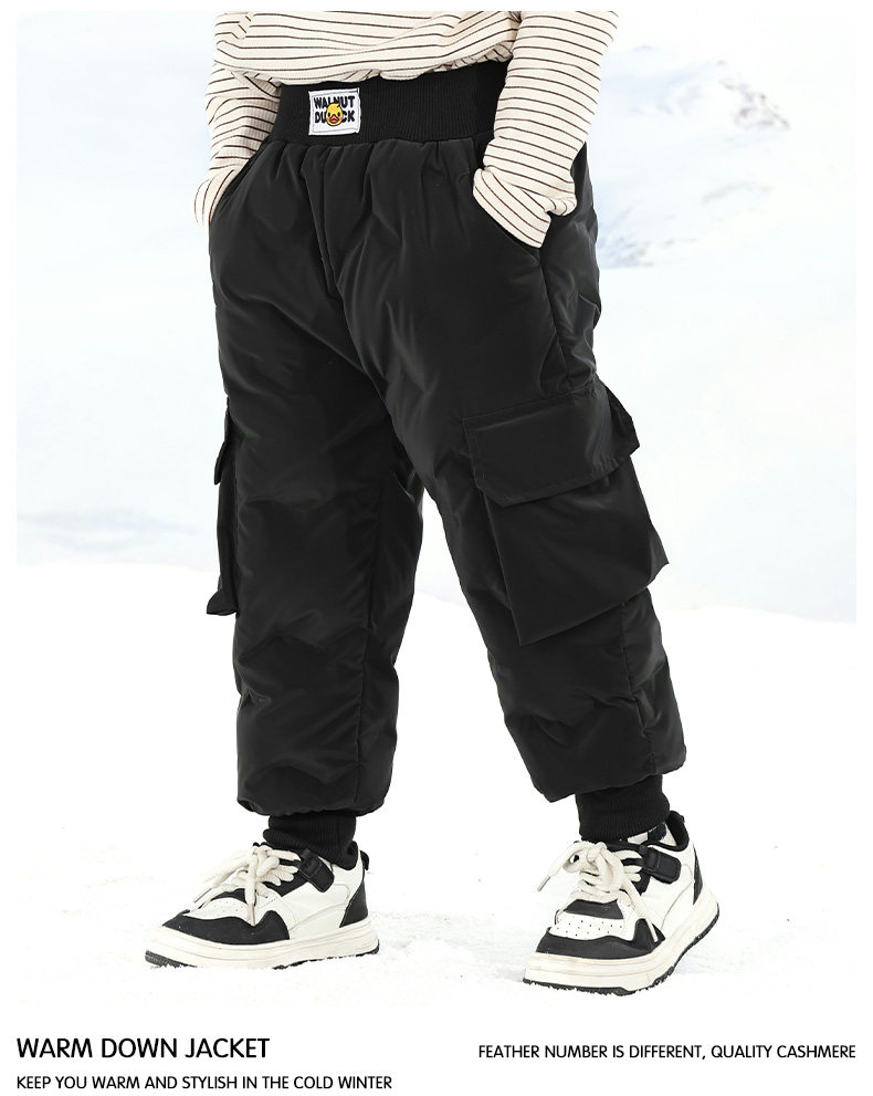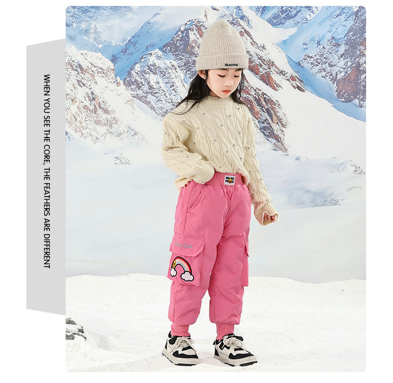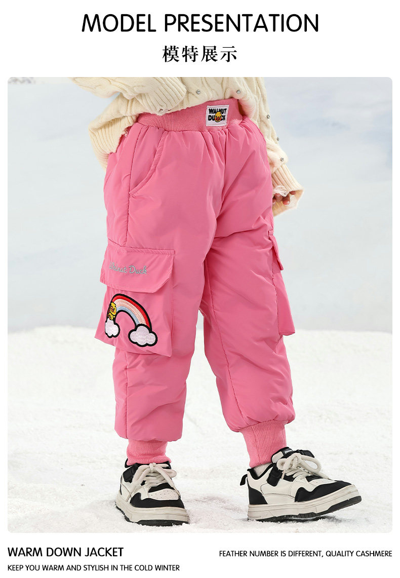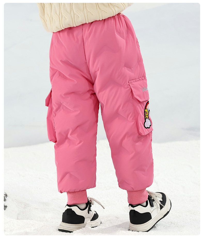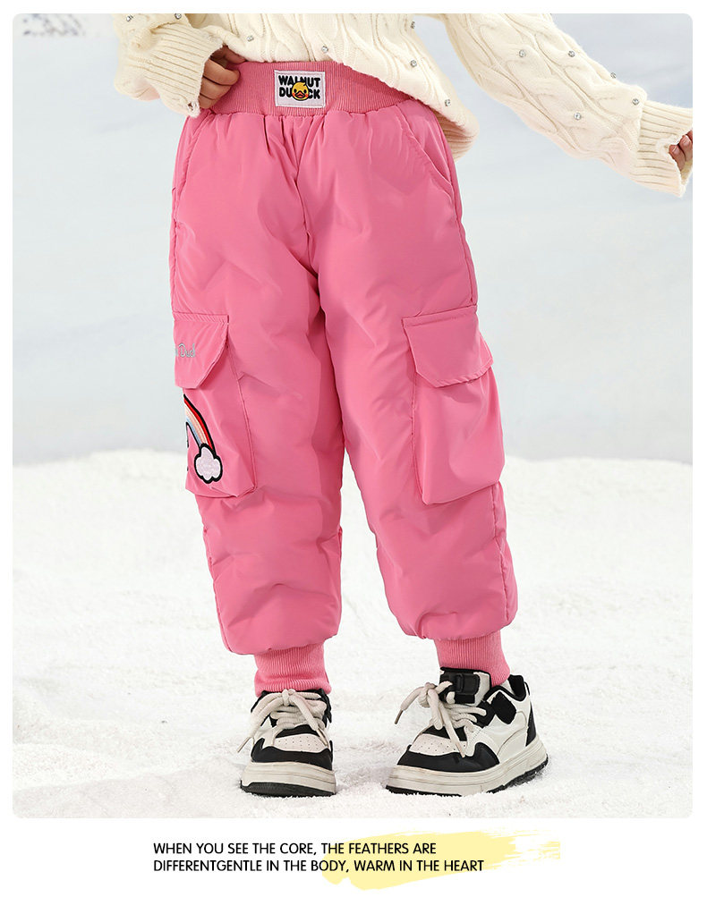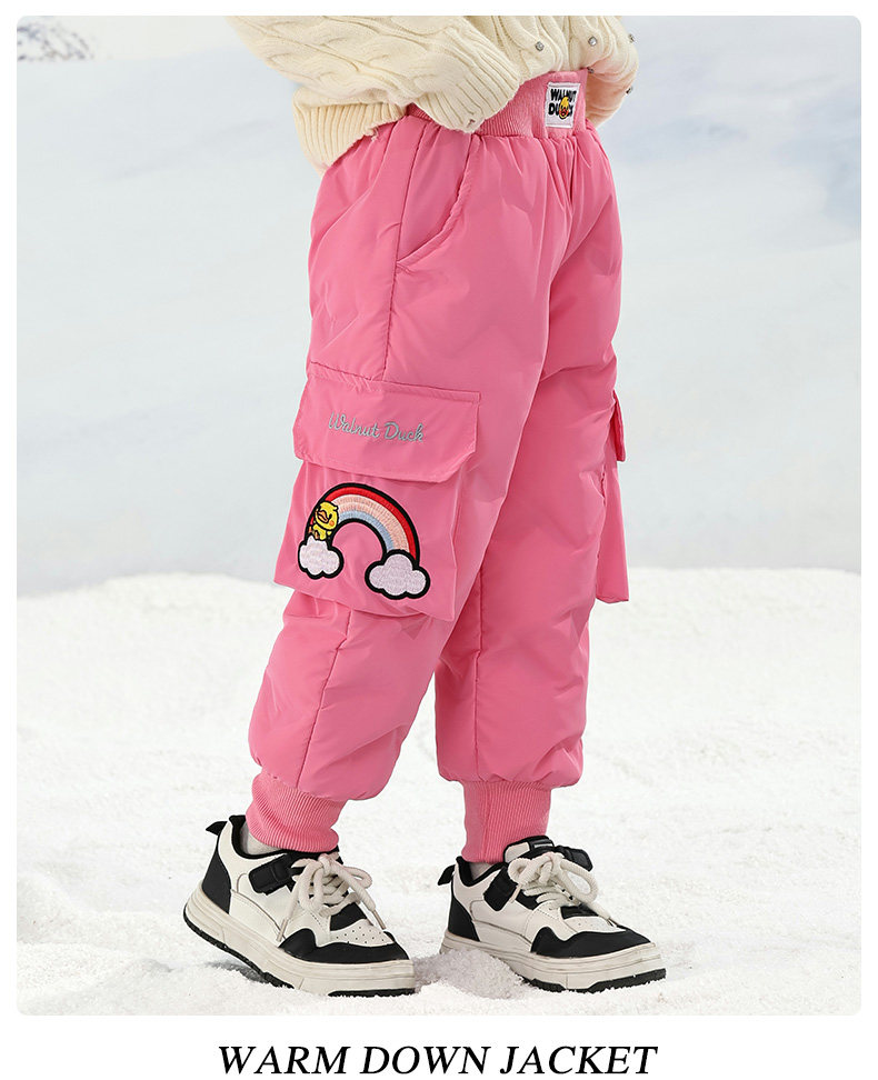 Little Yellow Duck Girls' Thickened down Pants for Outdoor Wear, Winter 2025 New Model, Medium and Large Children's Triple-Protection White Duck down Warm Cotton Pants