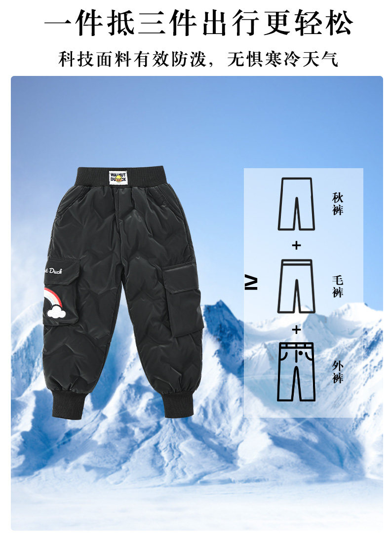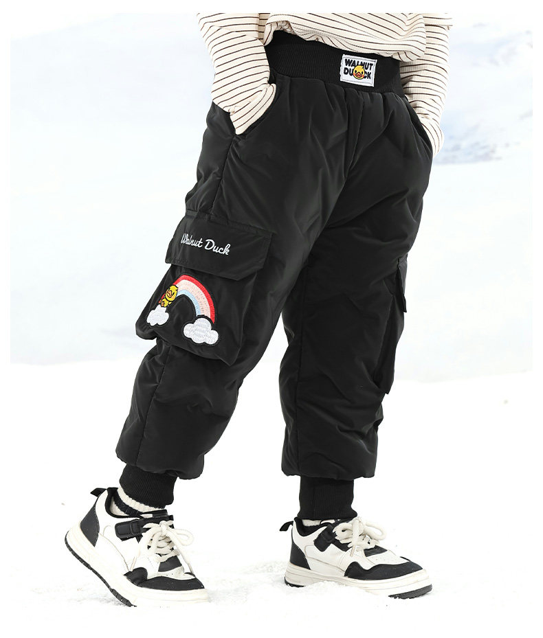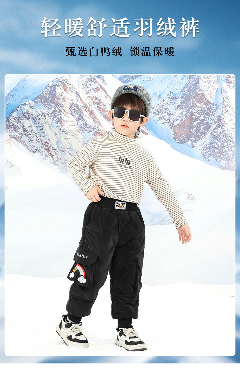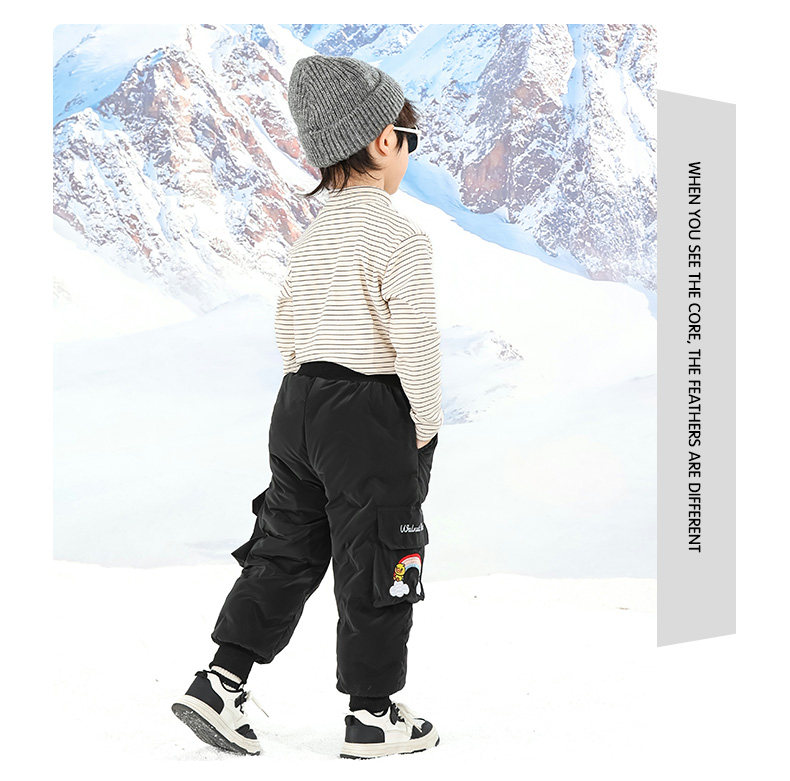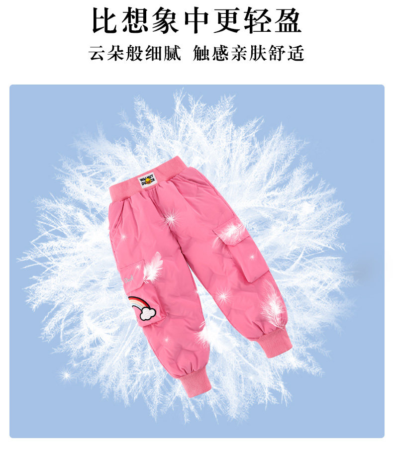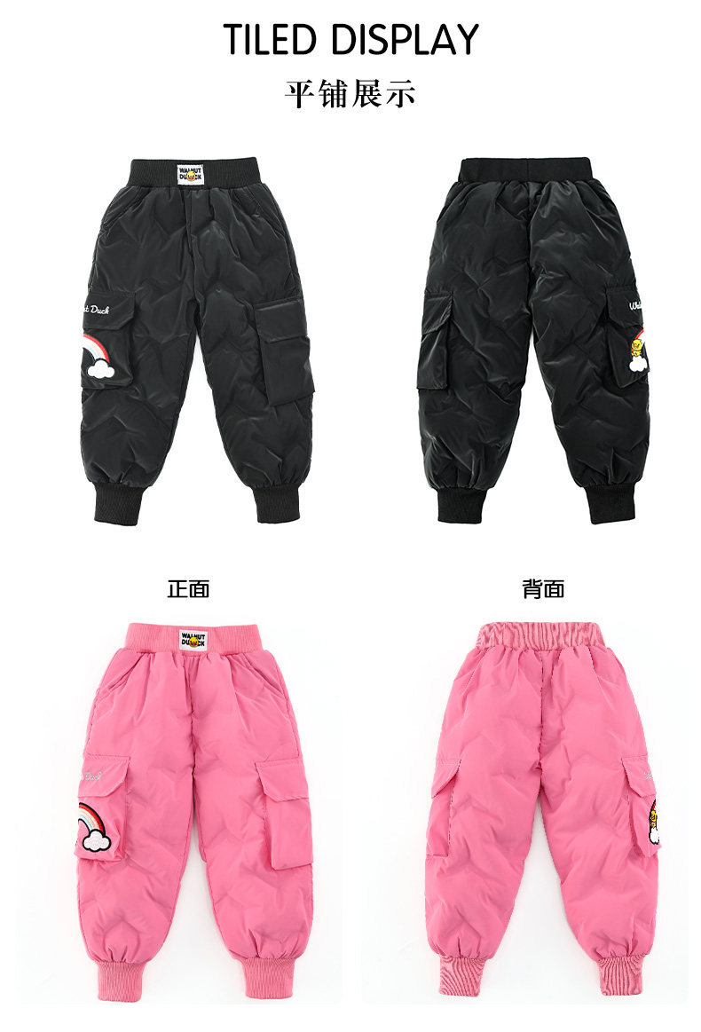 Little Yellow Duck Girls' Thickened down Pants for Outdoor Wear, Winter 2025 New Model, Medium and Large Children's Triple-Protection White Duck down Warm Cotton Pants
