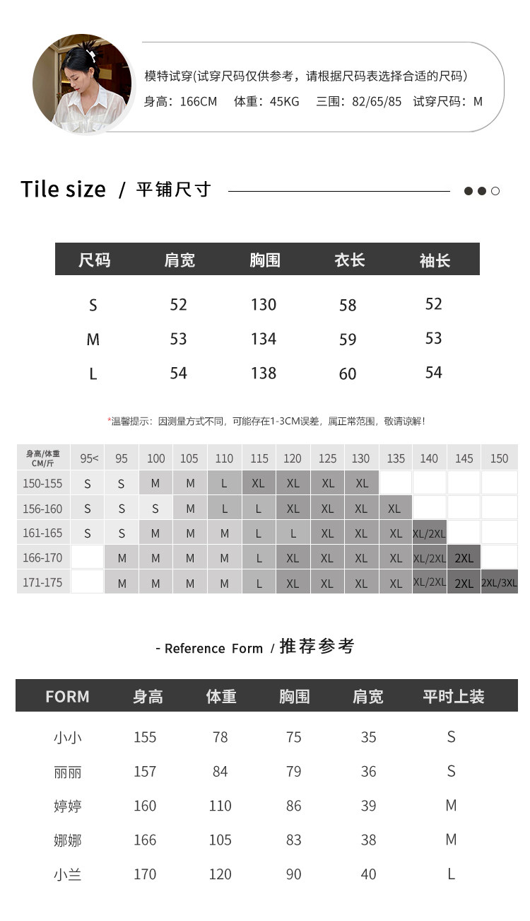 China (cm) 160-165/84-86 165-170 / 88-90 167-172 / 92-96 168-173 / 98-102 170-176 / 106-110