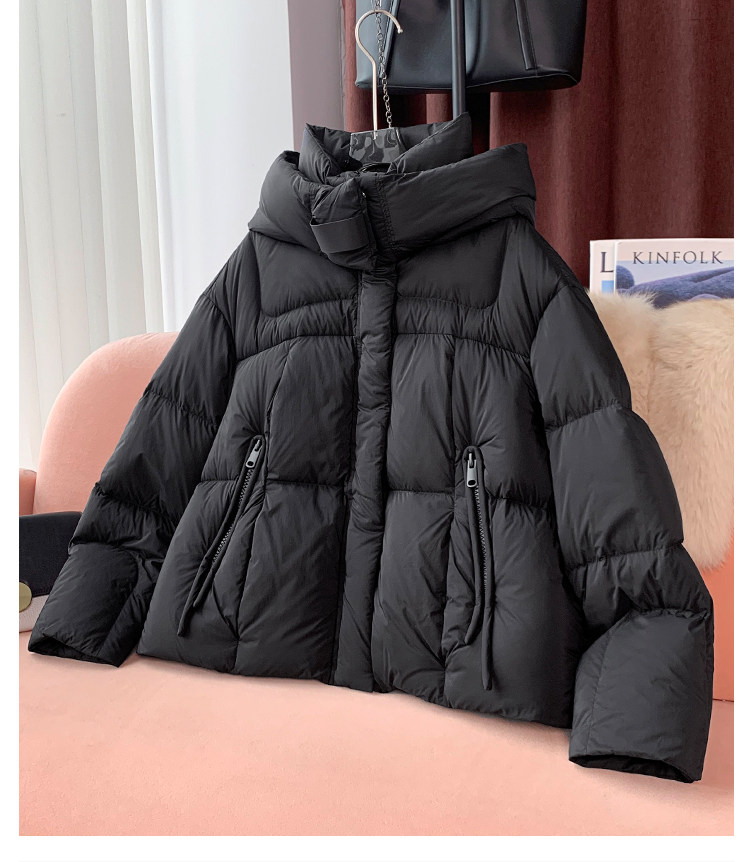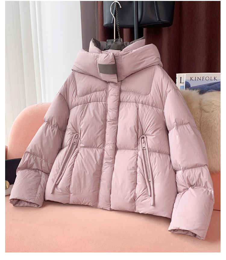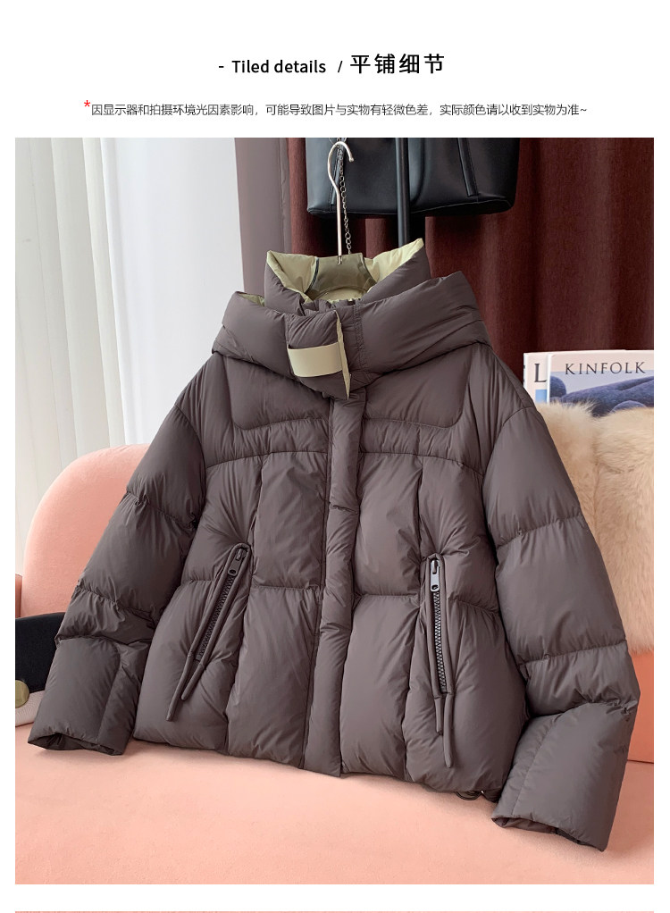 High-End Hooded Short down Jacket for Women, 2024 Winter New Style, Stand Collar, 90% White Duck Down, Casual Puffer Jacket
