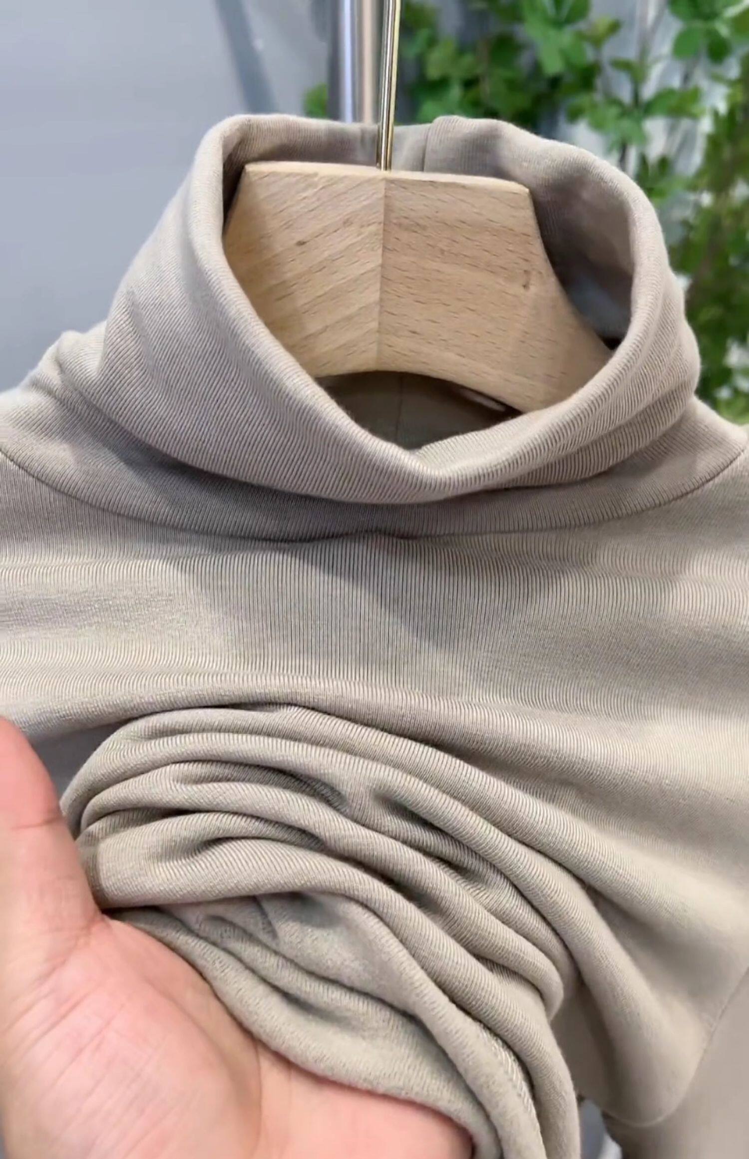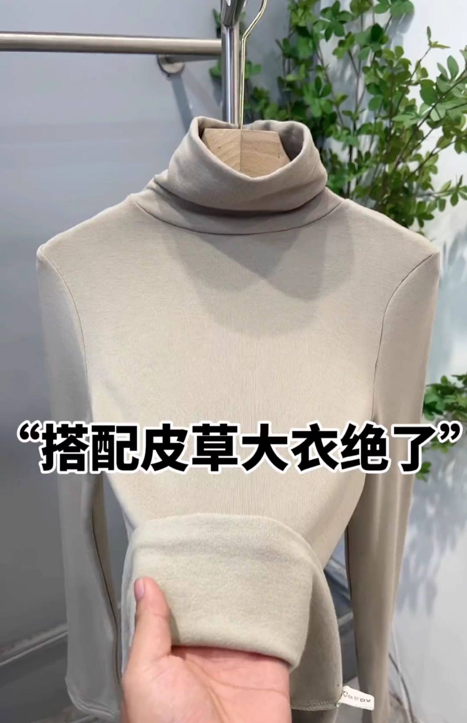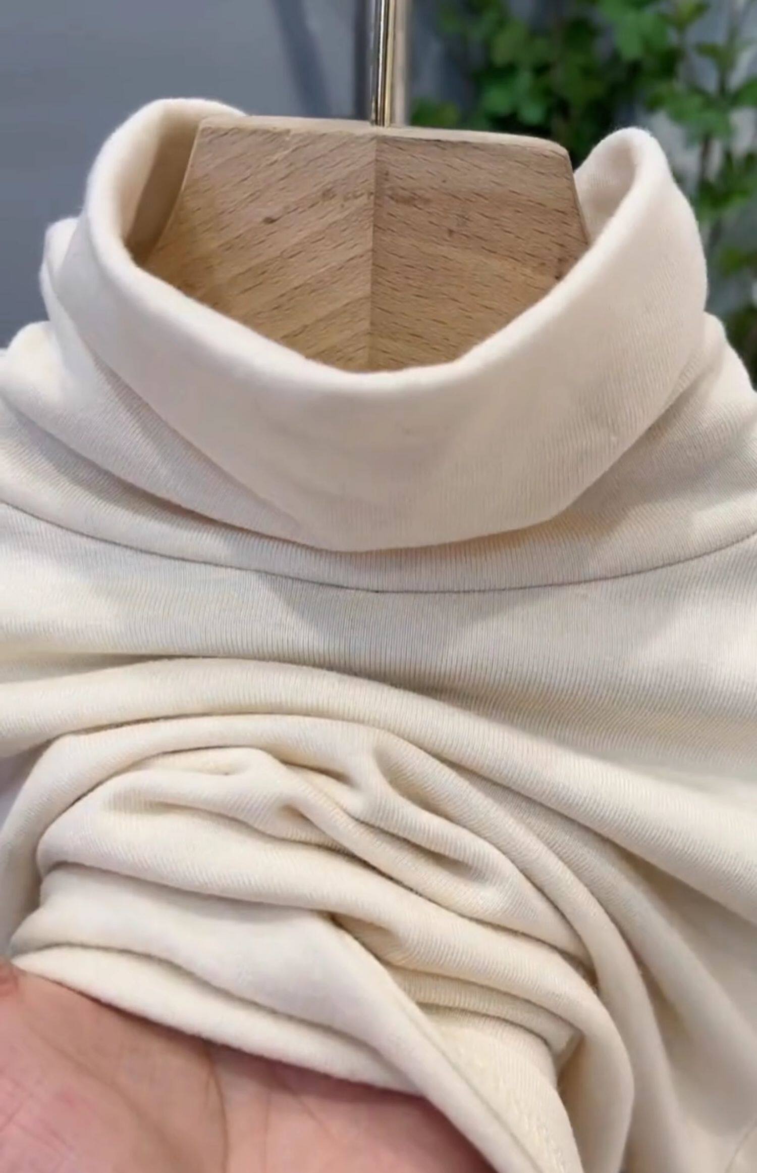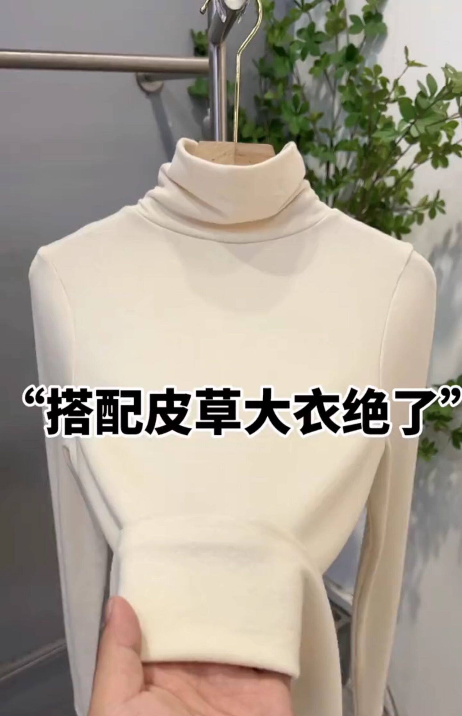 Autumn and winter new style pile collar foreign style white bottoming shirt women's fashion versatile brushed thickened high collar t-shirt top trendy