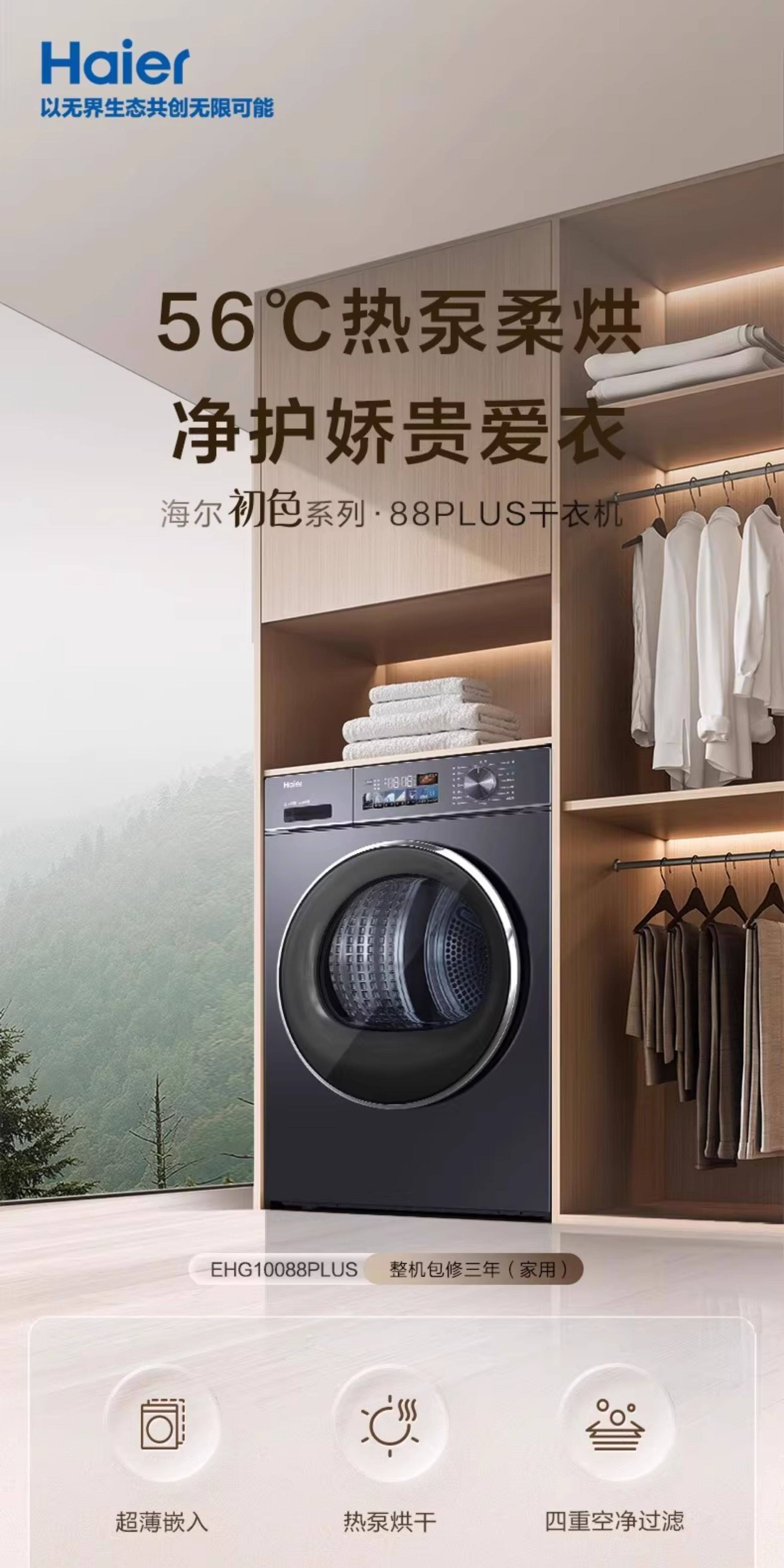 [Yunxi Classic Edition] Haier Heat Pump Household Clothes Dryer 10kg Fully Automatic Drum Dryer 88Plus