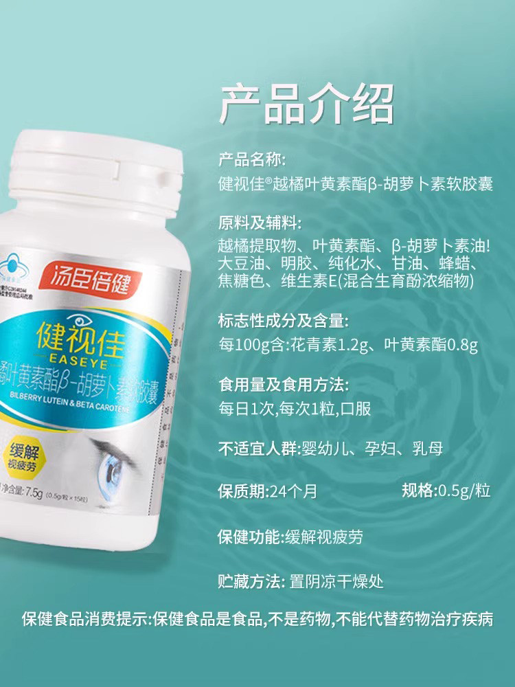 Tomson By-Health Vision Care Bilberry Lutein Genuine Product for Children, Teenagers, and Elderly to Relieve Visual Fatigue