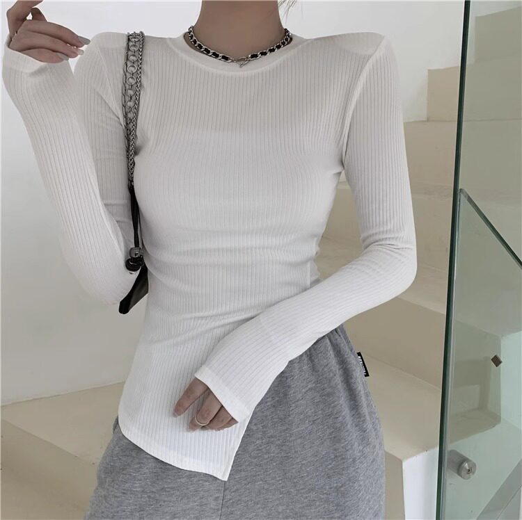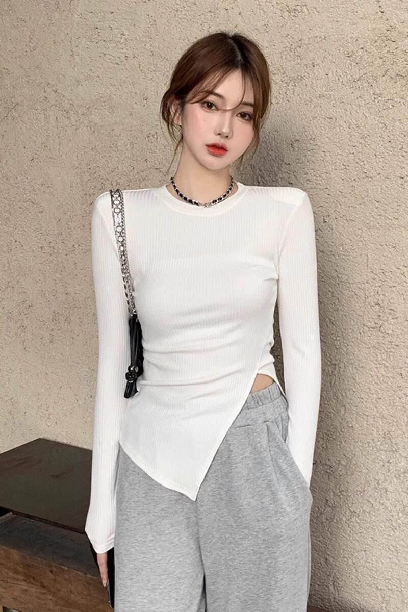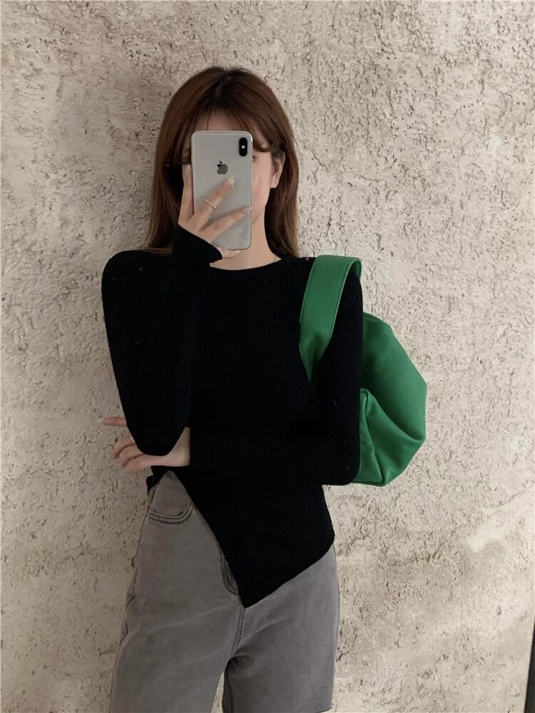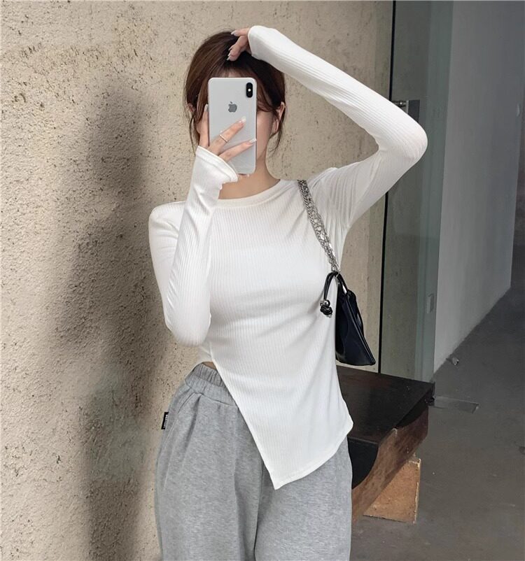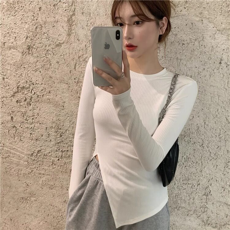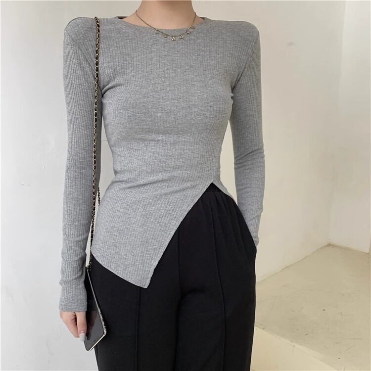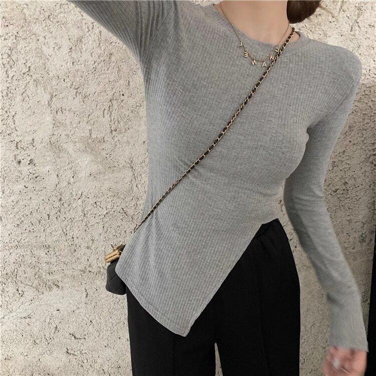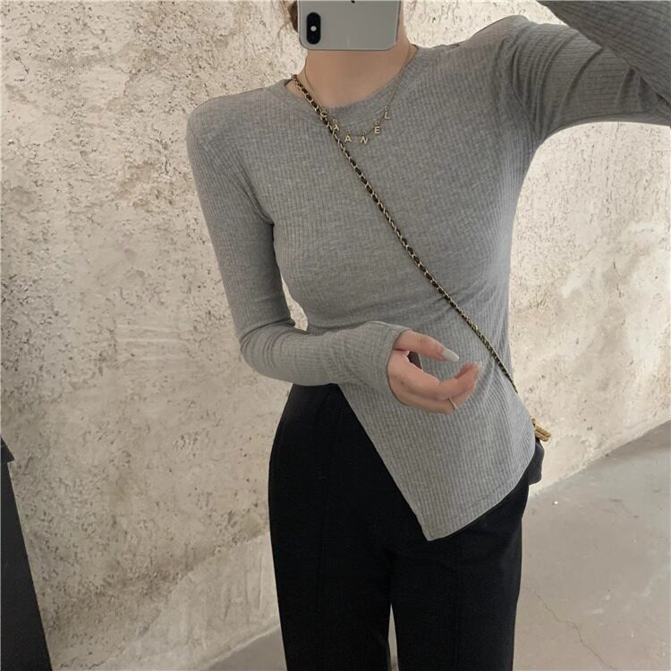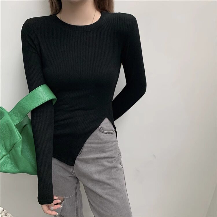 Designed with a Slit at the Hem, Layered with a Long-Sleeved T-Shirt for Women in Autumn and Winter, Super Stylish, Unique, Slim-Fitting and Slimming Base Shirt