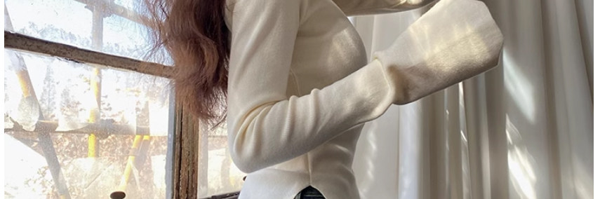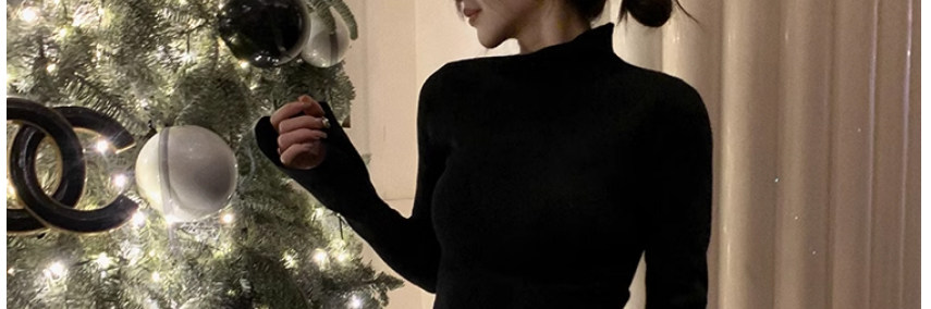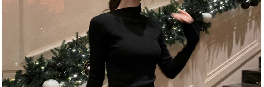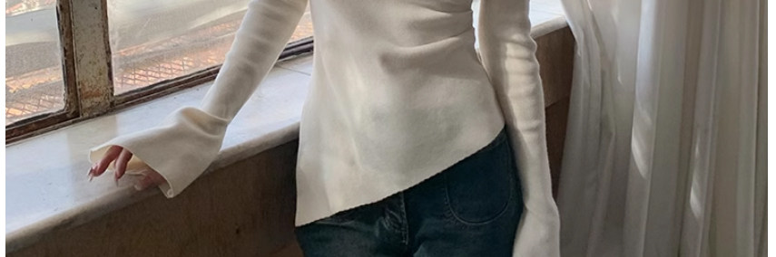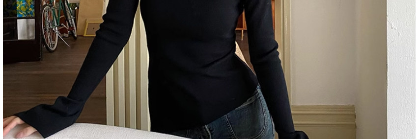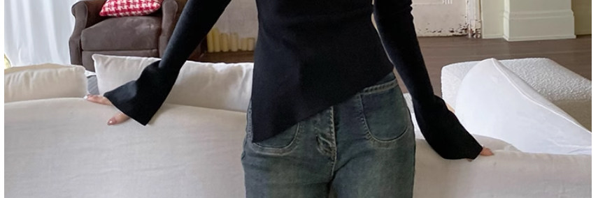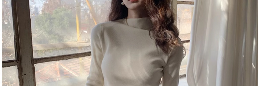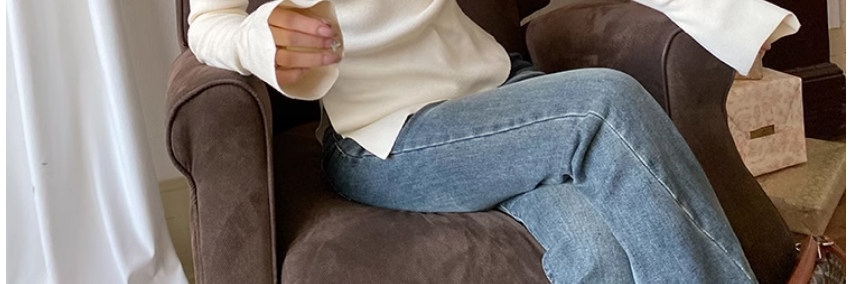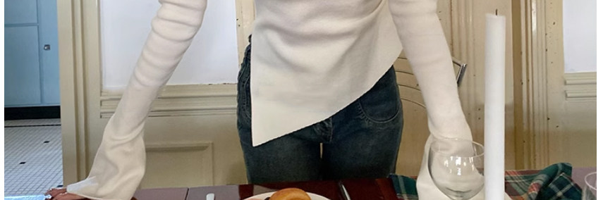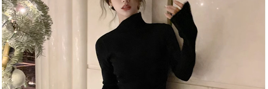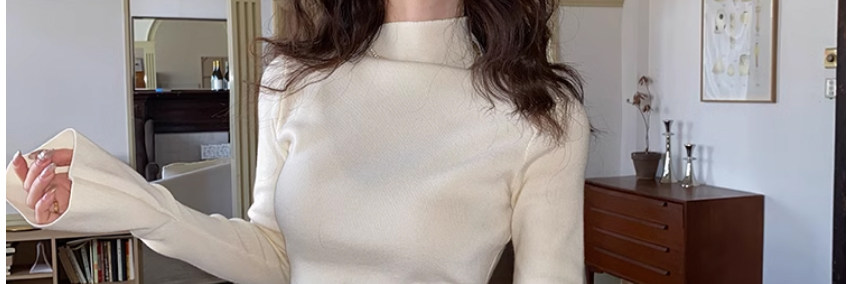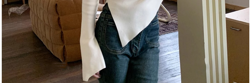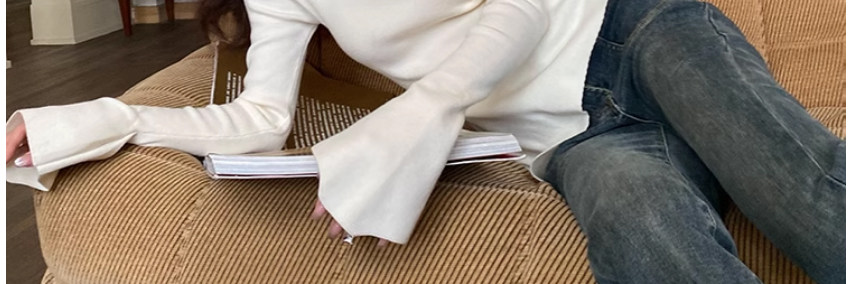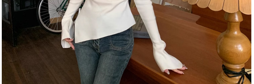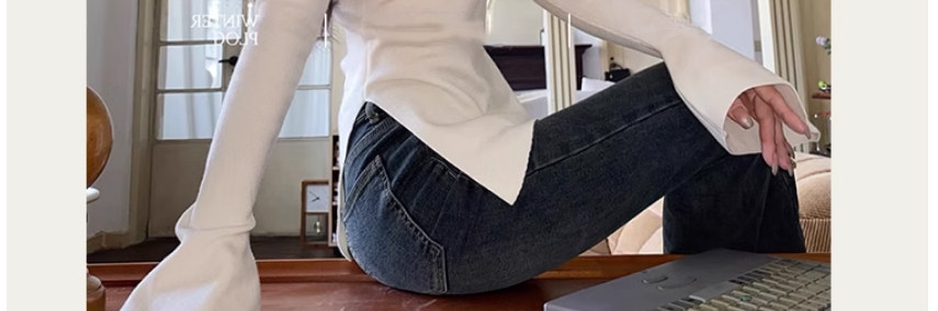 Half Turtleneck with Bell Sleeves, Knitted Sweater, Women's Autumn and Winter Design, Irregular Slit Hem Top
