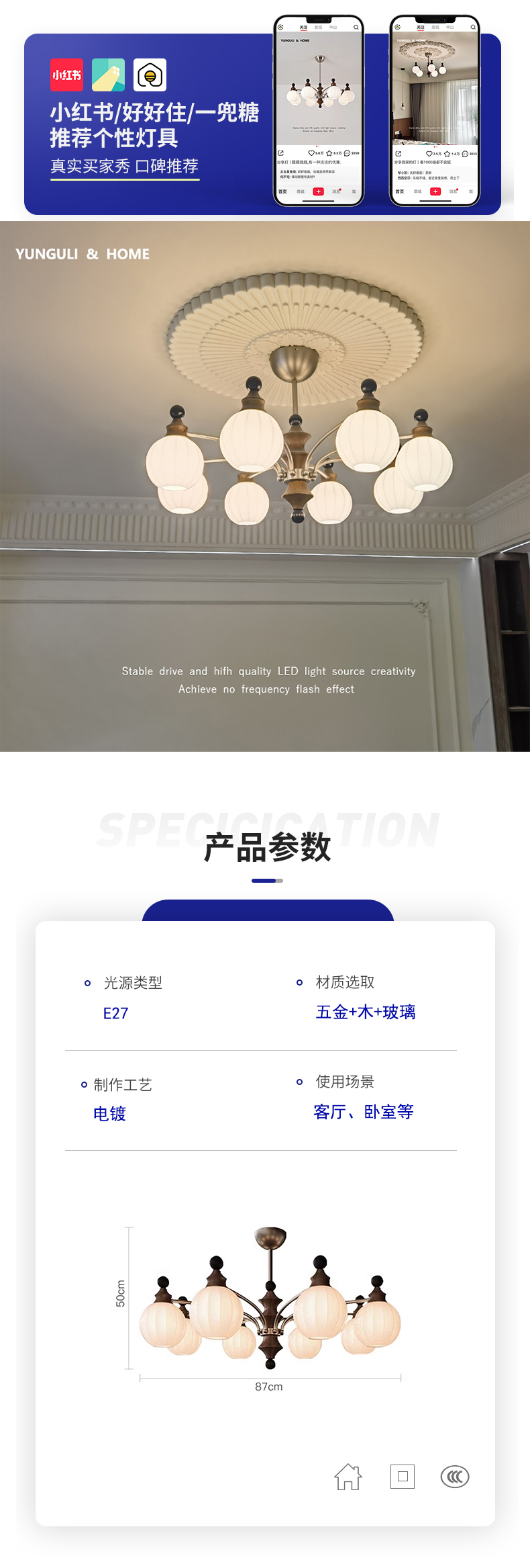 Vintage French-Style Living Room Chandelier 2025 New Model Main Hall Light Retro High-End Walnut Wood Bedroom Room Light