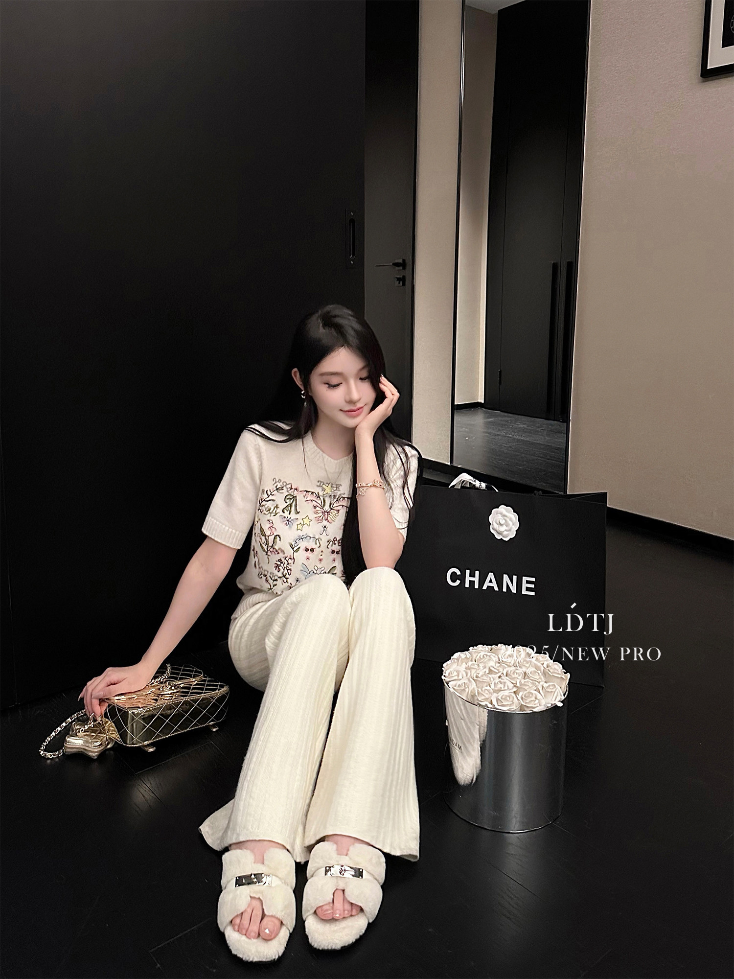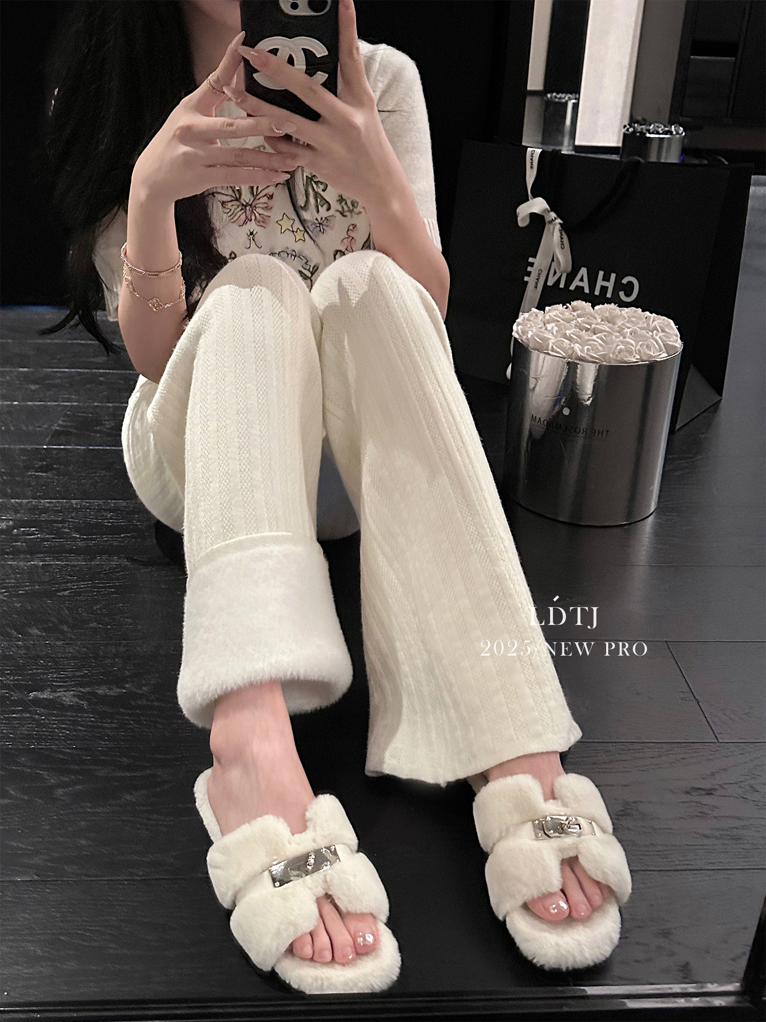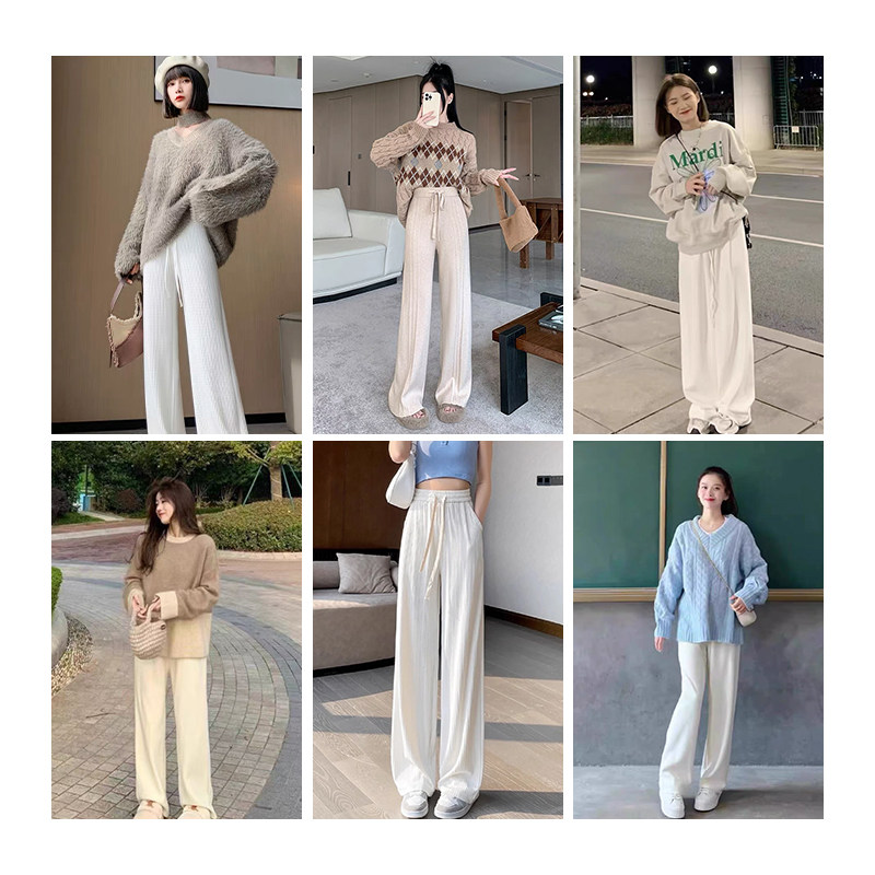 Ldtj High-End Custom-Made Soft and Dense Autumn Casual Versatile Drapey High-Waisted Straight-Leg Slimming Knit Wide-Leg Pants for Women
