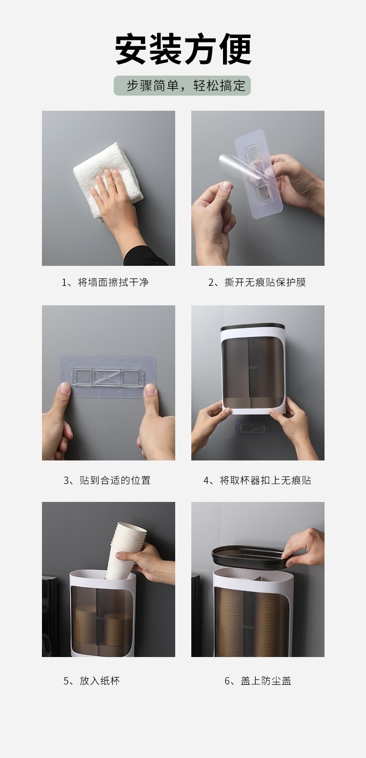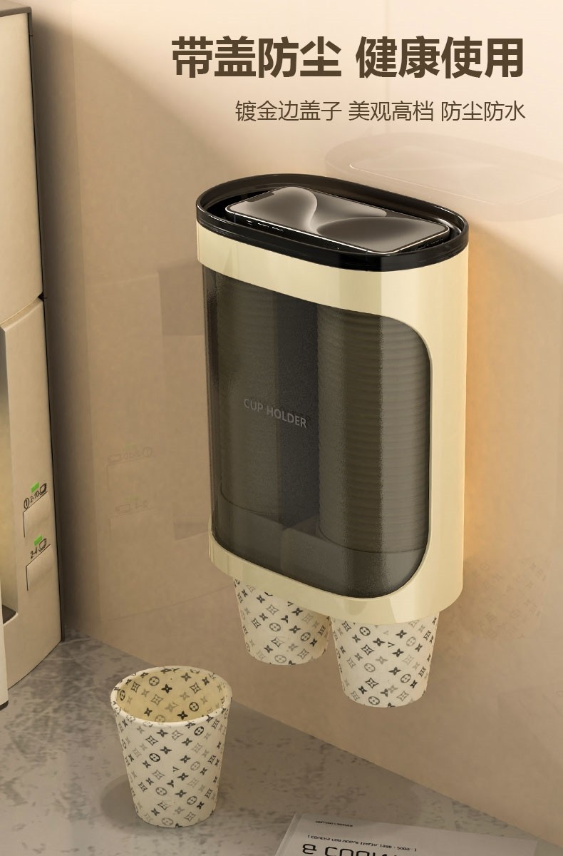 Japanese Imported Mujie Paper Cup Dispenser, Disposable Cup Storage Tube, Punch-Free Cup Holder, Wall-Mounted Storage Rack