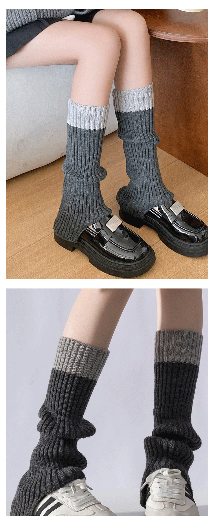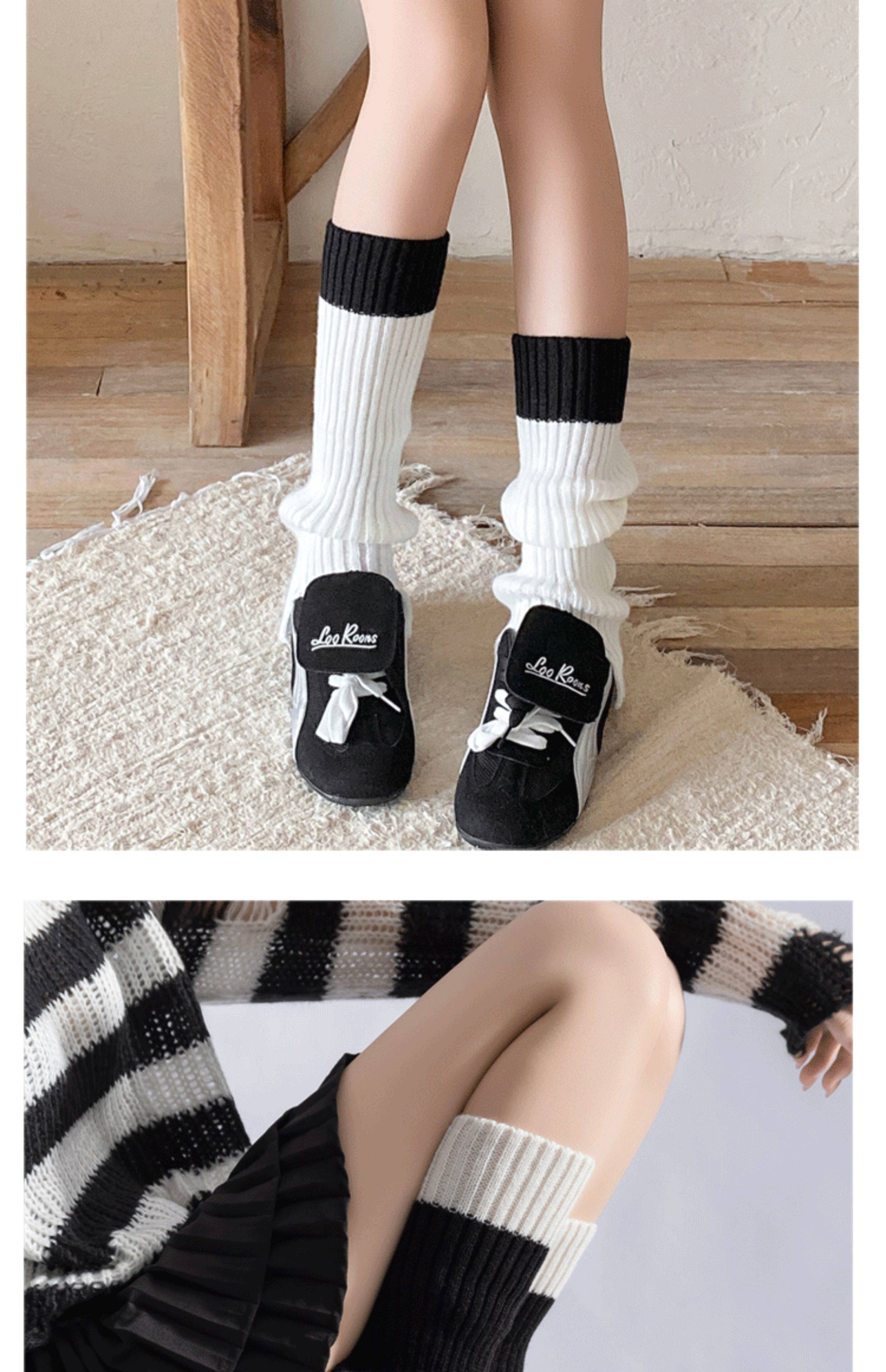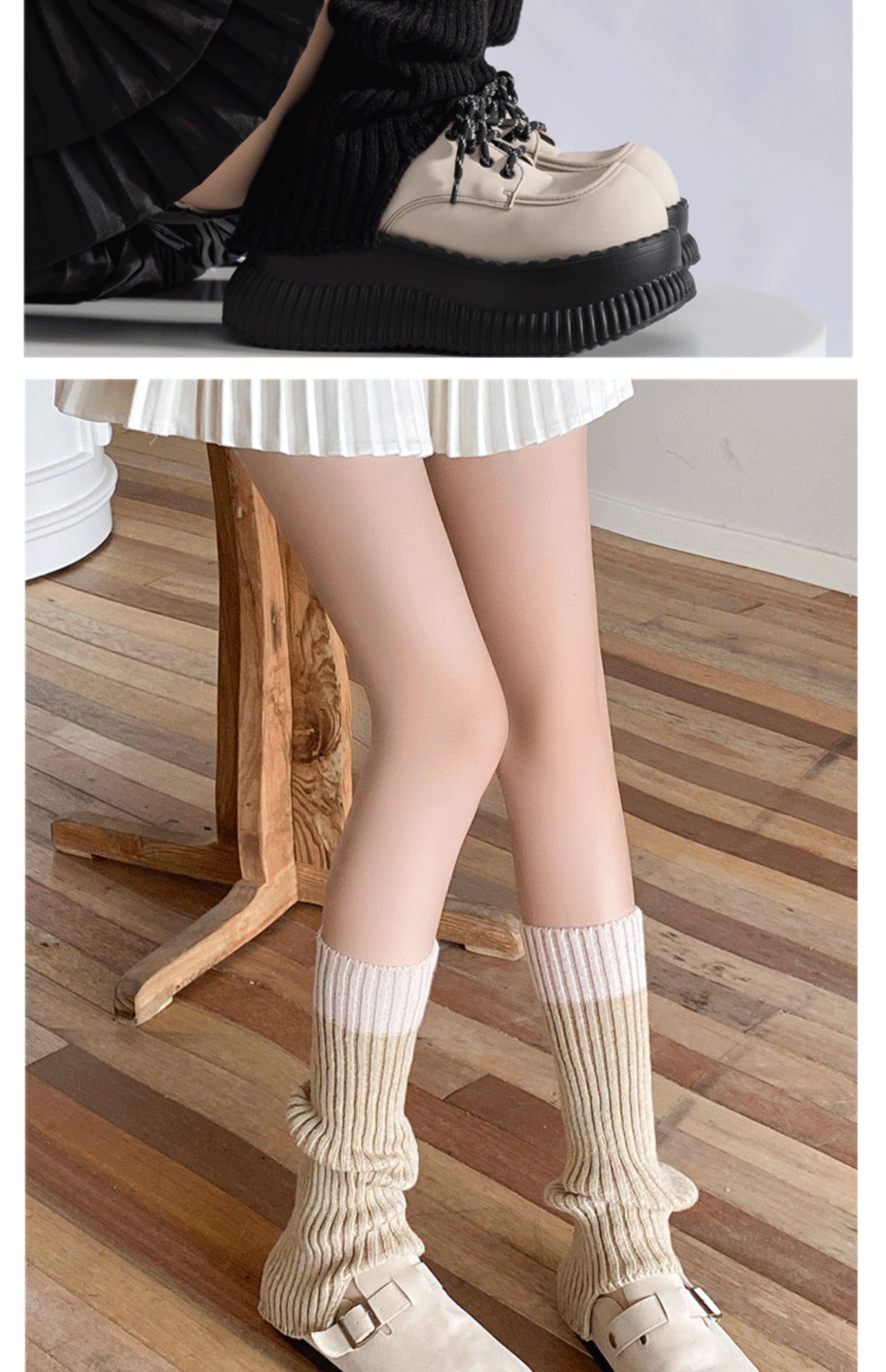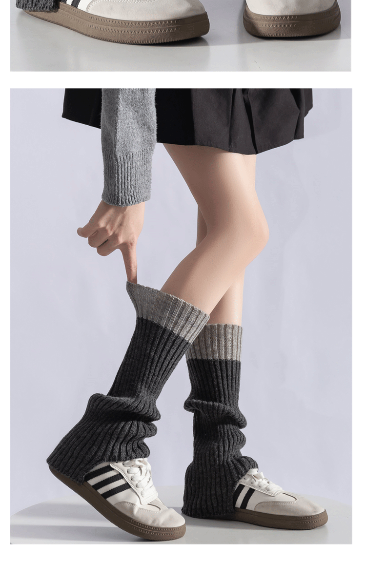 Color-Blocked Stacked Sock Covers 2025 New Product Calf Covers Fashionable Retro Girls' Knitted Boot Covers Color-Blocking Jk Gray Leg Covers