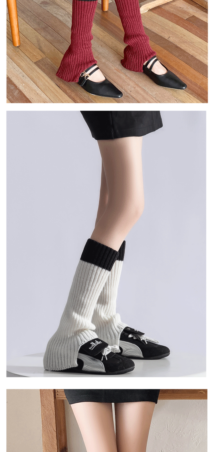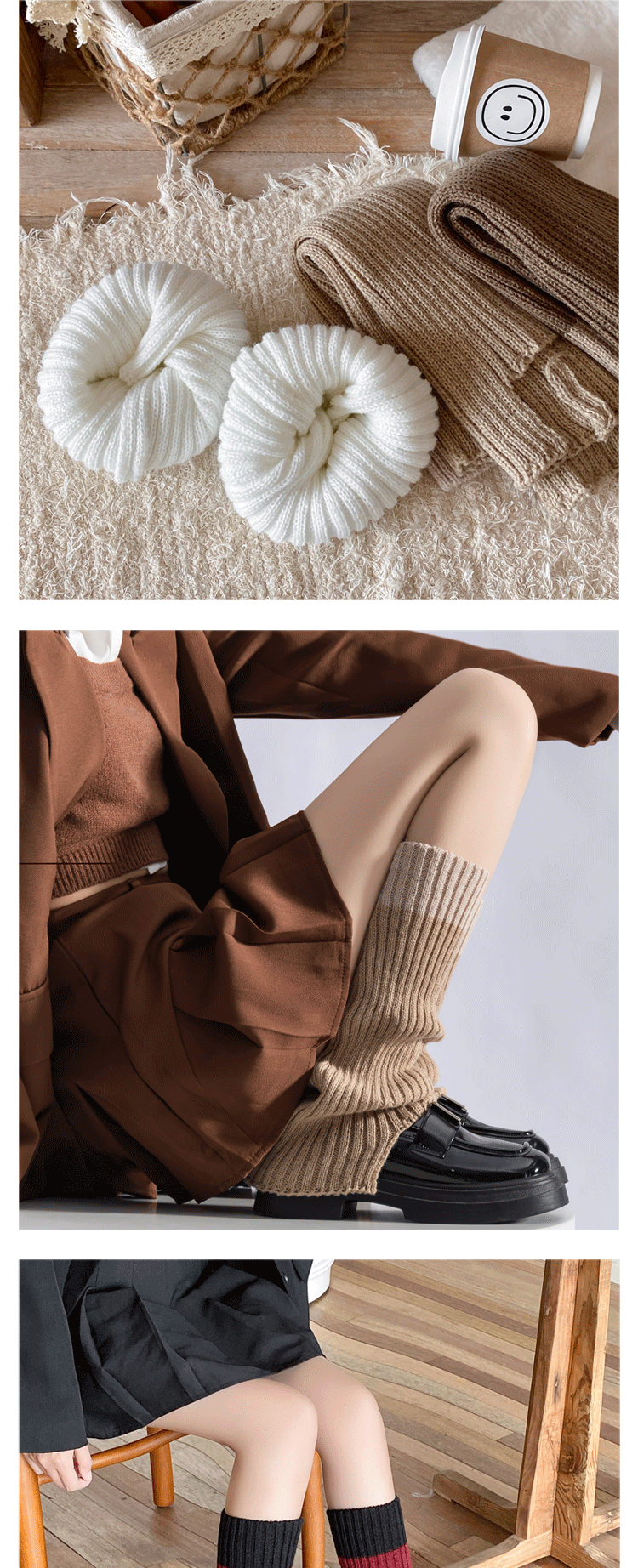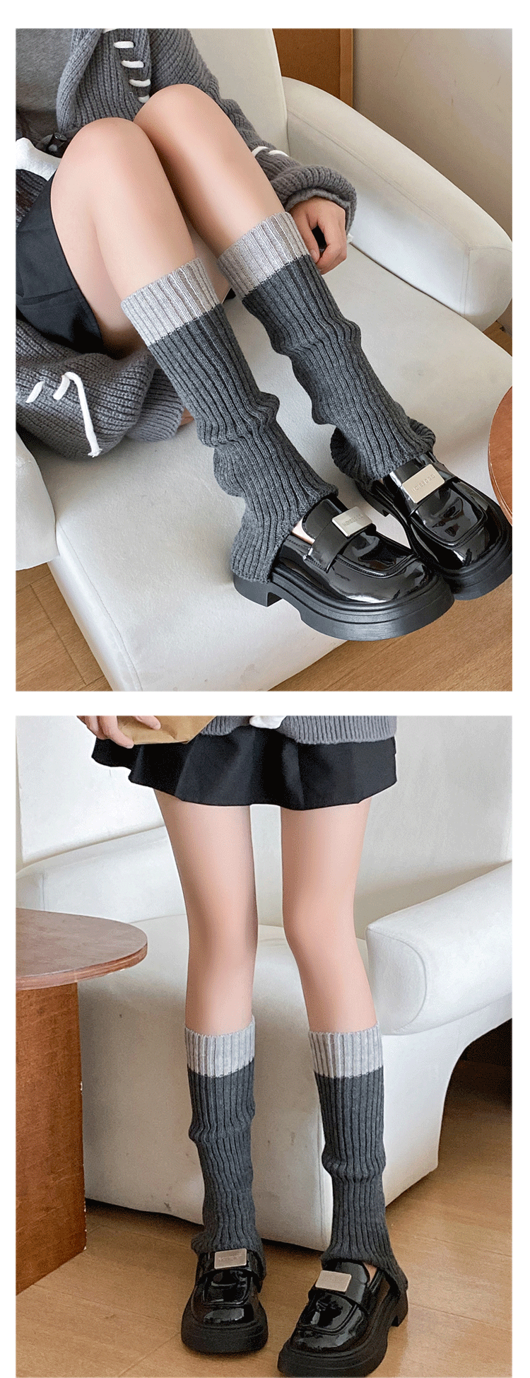 Color-Blocked Stacked Sock Covers 2025 New Product Calf Covers Fashionable Retro Girls' Knitted Boot Covers Color-Blocking Jk Gray Leg Covers